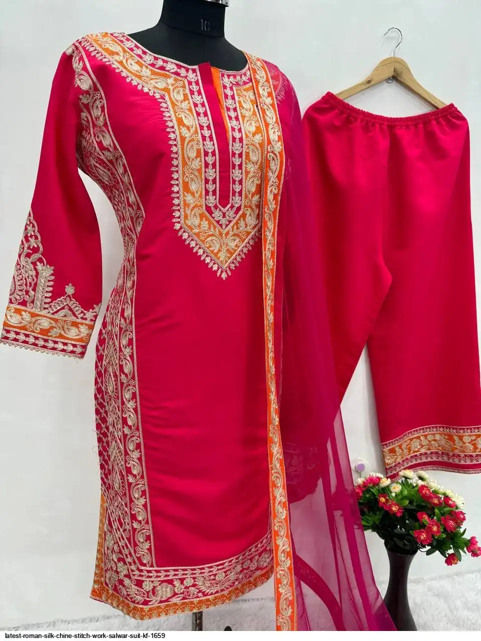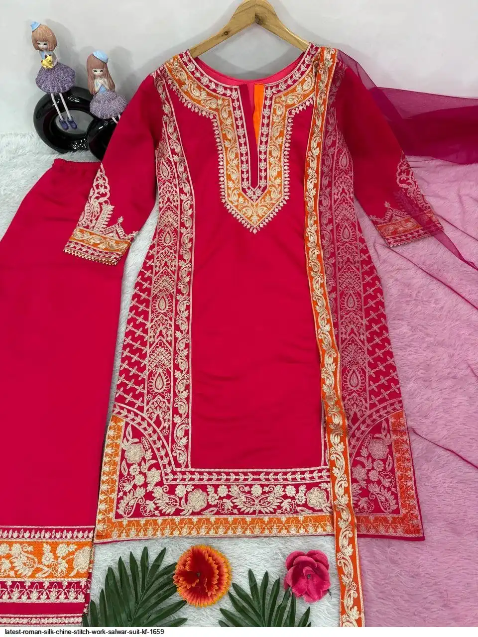 #DUPATTA WORK : HEAVY CHINE STITCH WORK LESS BODER