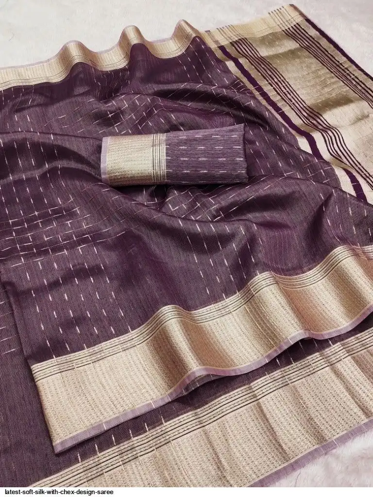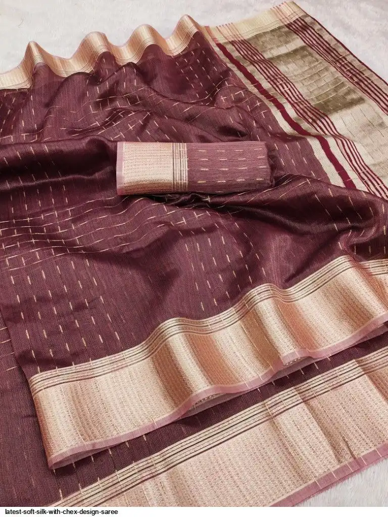 Saree :- Soft silk saree with zari weaving chex design all over the saree & zari weawing pallu with zari weaving border