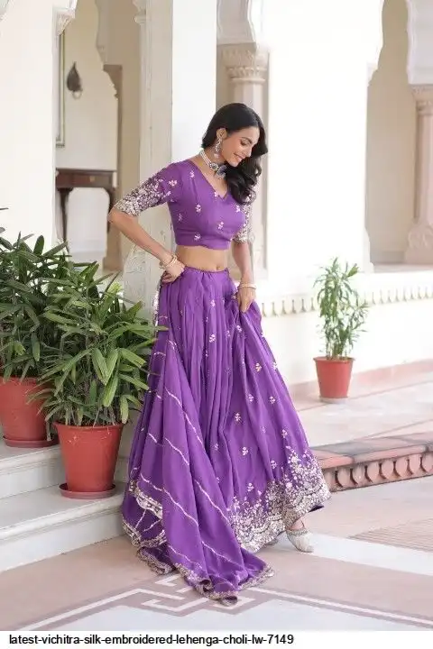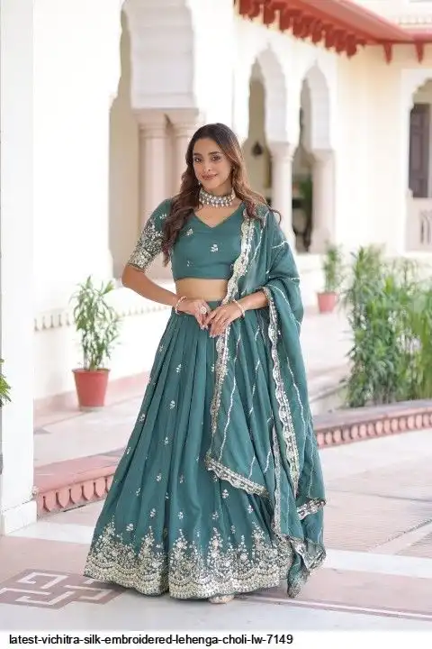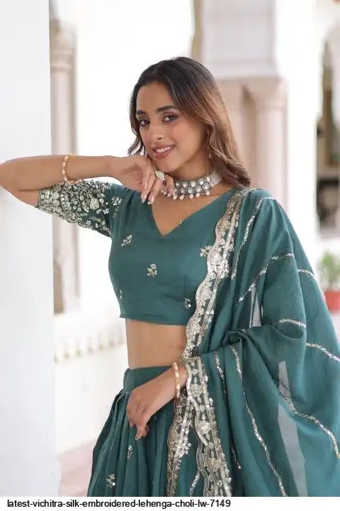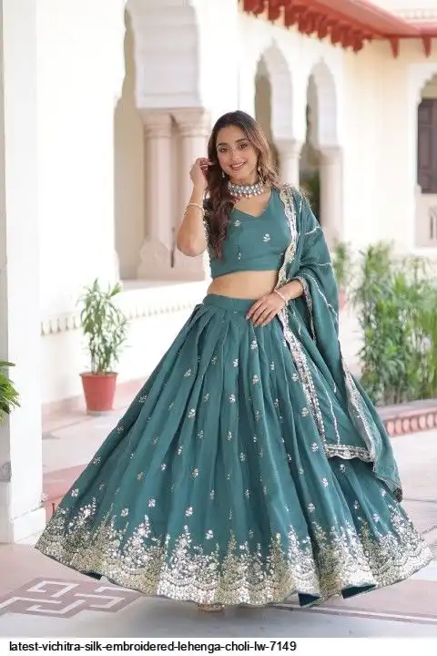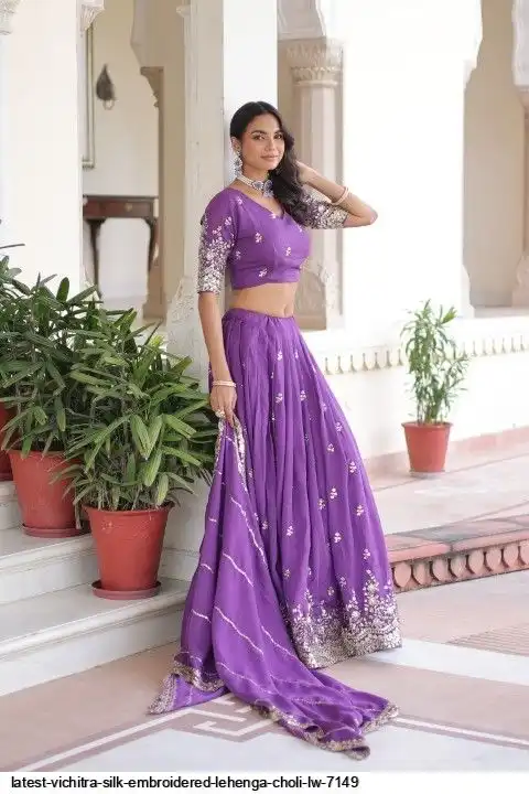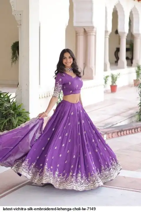 Desirable Women's Lehenga Made With Vichitra Silk With Rich Sequins Embroidery work Blouse and Designer Embroidered work Dupatta