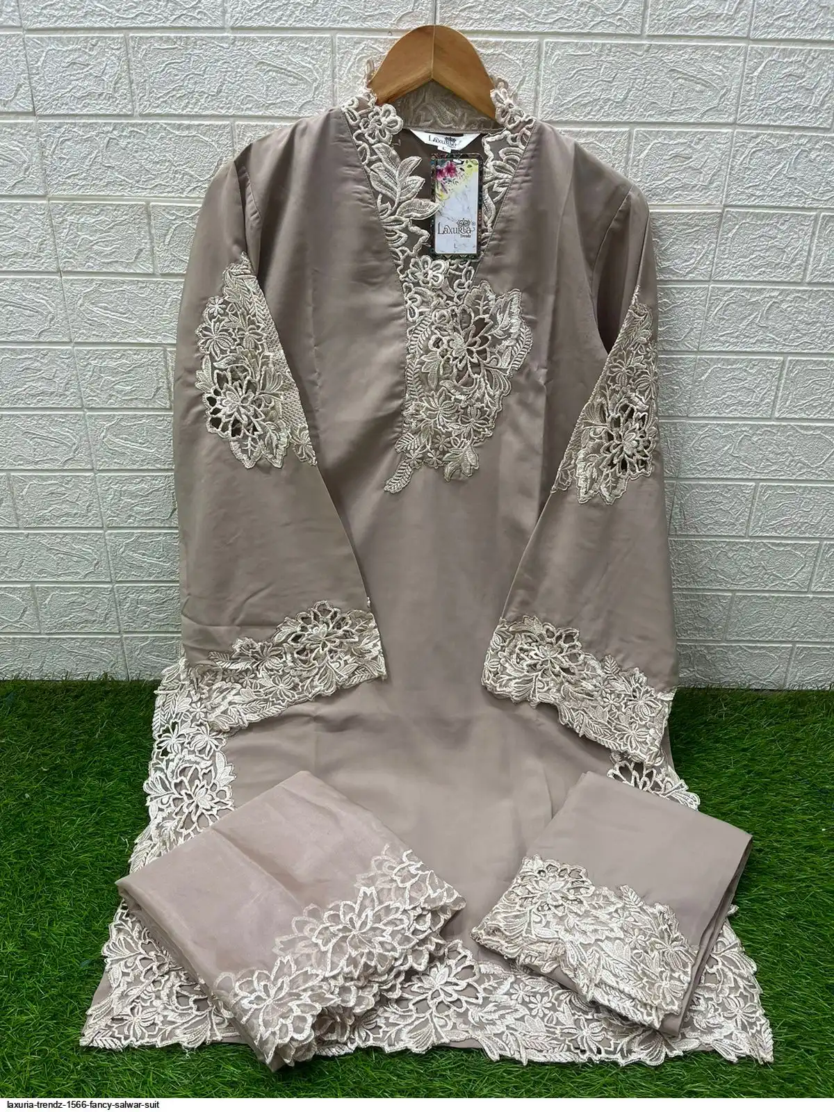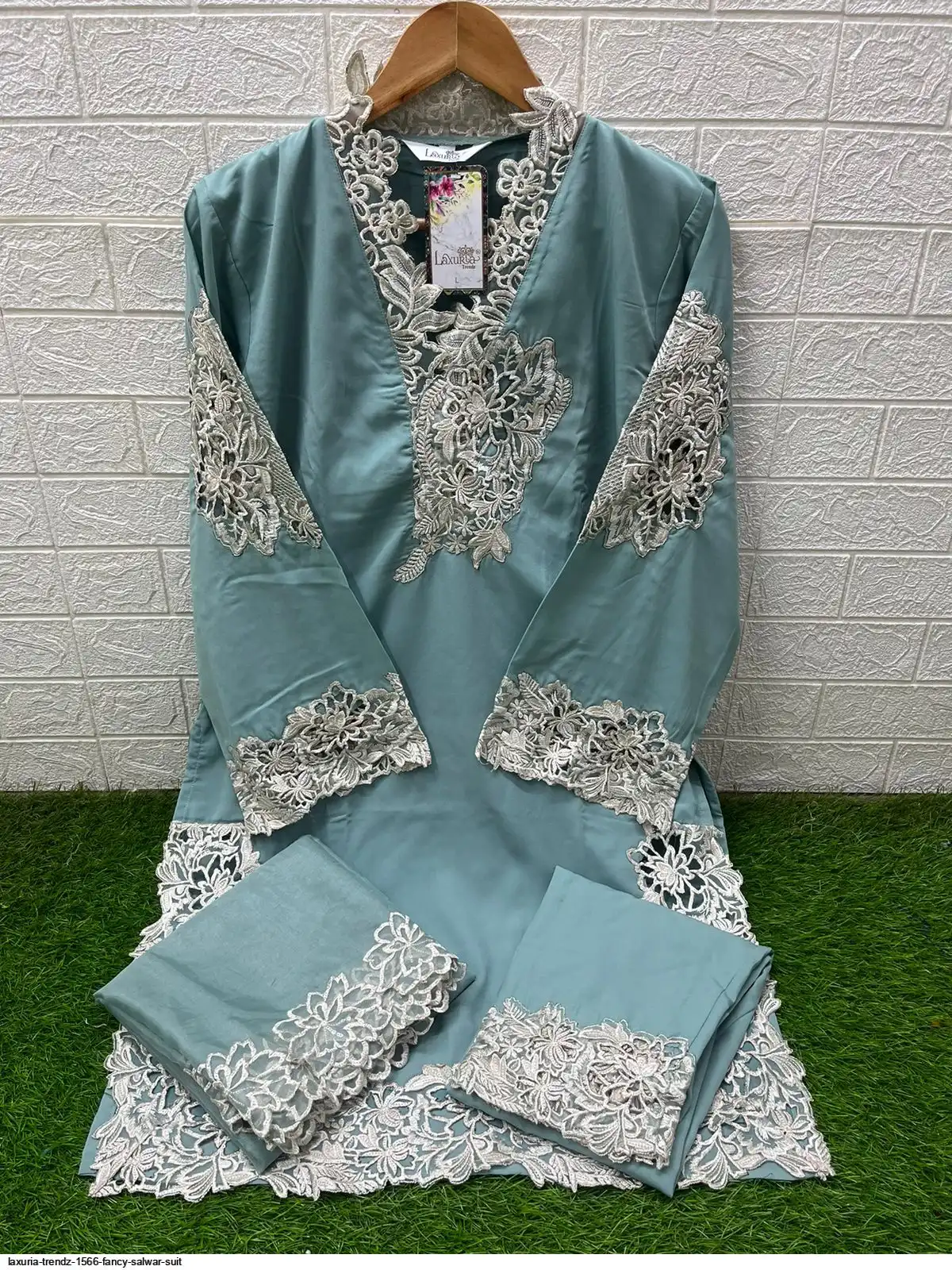 Designer stylish Tunic Classic Embrdry & CutWork In Kurti Paird with Glamours * Embrdry sleevs ...& Pant*With Organza Embrdry Dupatta