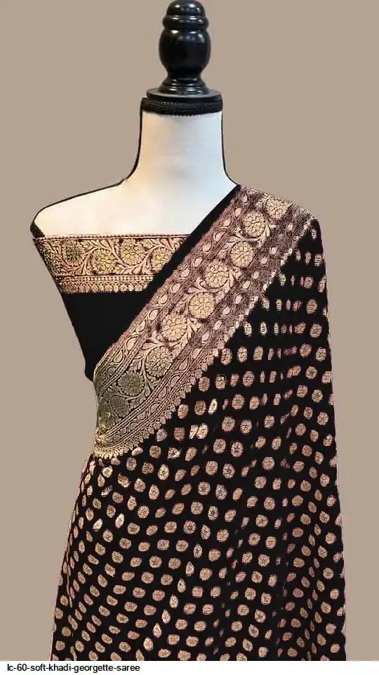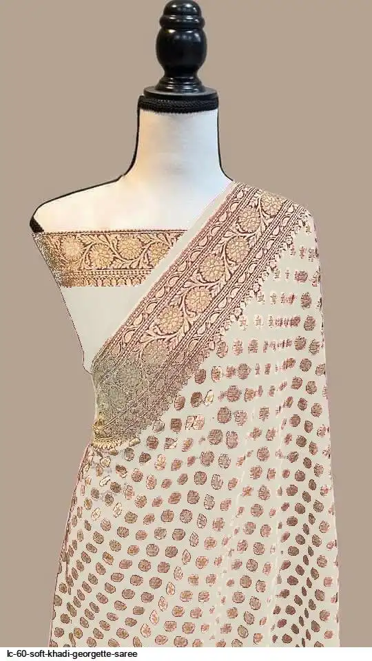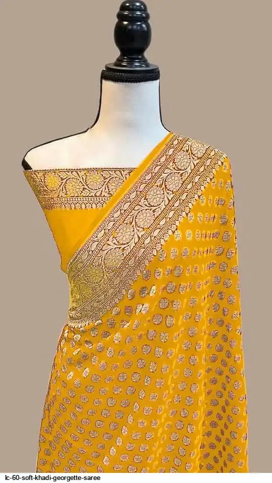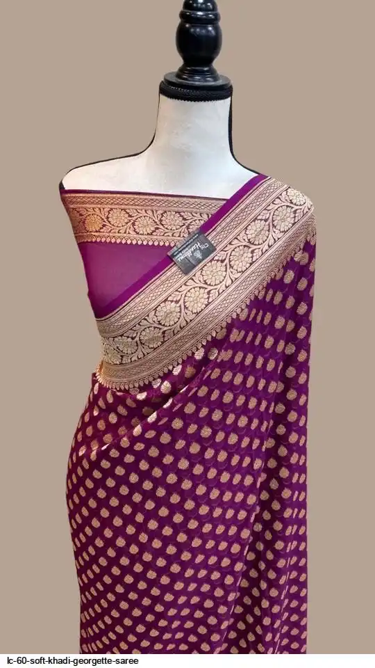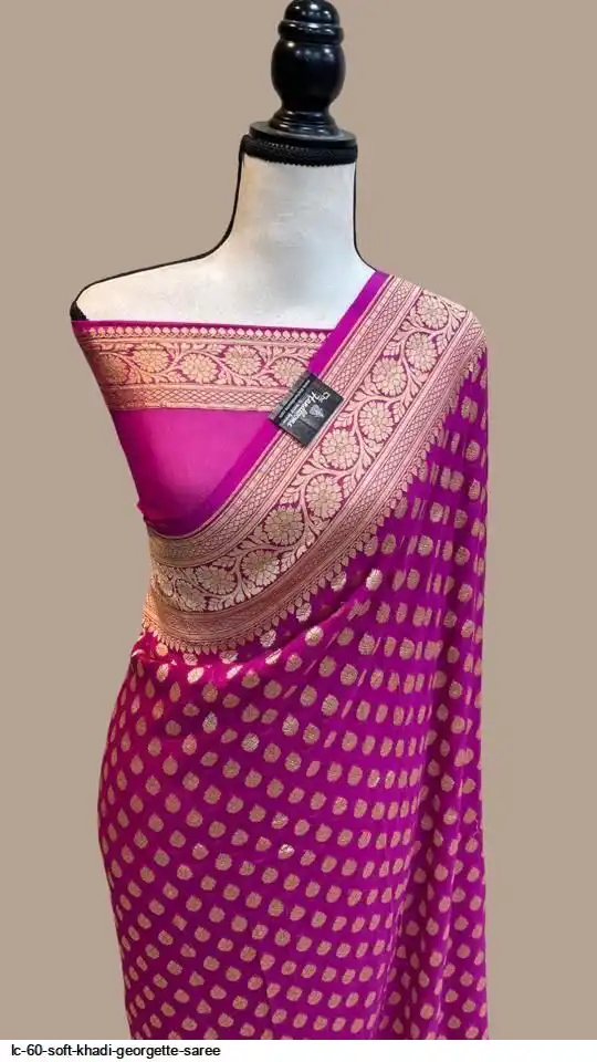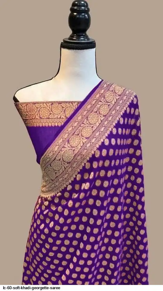 Pure Soft Khadi Georgette Silk Saree With Rich Zari Wooven Pallu Pairs With Fancy Tassels Having Heavy Wooven Border With All Over Zari Weaving in Full Saree With Running Blouse