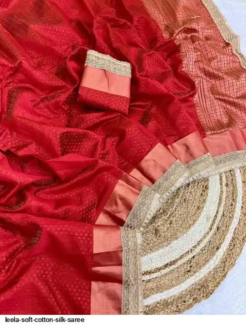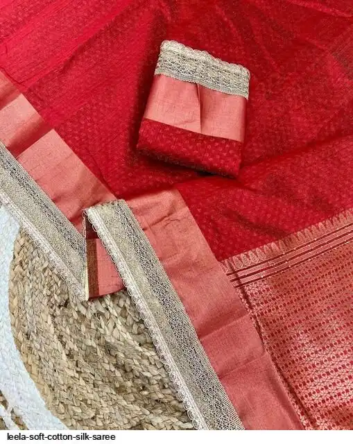 Fabric - Soft Cotton Weaving Silk Fabric With Handloom Weaving Bordar & Rich Pallu With Designer Fancy Coding Sequence Bordar And Runing Blouse