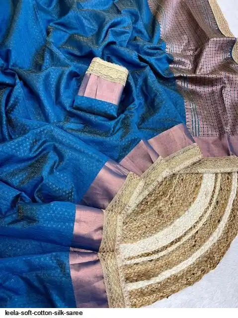 Fabric - Soft Cotton Weaving Silk Fabric With Handloom Weaving Bordar & Rich Pallu With Designer Fancy Coding Sequence Bordar And Runing Blouse