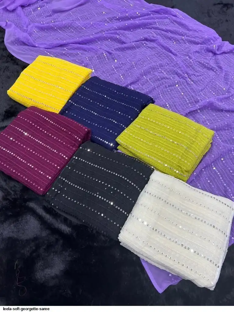 BLOUSE : HEAVY GEORGETTE FABRIC ON BEAUTIFUL EMBROIDERY THREAD AND SEQUENCE WORK ON BLOUSE