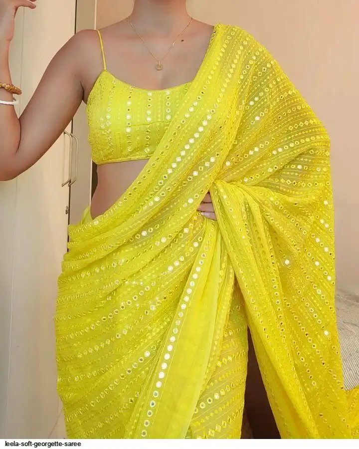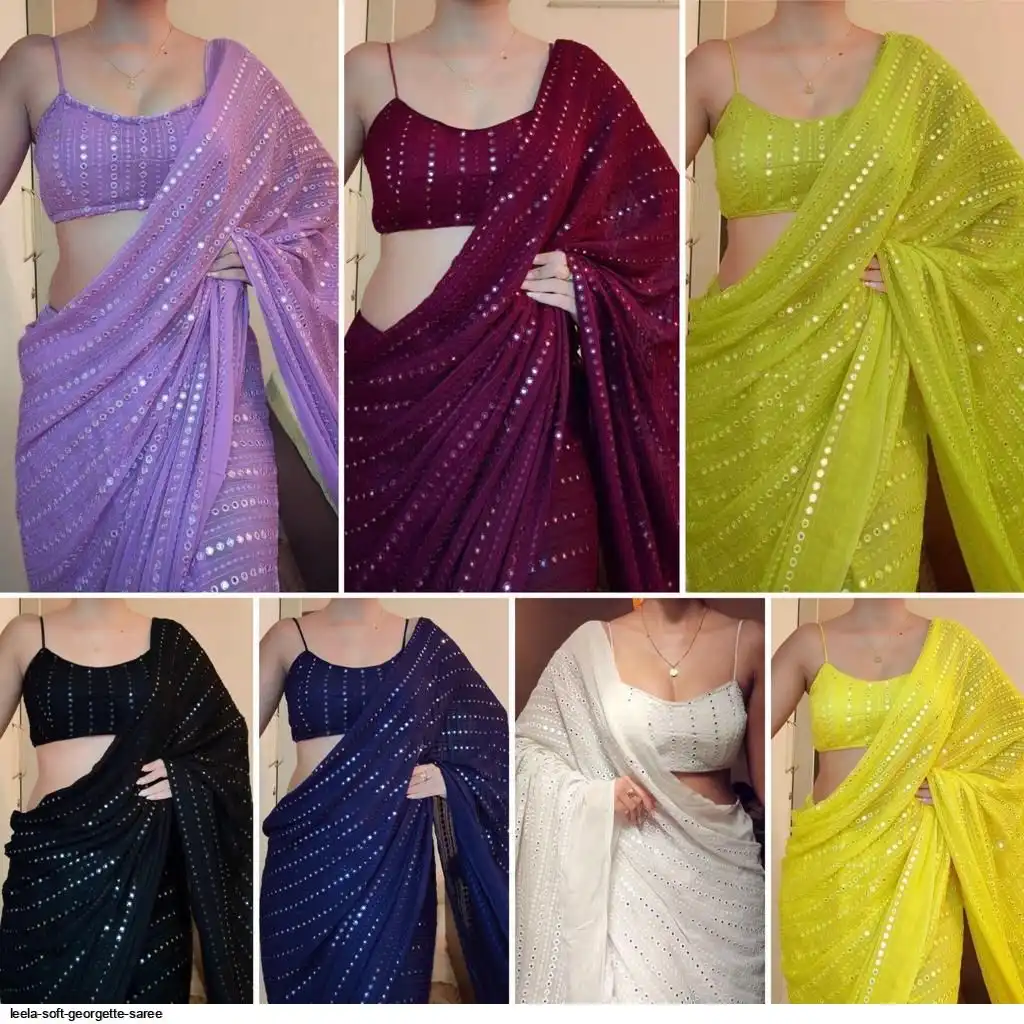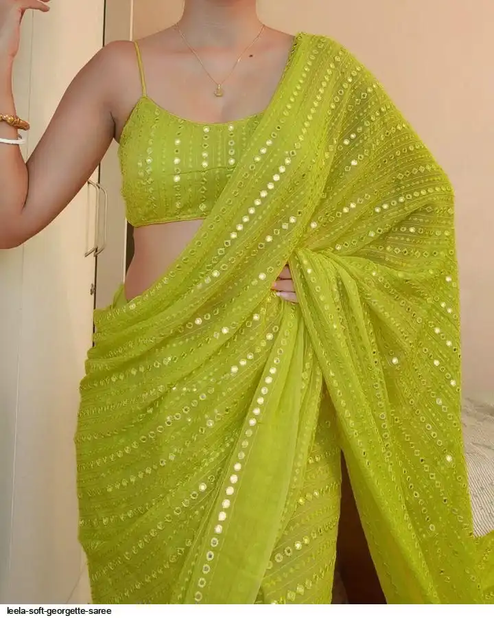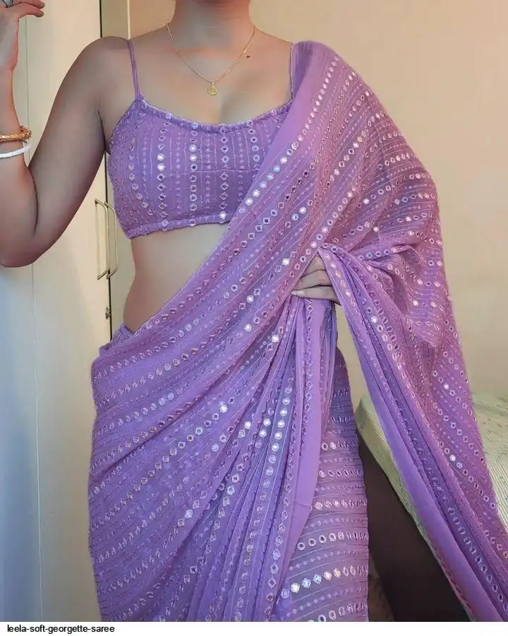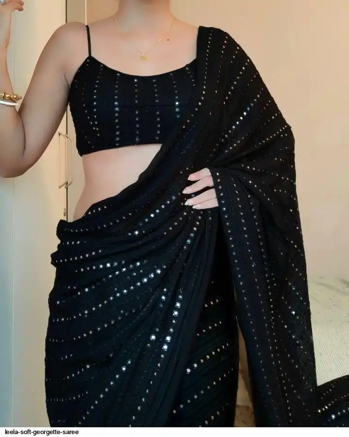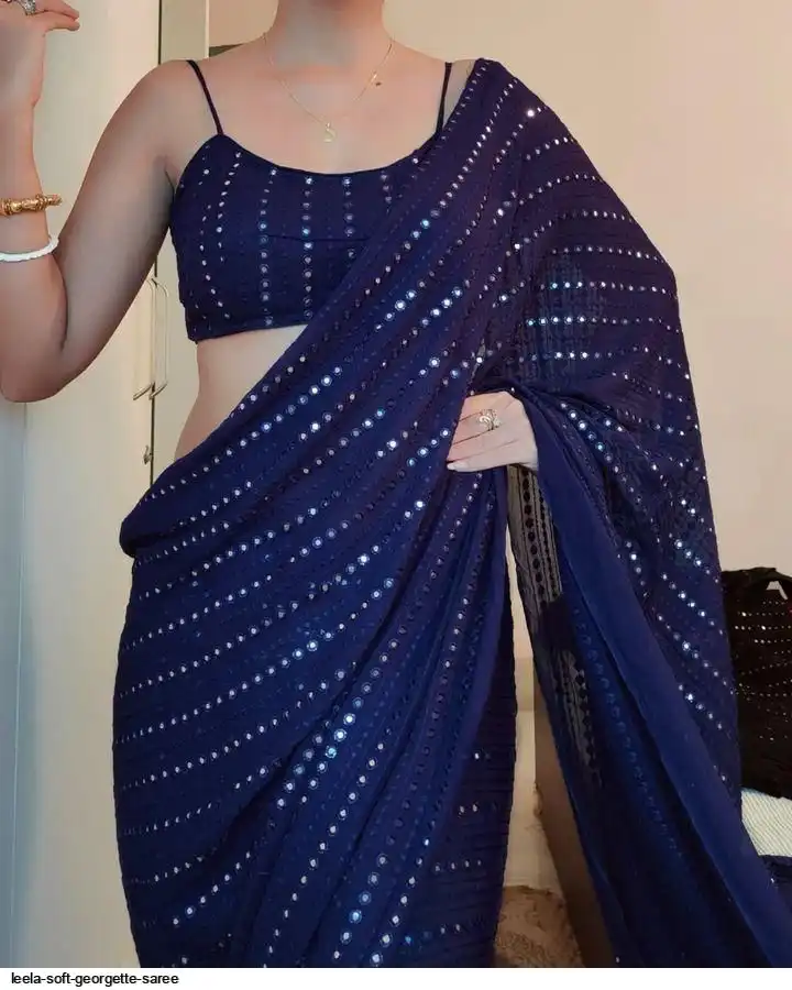 FABRICS : HEAVY GEORGETTE FABRIC ON BEAUTIFUL EMBROIDERY THREAD AND SEQUENCE WORK ON SAREE