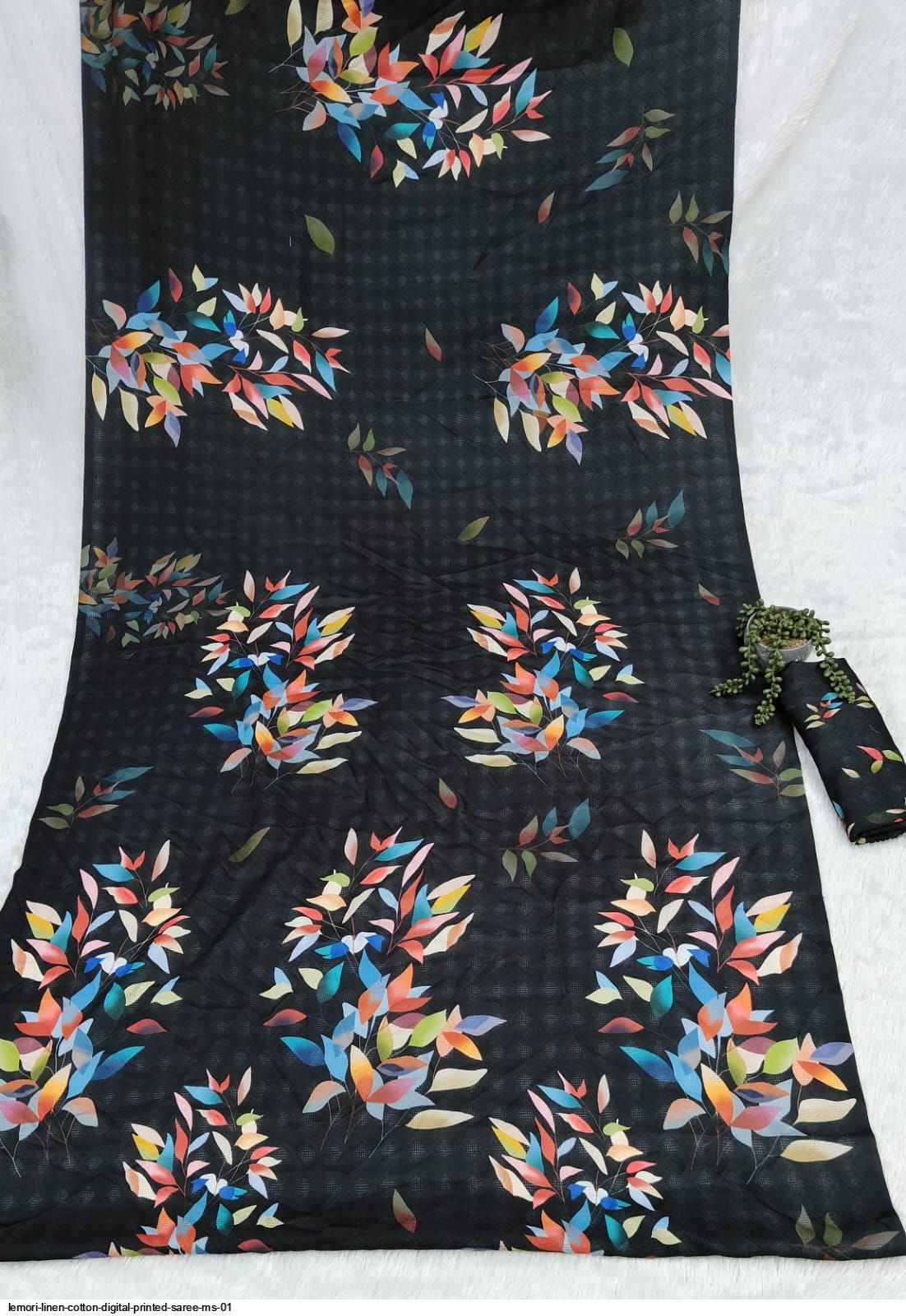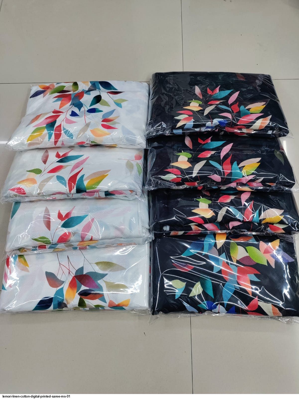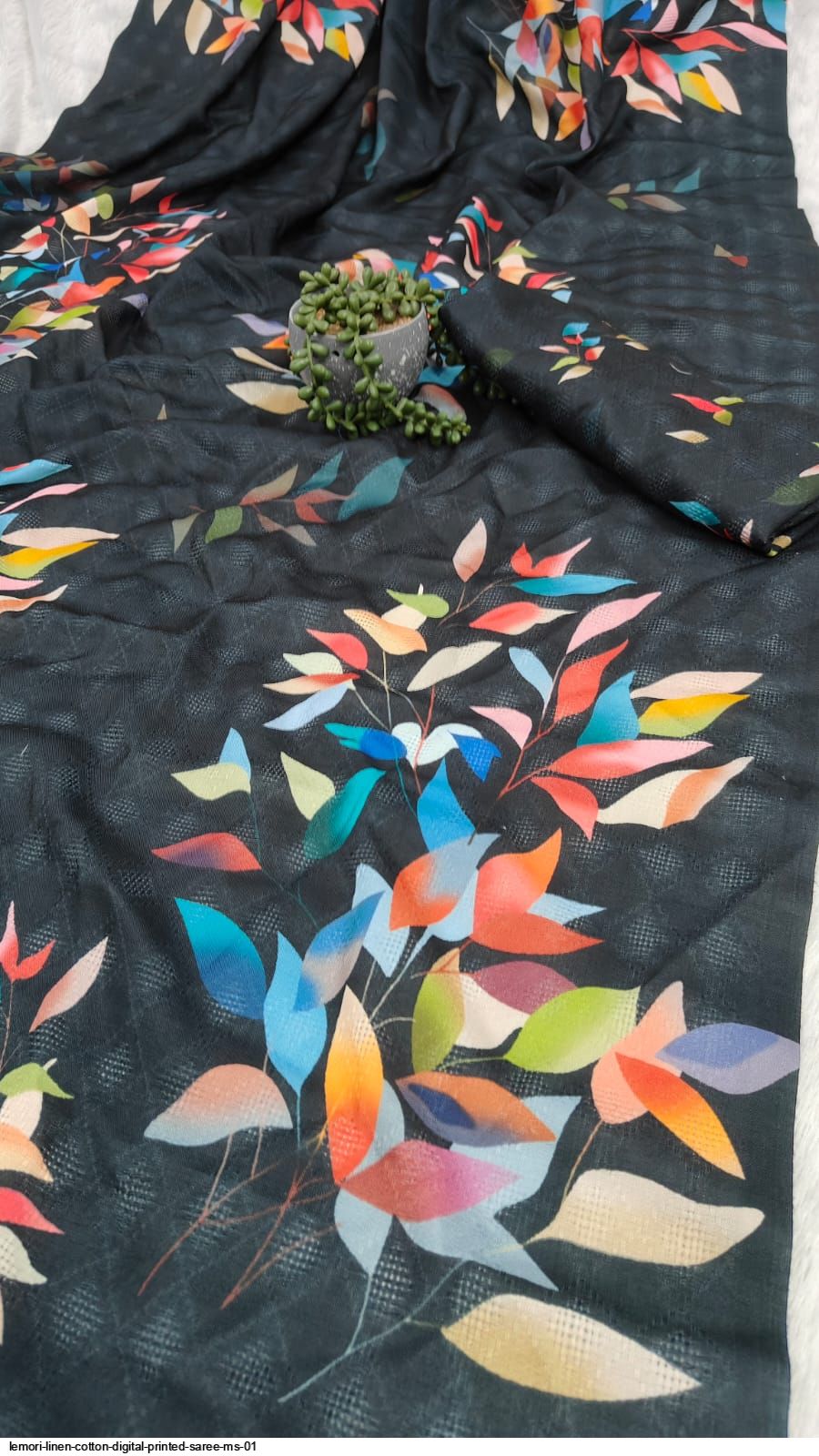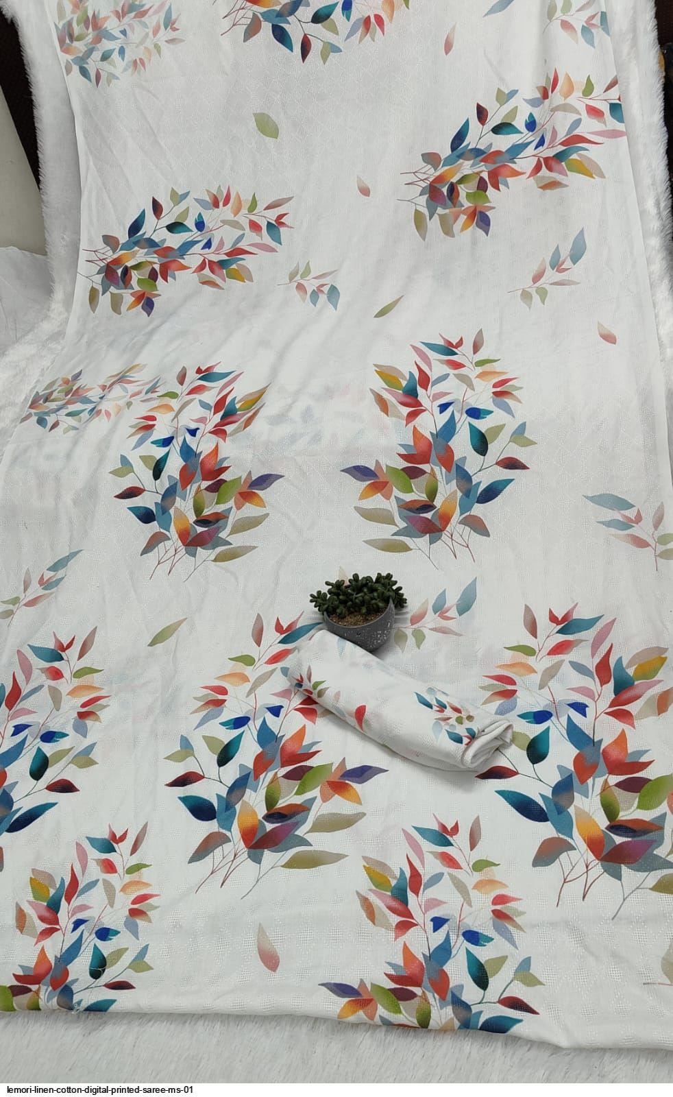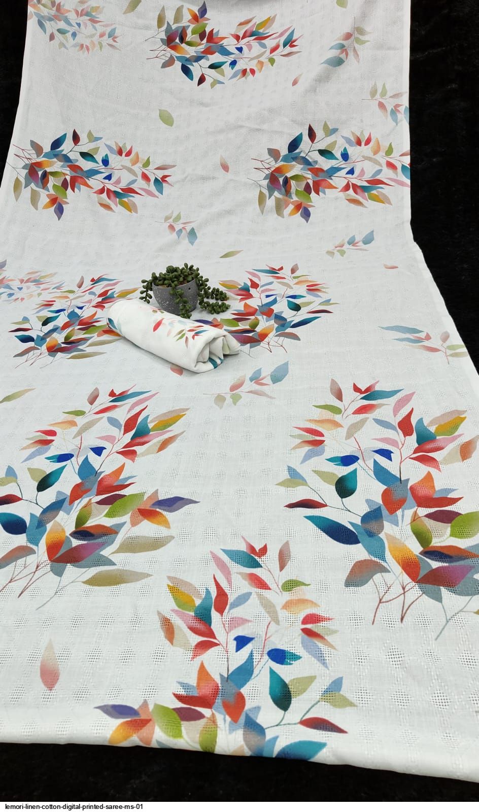 Saree : fenchi linen cotton self petan with digital print 5:50 MTR SAREE