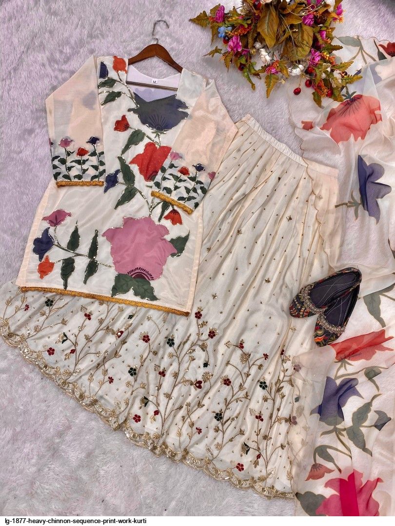 # GHARARA:. CHINON WITH EMBROIDERY WORK