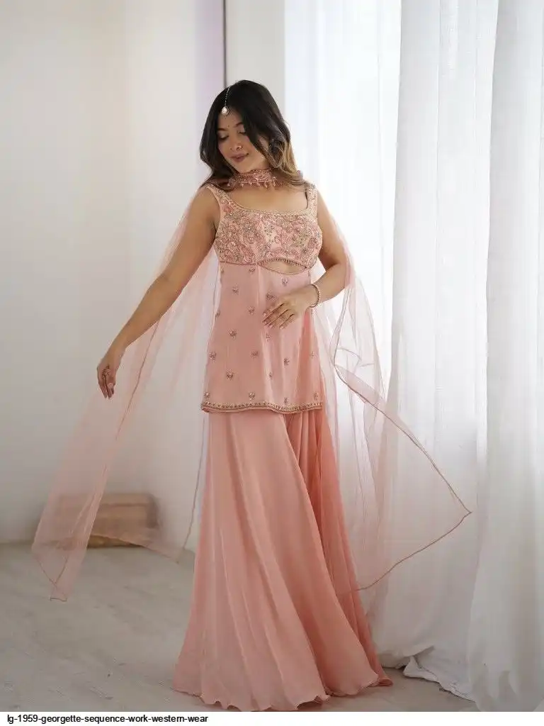 SEQUENCE EMBROIDERY AND SILVER LATKAN LACE WITH BUTTERFLY NET