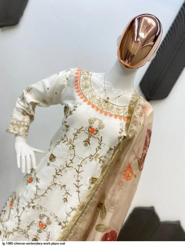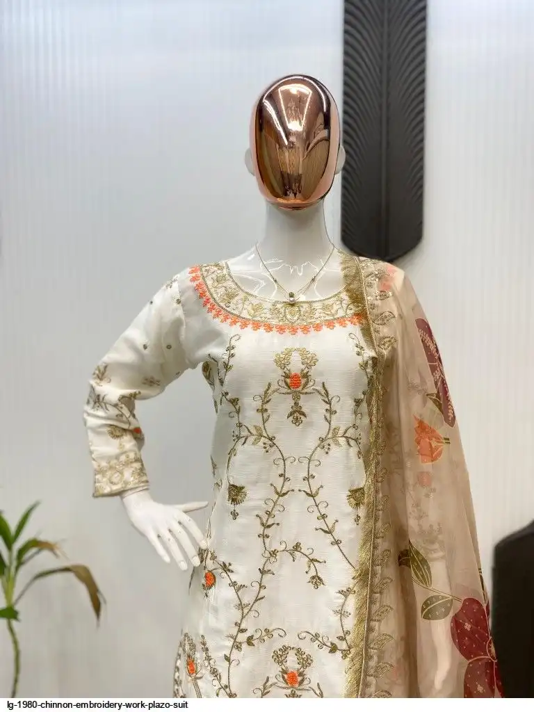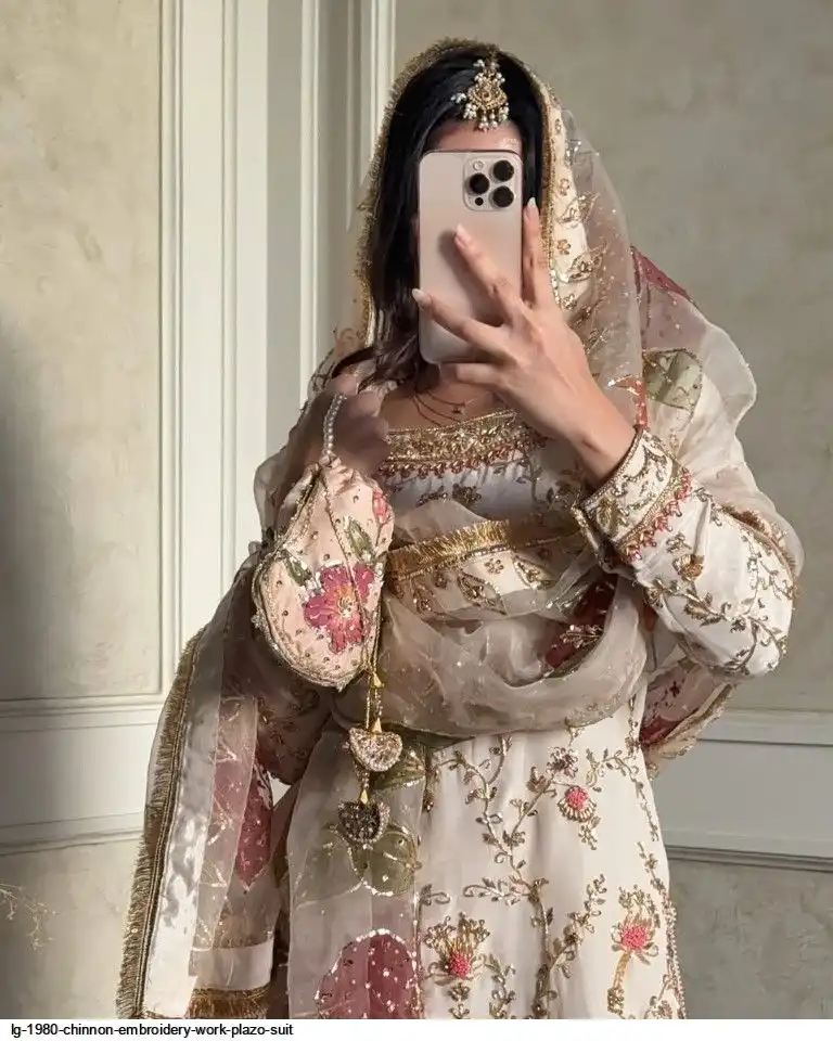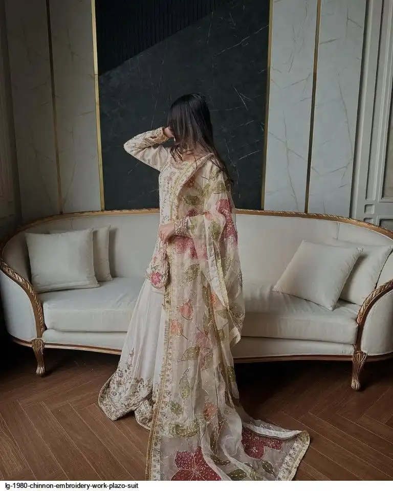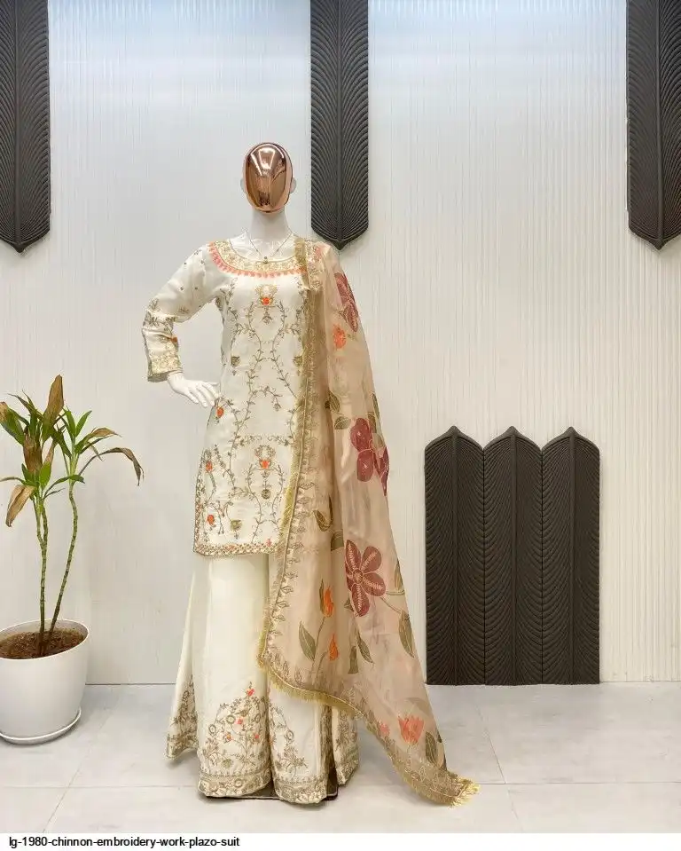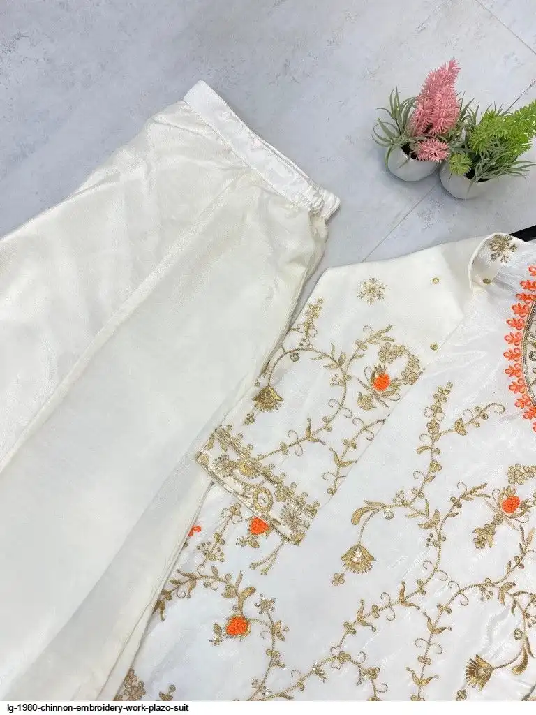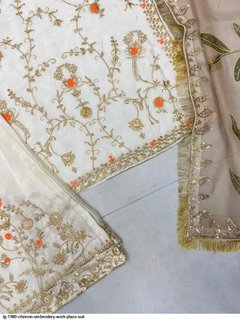 EXCLUSIVE DESIGNER HEAVY CHINON WITH SEQUANCE EMBROIDERY WORK SUIT WITH PLAZZO AND DUPATTA