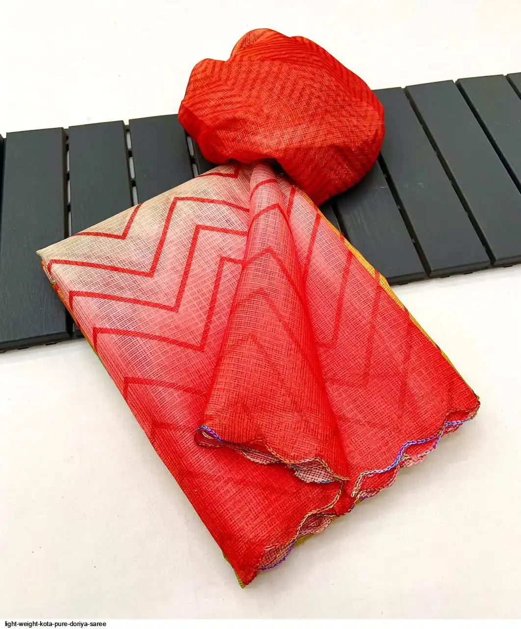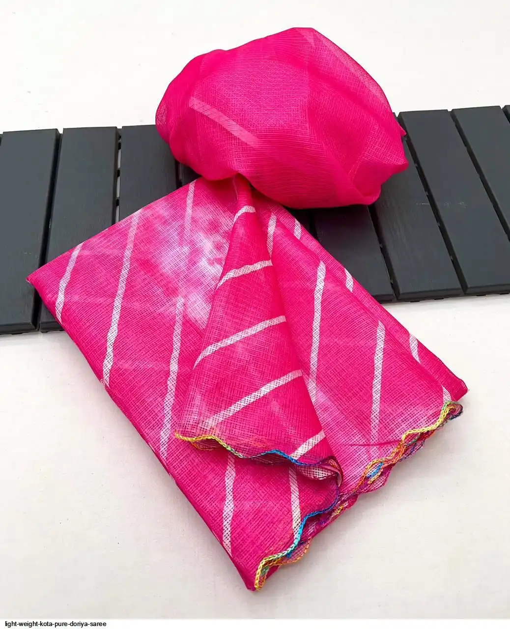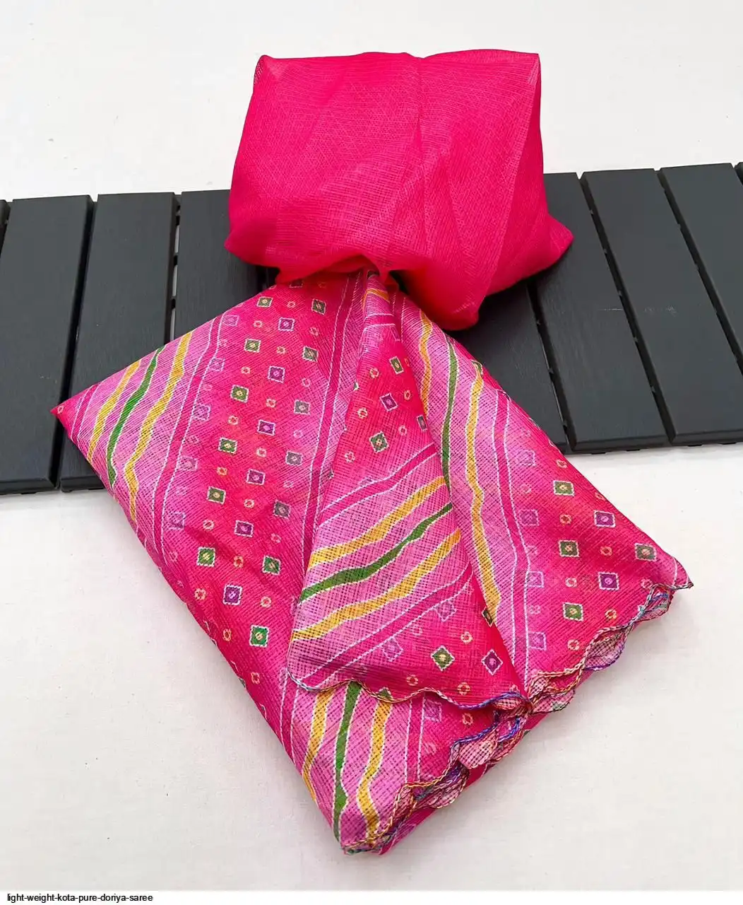 Fabric - Light Weight Kota Doriya Fabric And Savan Special Bandhej & Laheriya Print With Cutwork Bordar And Running Blouse