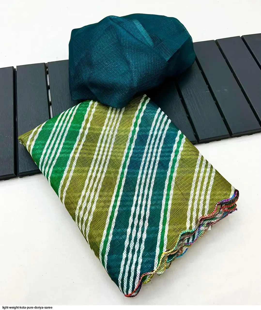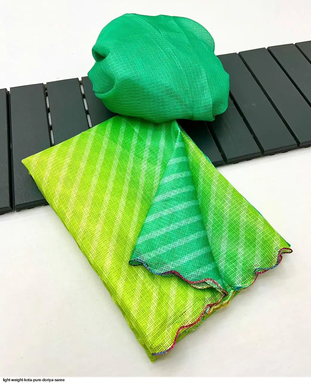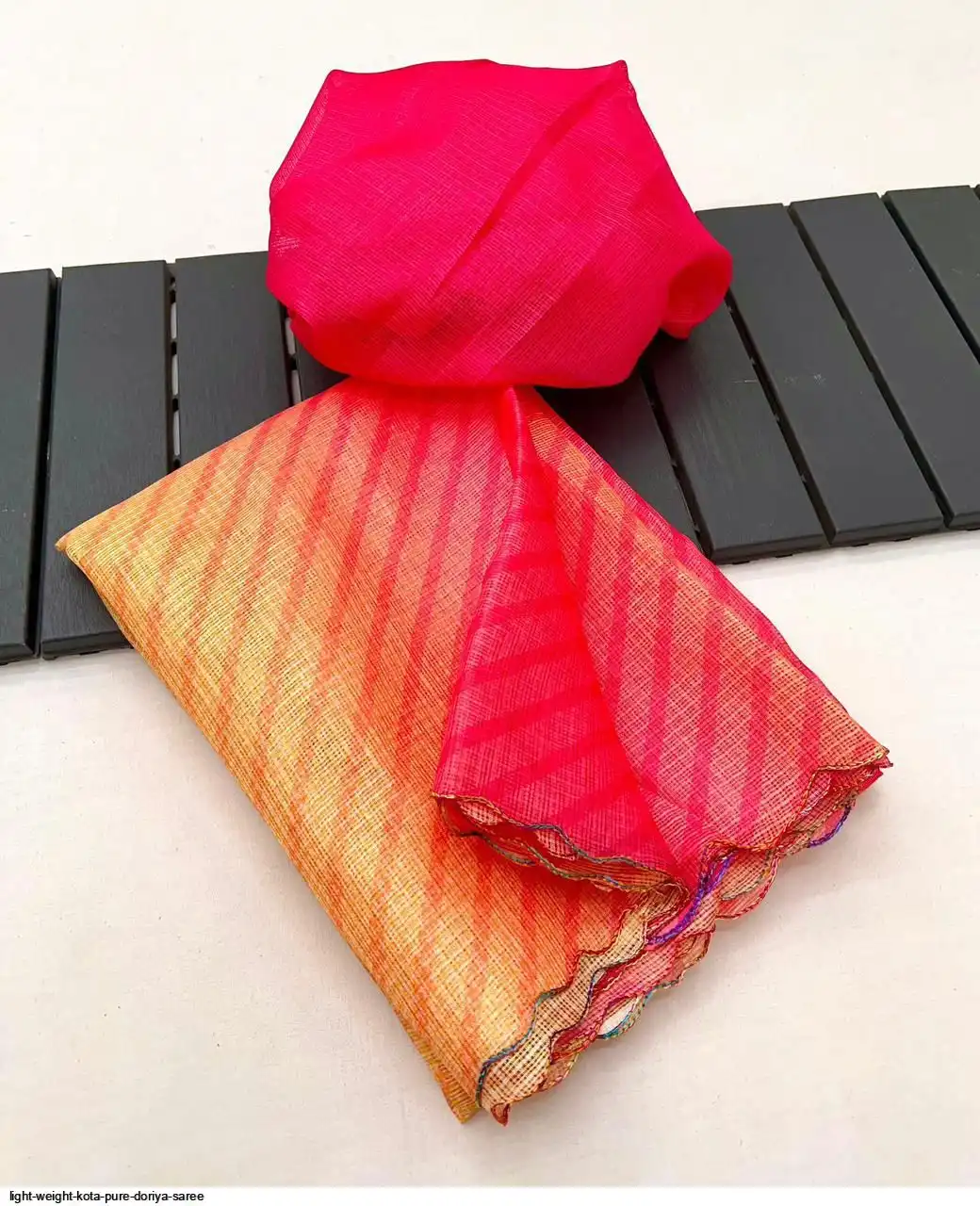 Fabric - Light Weight Kota Doriya Fabric And Savan Special Bandhej & Laheriya Print With Cutwork Bordar And Running Blouse