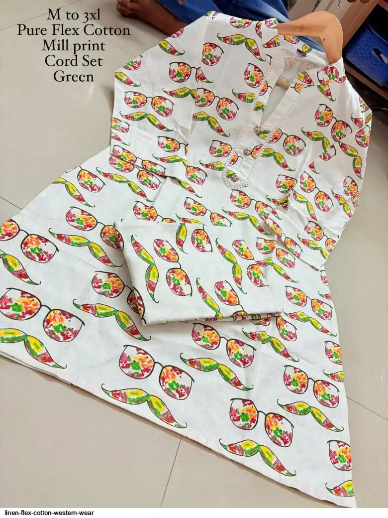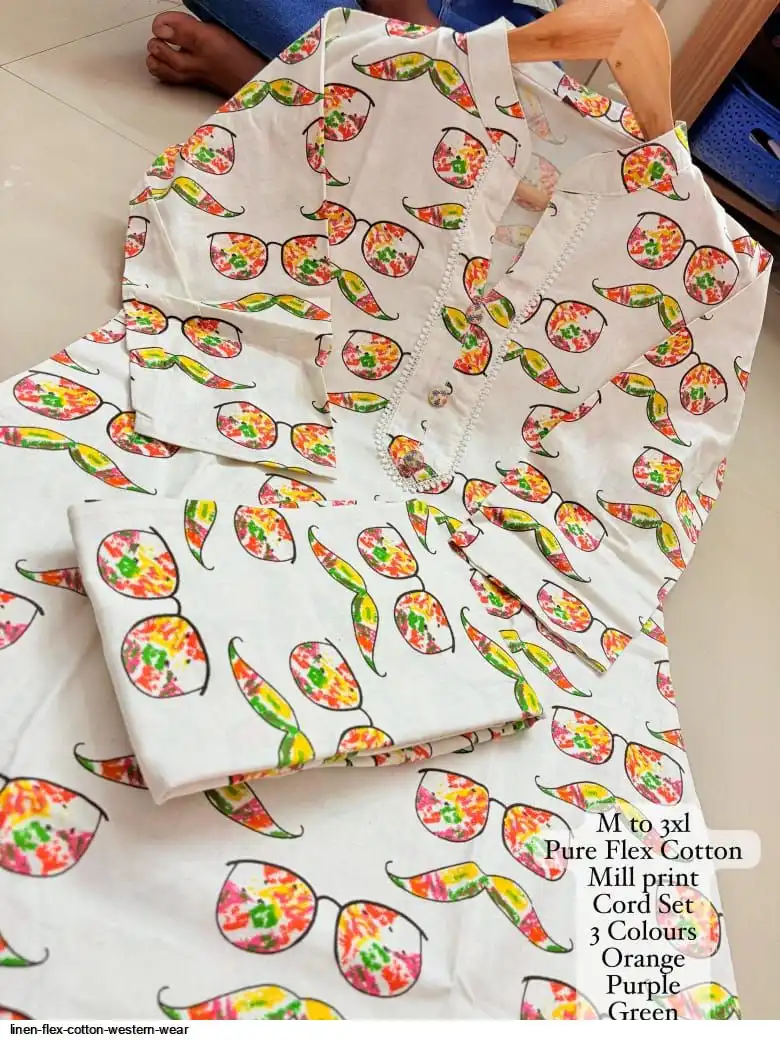 Fancy printed button n lece work in neck