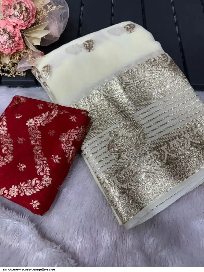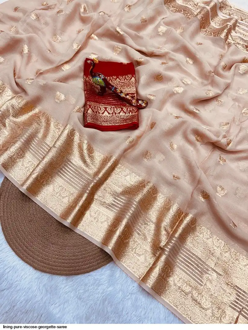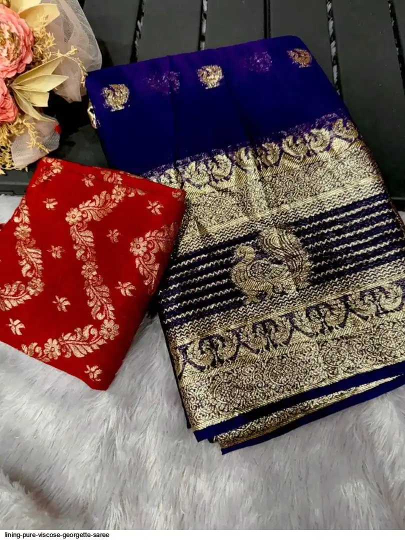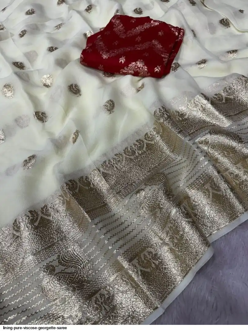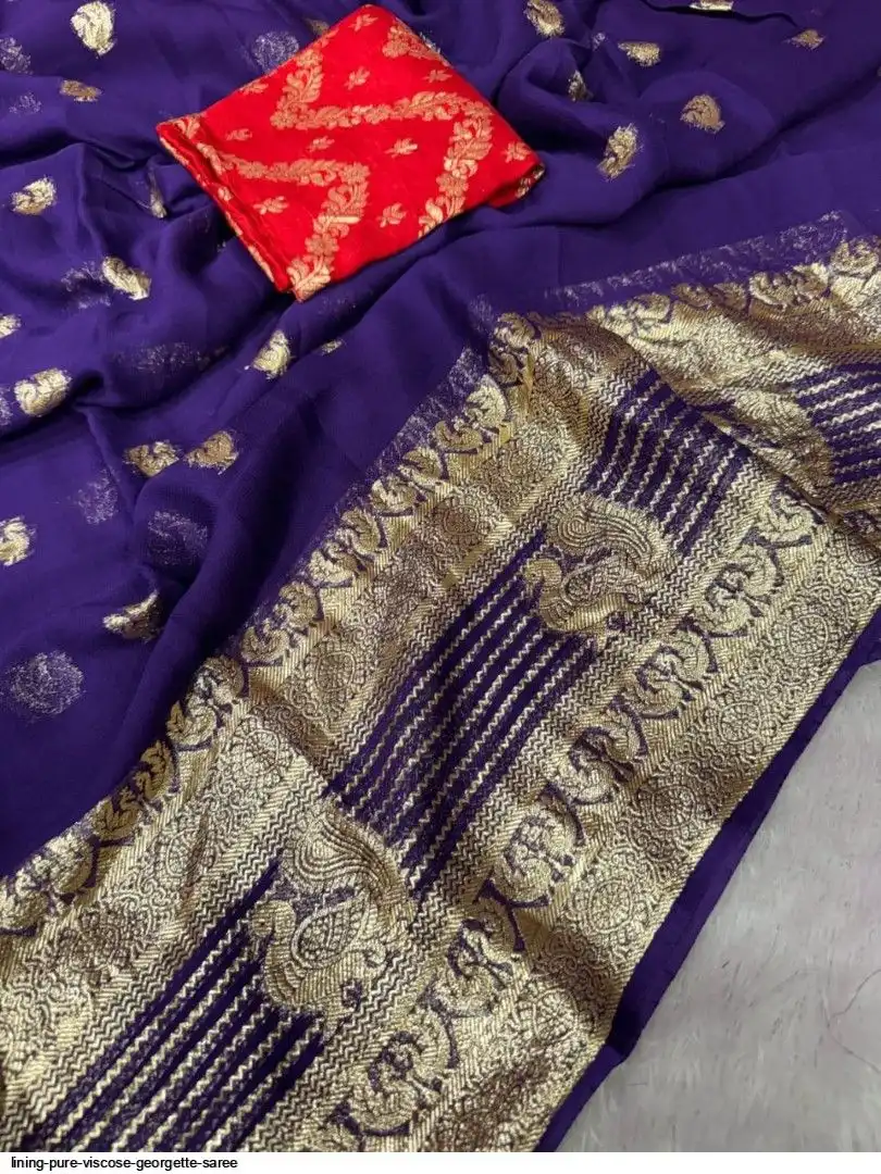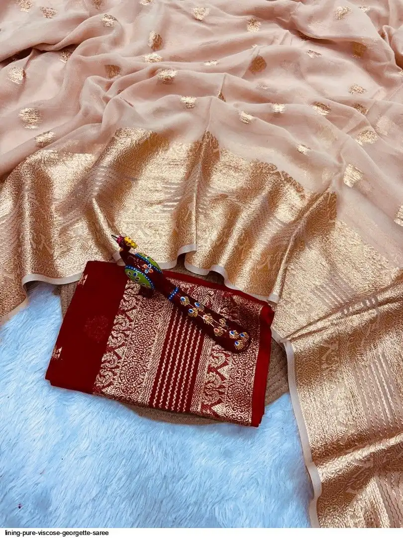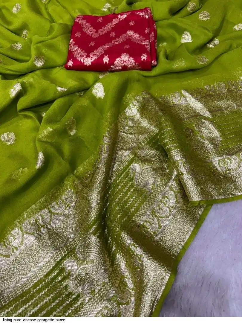 Viscose Georgette Saree With Banarsi Dola Silk Blouse