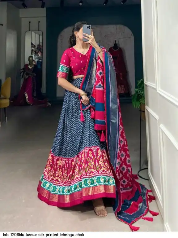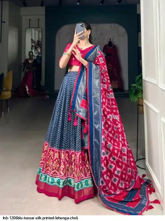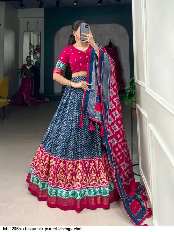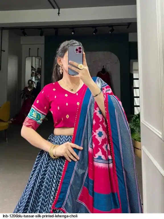 Step into the spotlight with confidence in our Tussar silk printed lehenga choli, crafted to perfection for every occasion