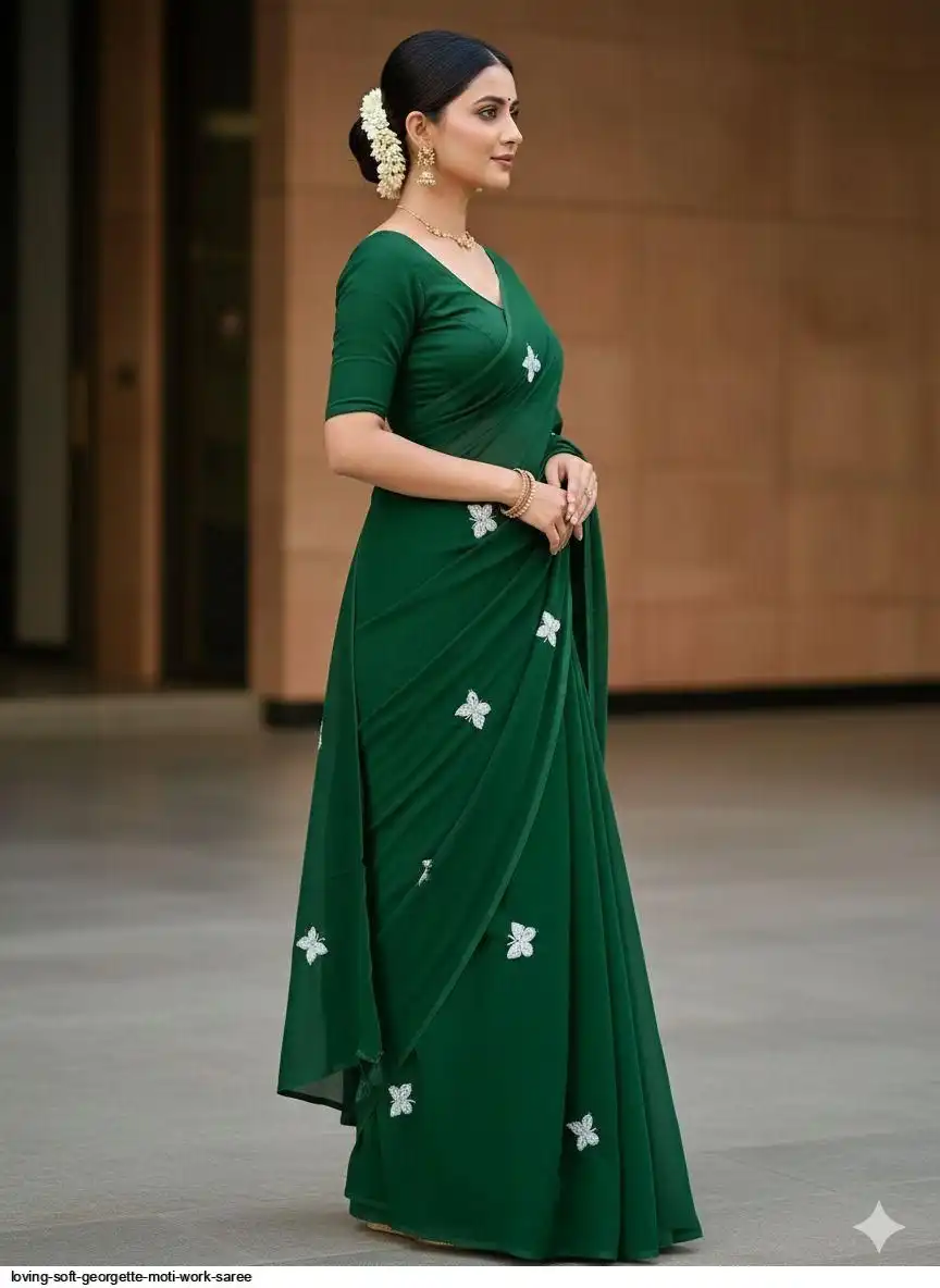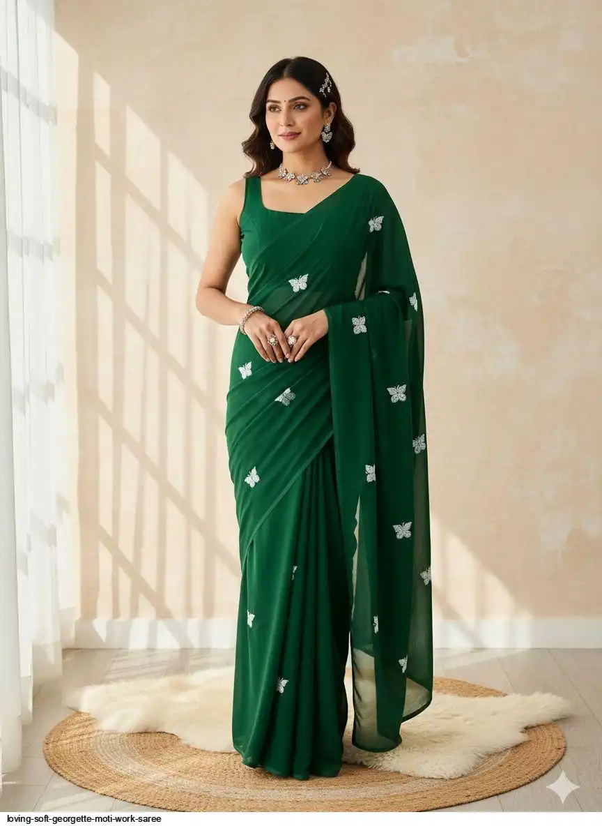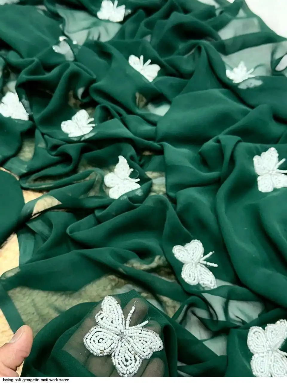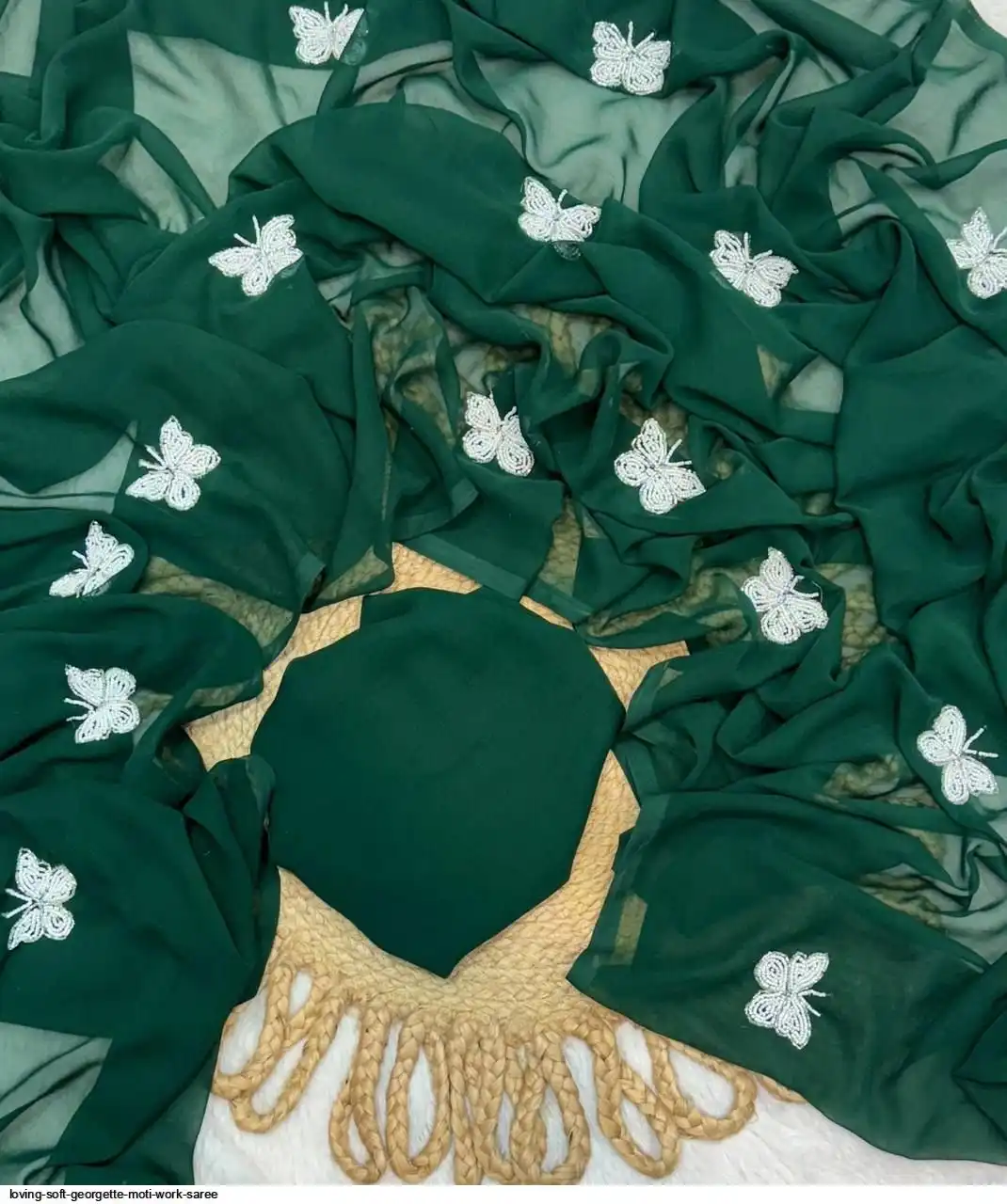 RICH LOVING BUTTERFLY HANDWORK KUMUD BEADS & MOTI WORK SAREE