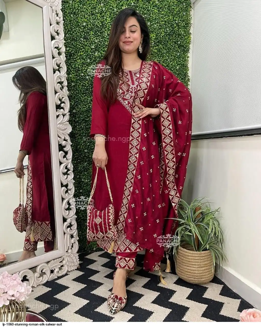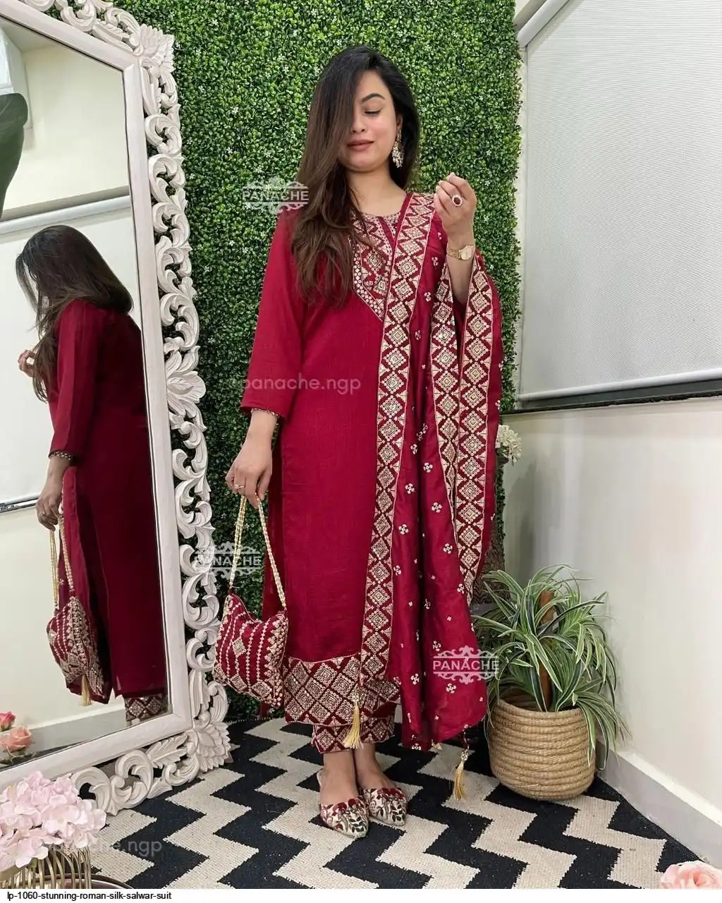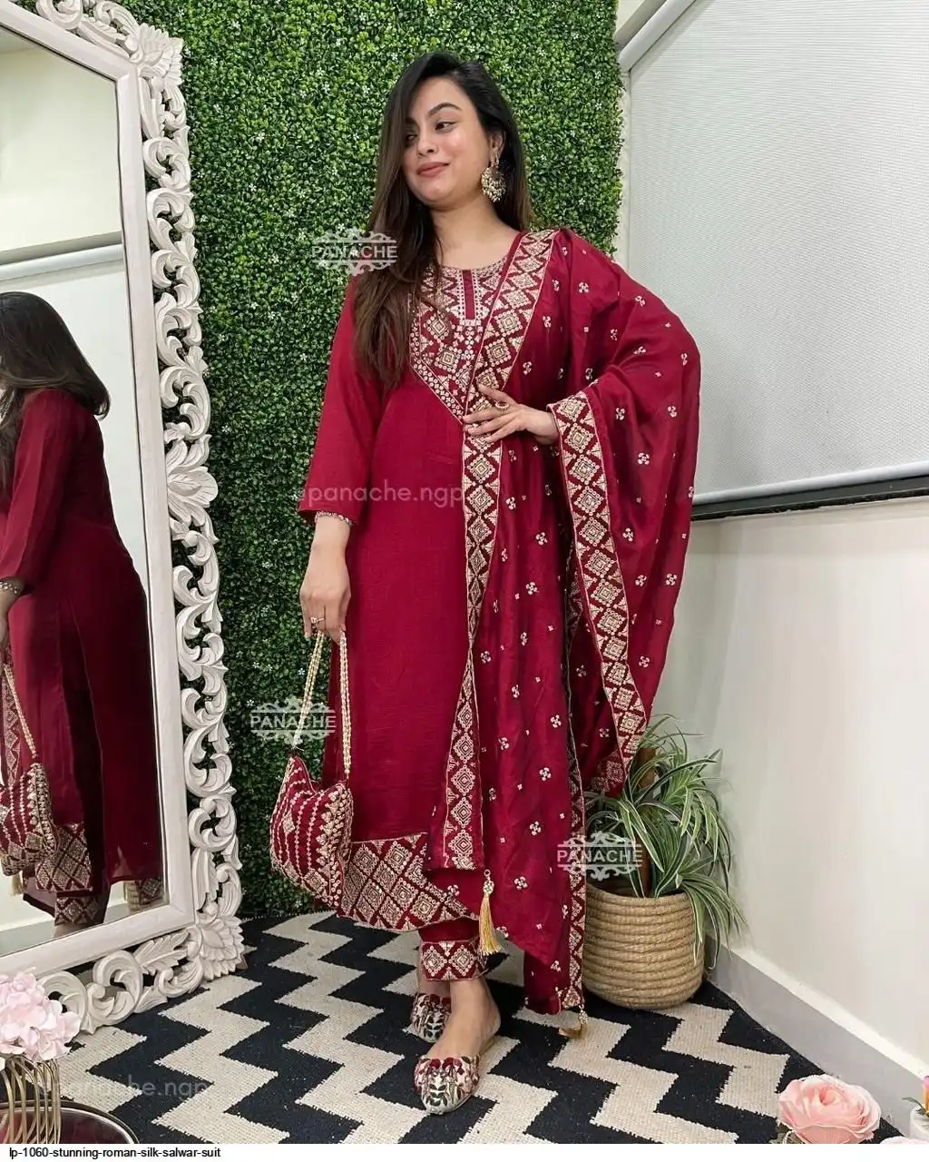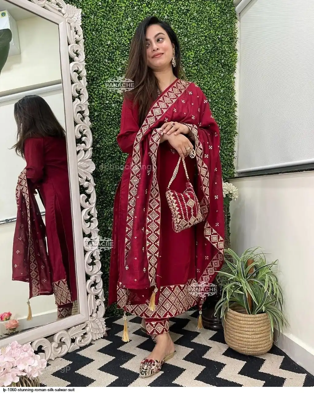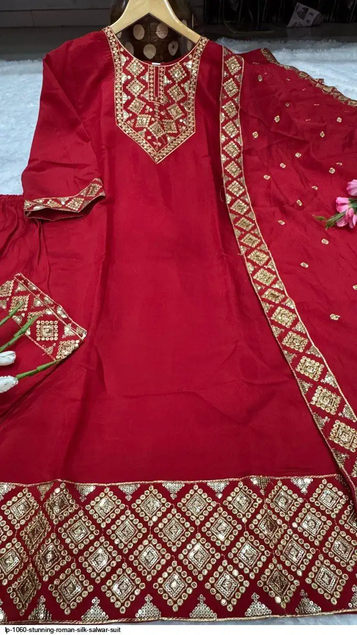 Presenting Beautiful Heavy quality Roman Silk Fabric designer festive wear kurti pant and dupatta with zari and Jacquard work with lining