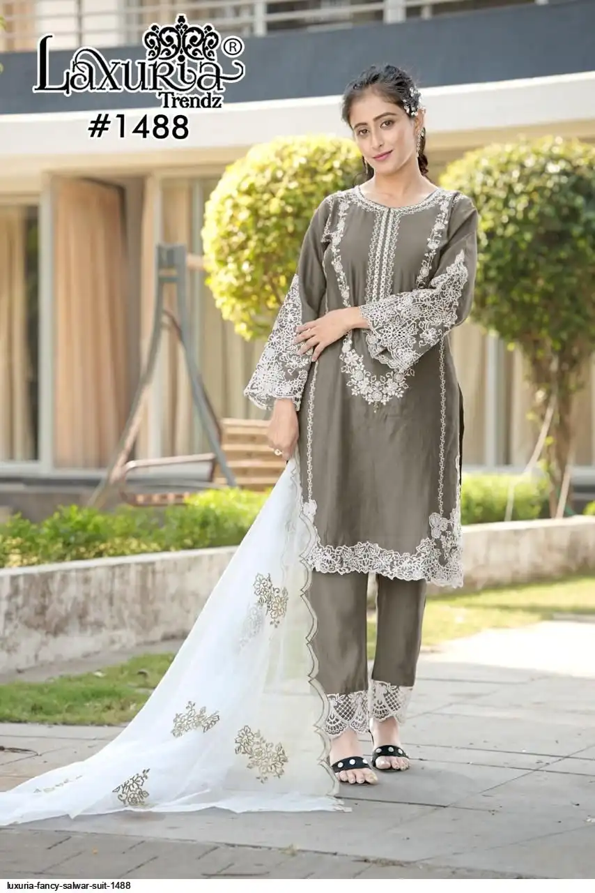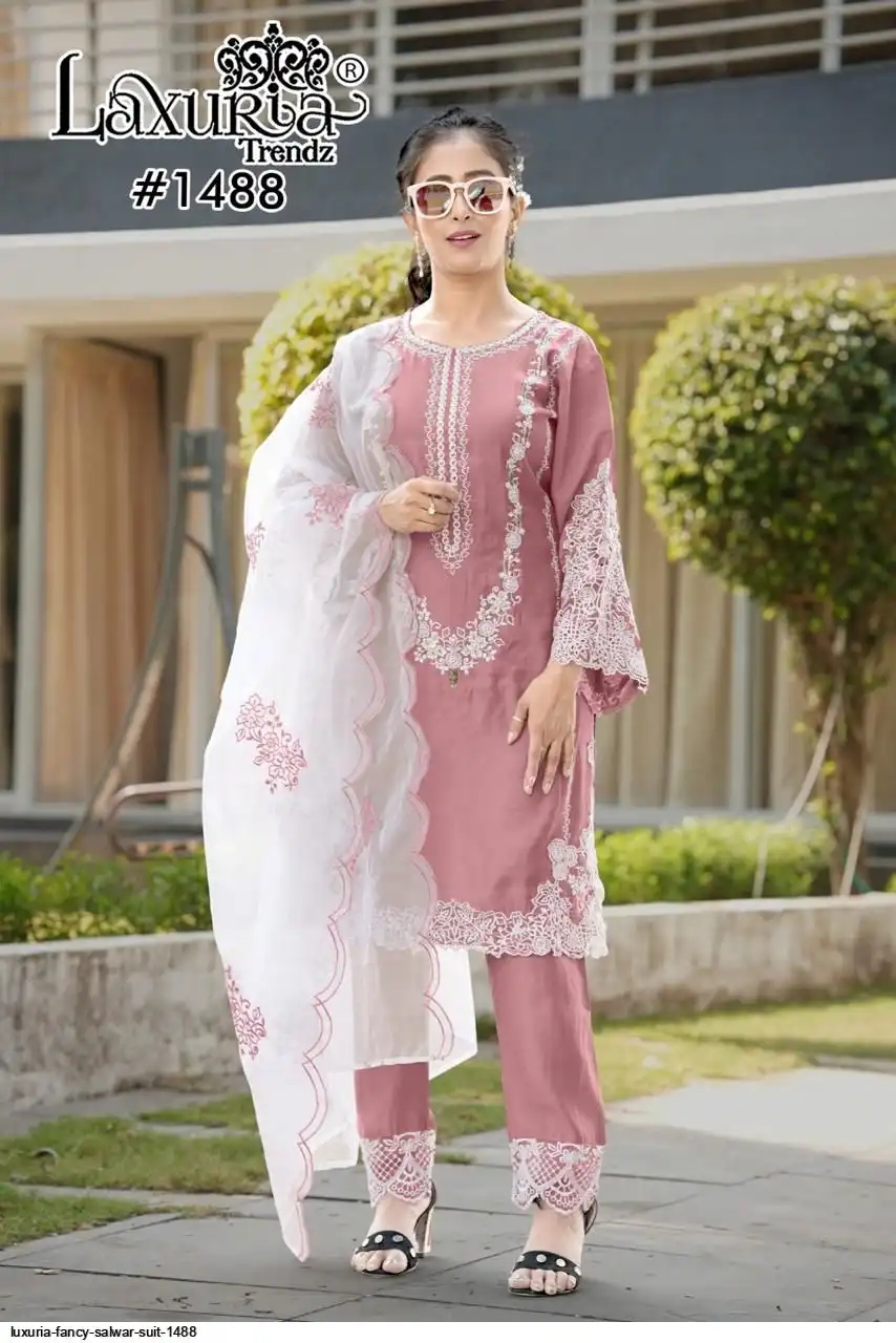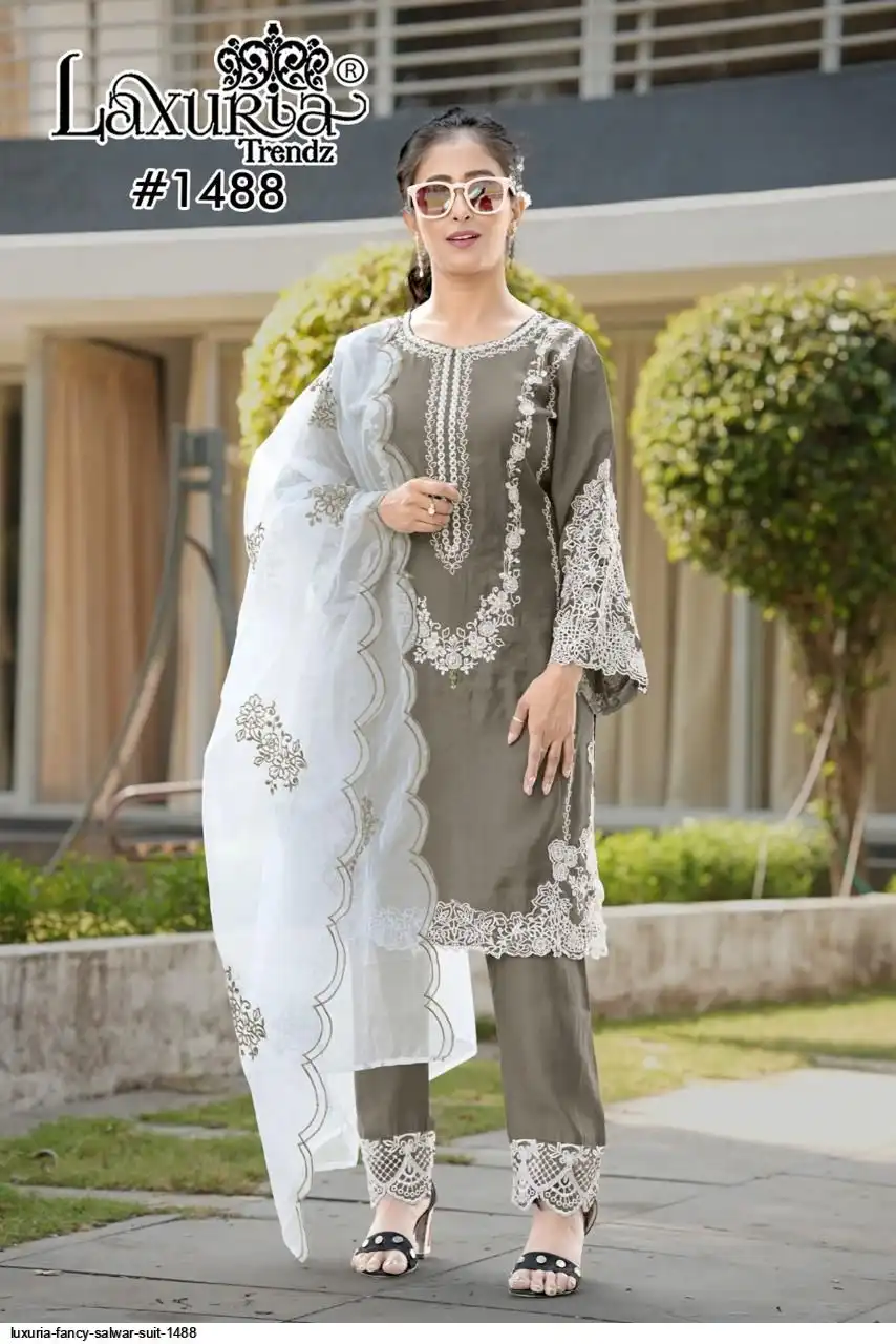 Designer Tunic with Gorgeous Heavy Embroidery , Cut Work & Hand Work In Tunic £ sleeves Also In Embroidrey With CutWork * n *Glamours * paired With Pant & Embrdry Organza Dupatta...