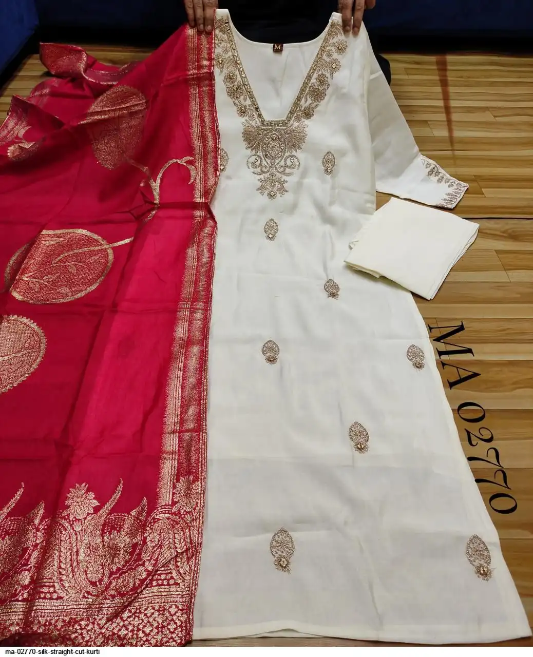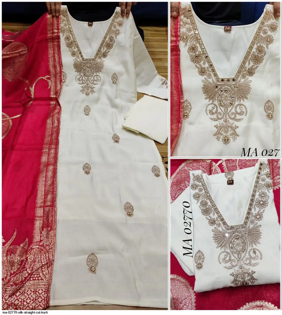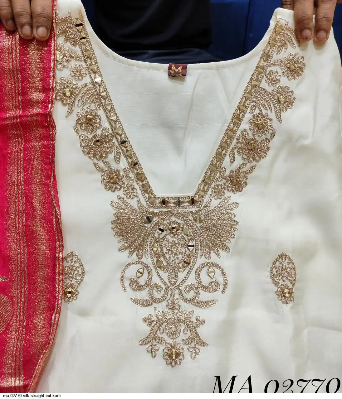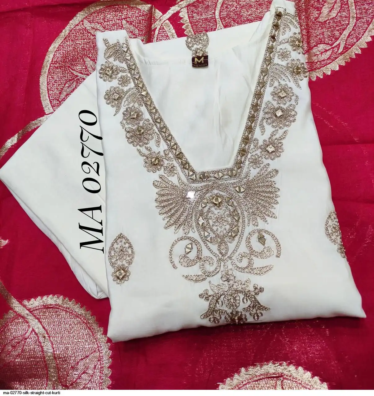 top - silk straight kurti with dori embroidery allover , mirror work on yoke