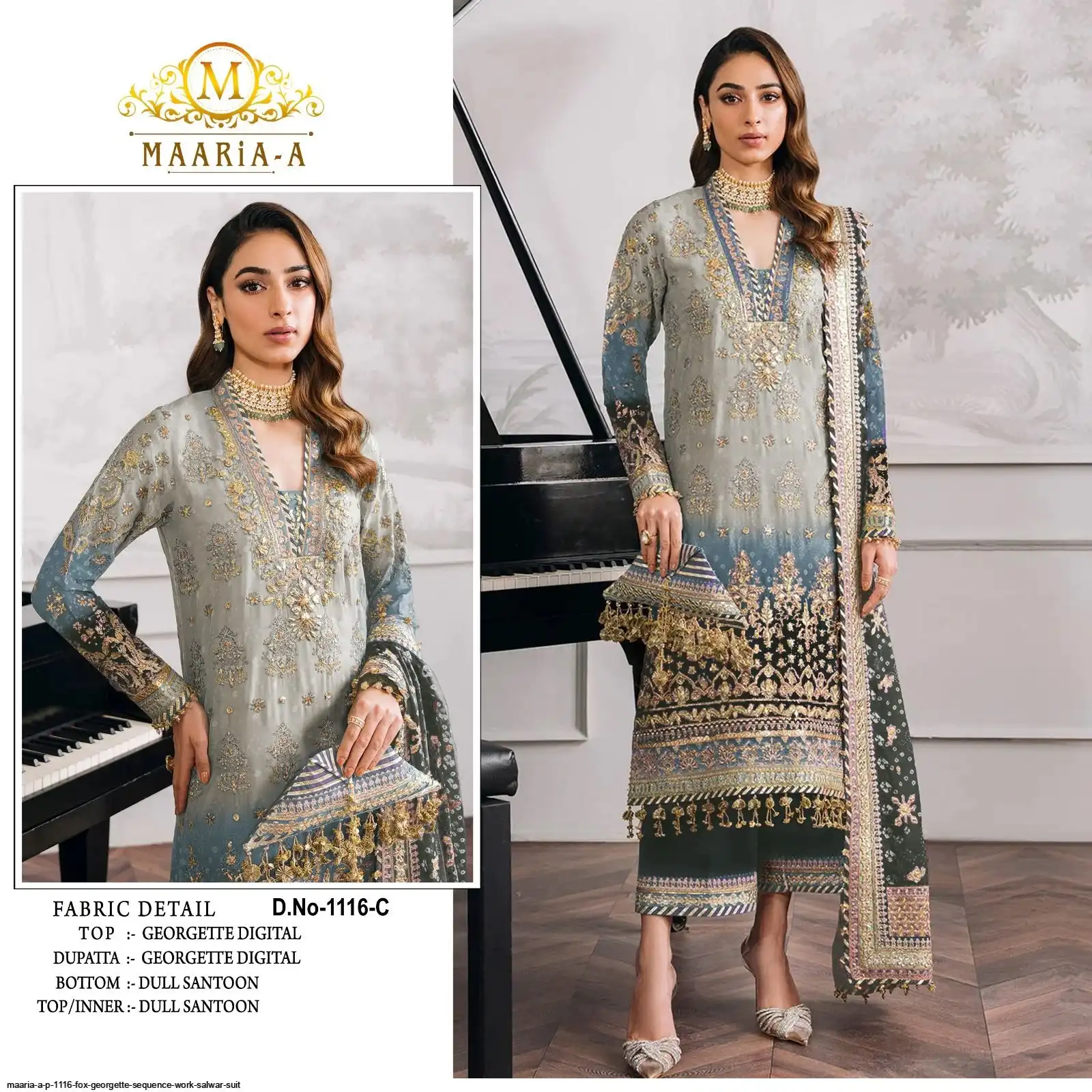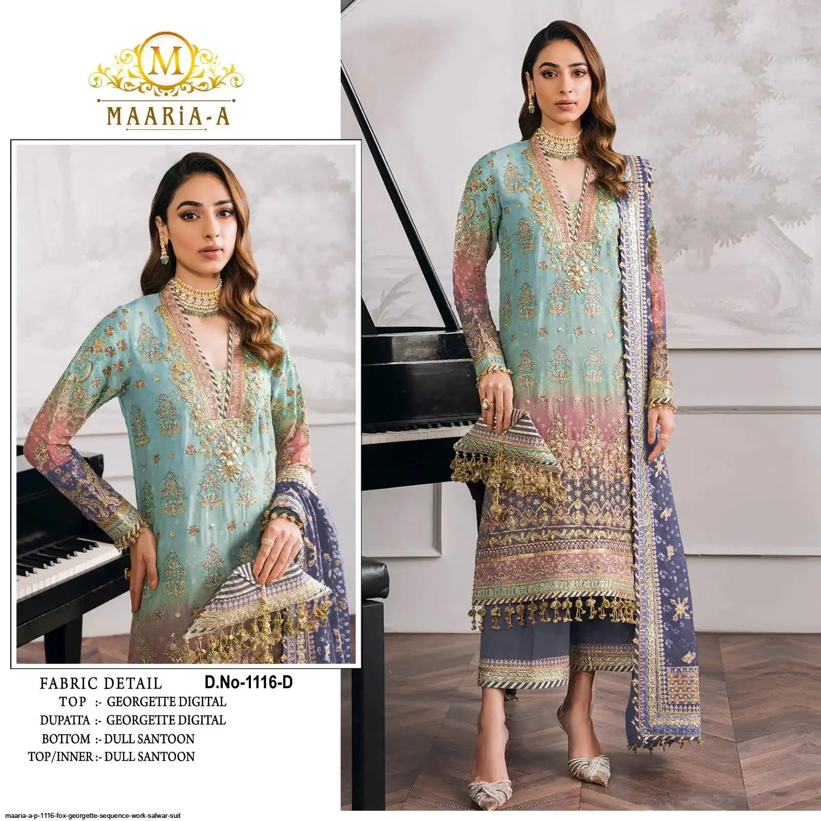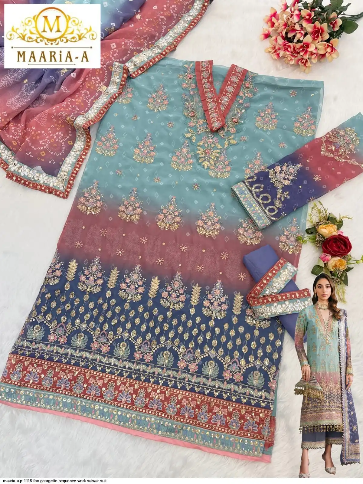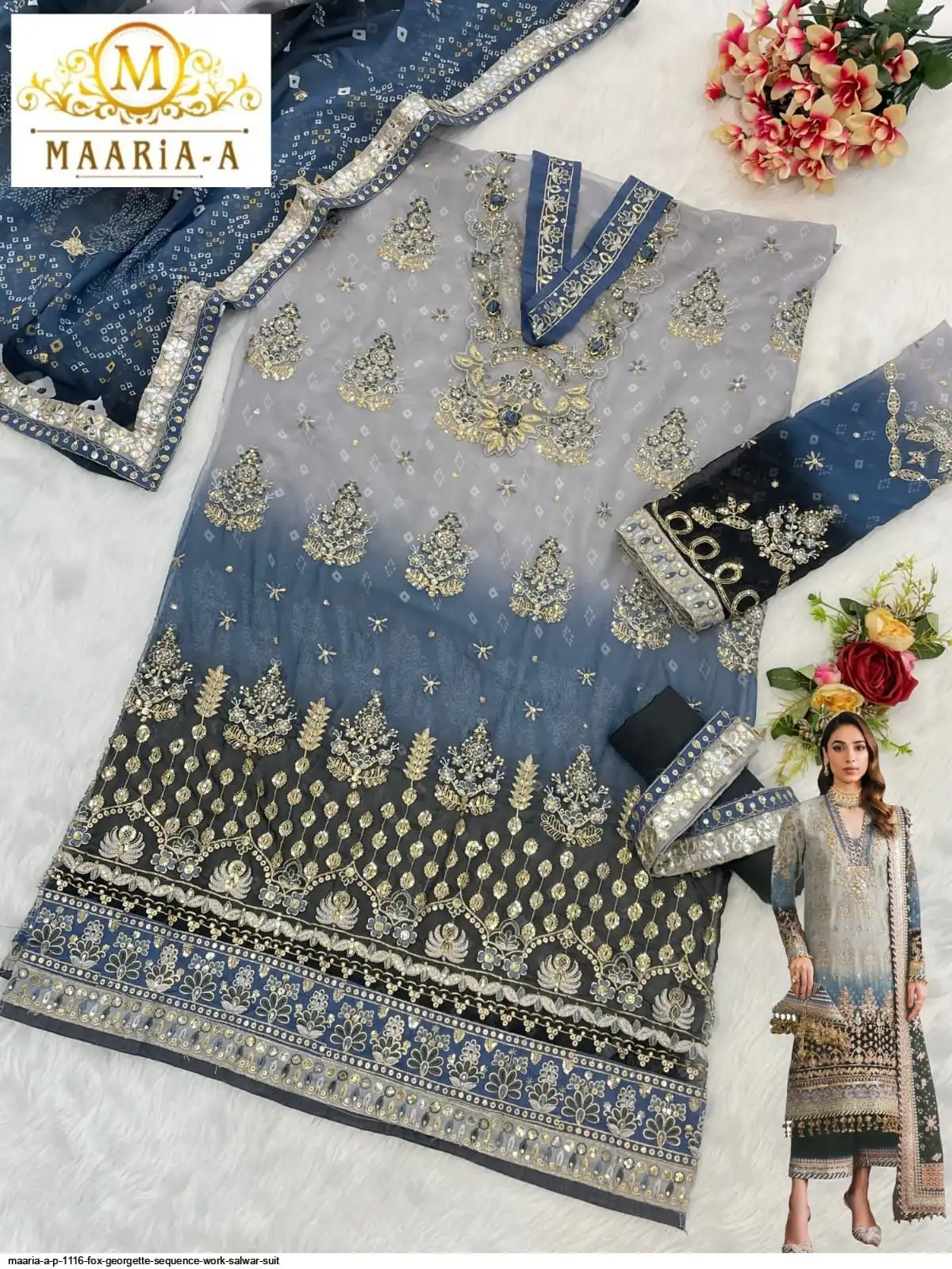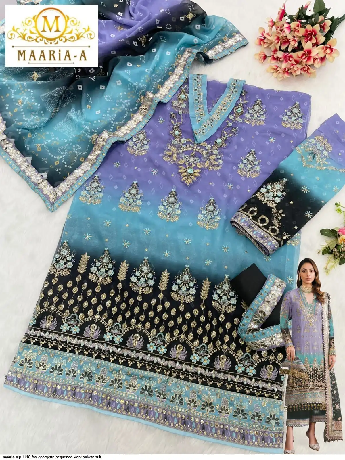 Top :- Heavy Fox Georgette With Digital Print with Embroidery Sequence Work