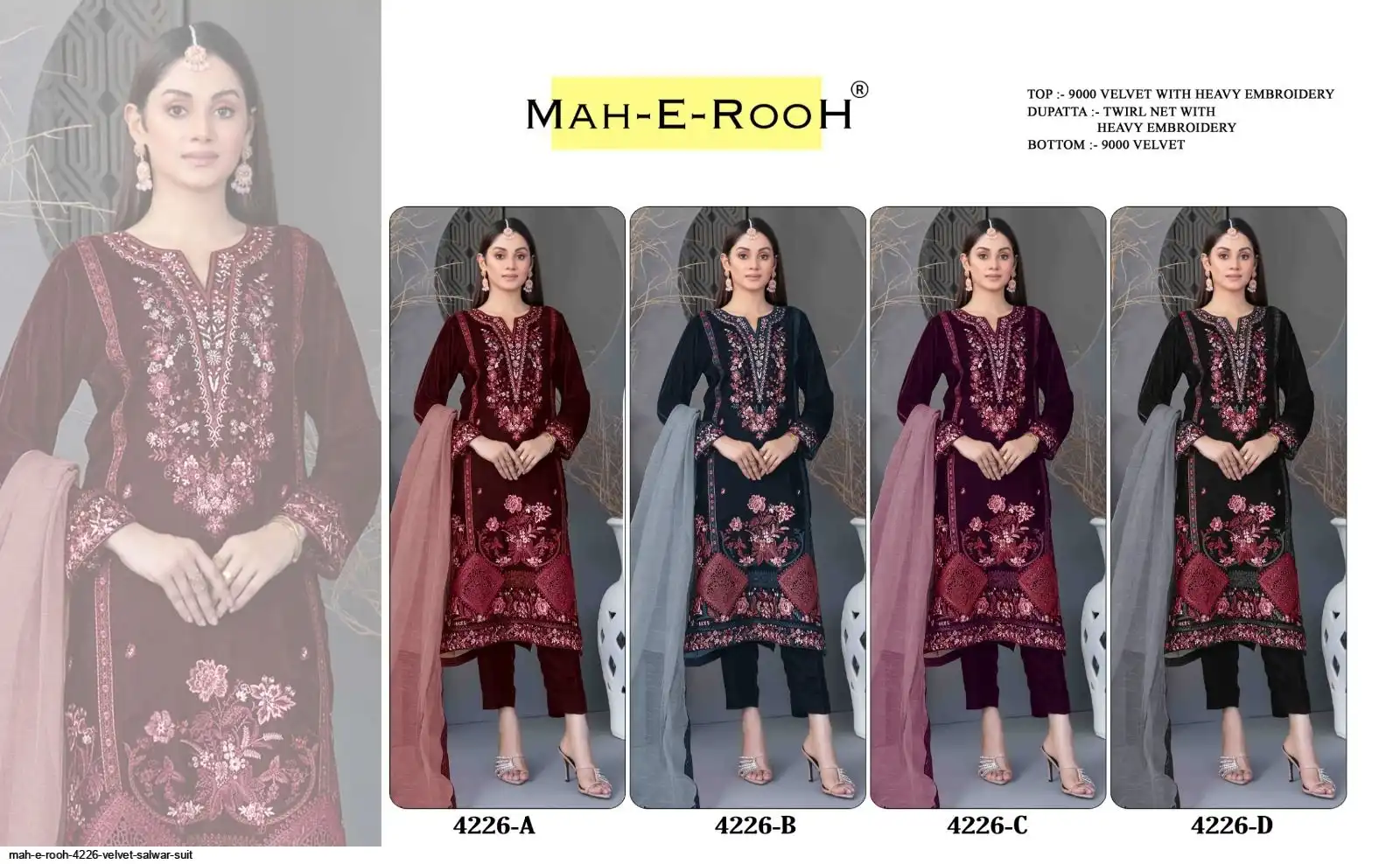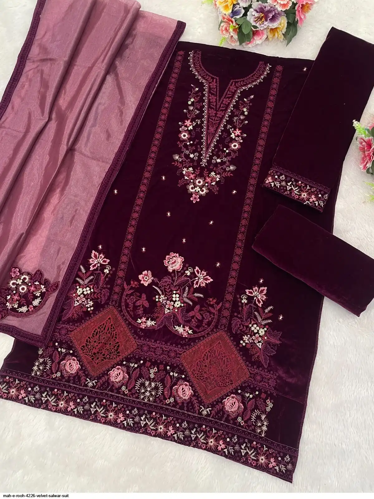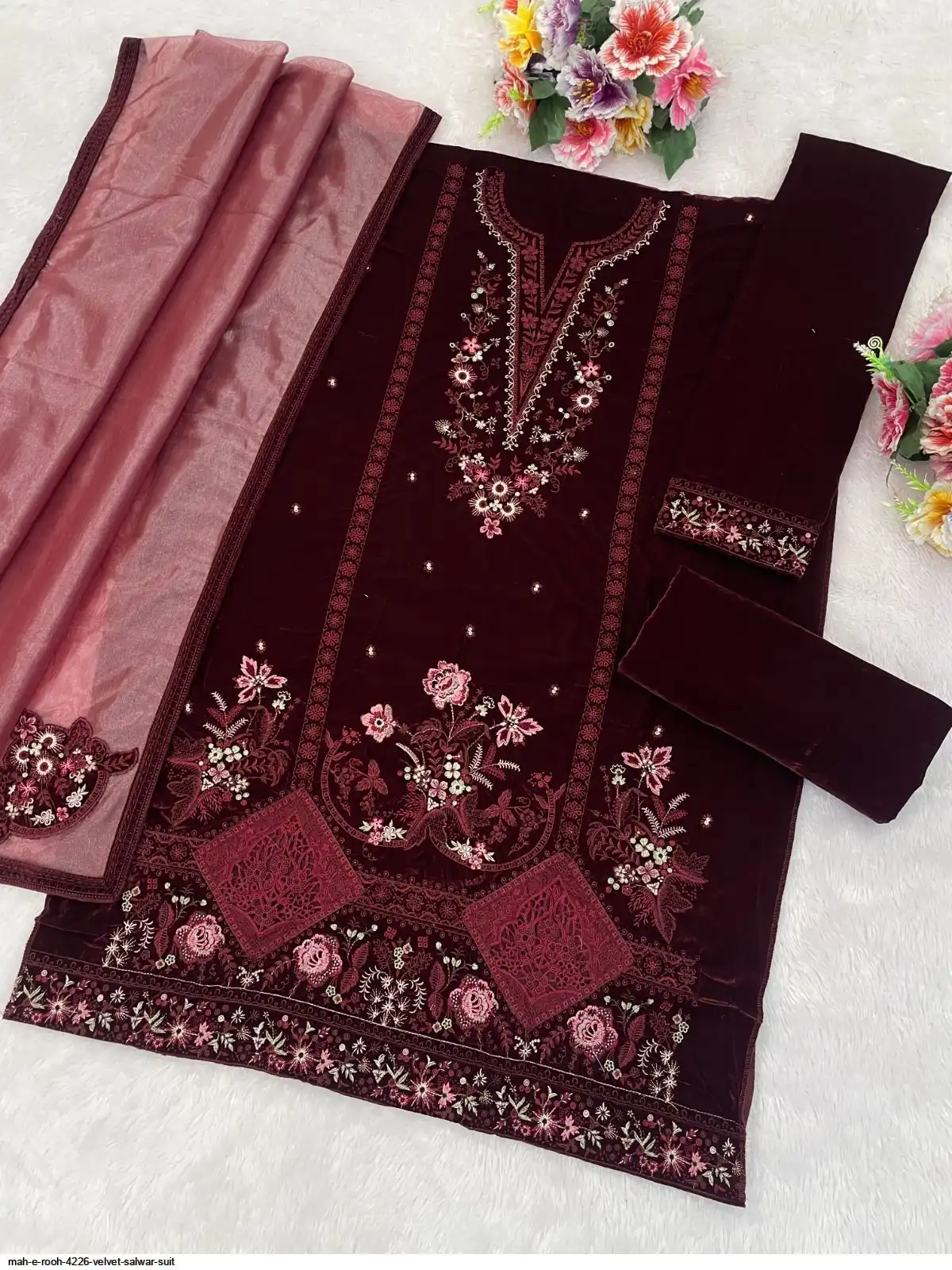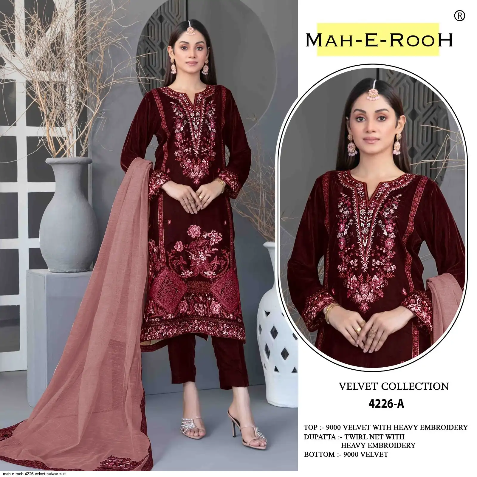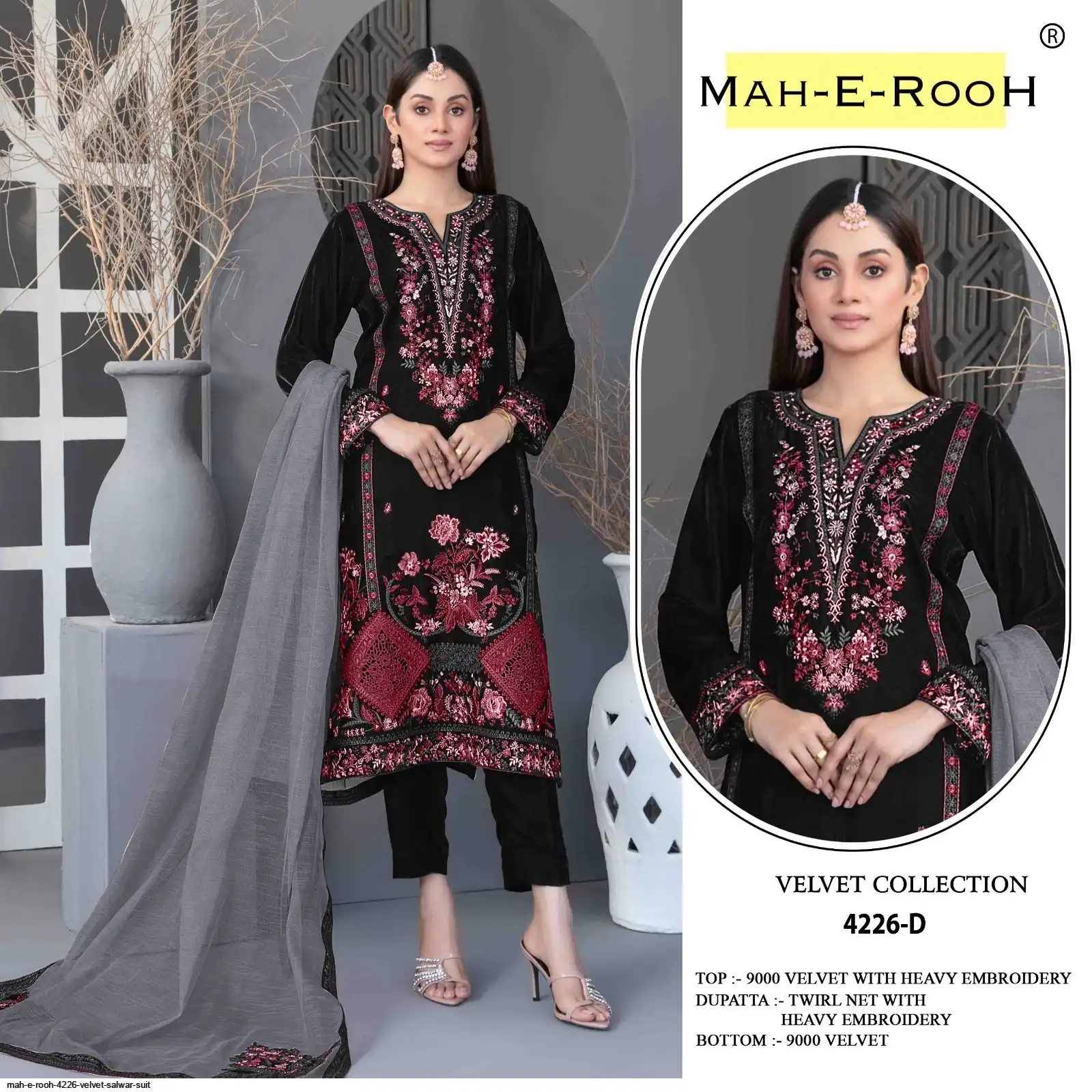 TOP & SLEEVES : 9000 Velvet with Embroidered 3mm Sequence work + Cut Work