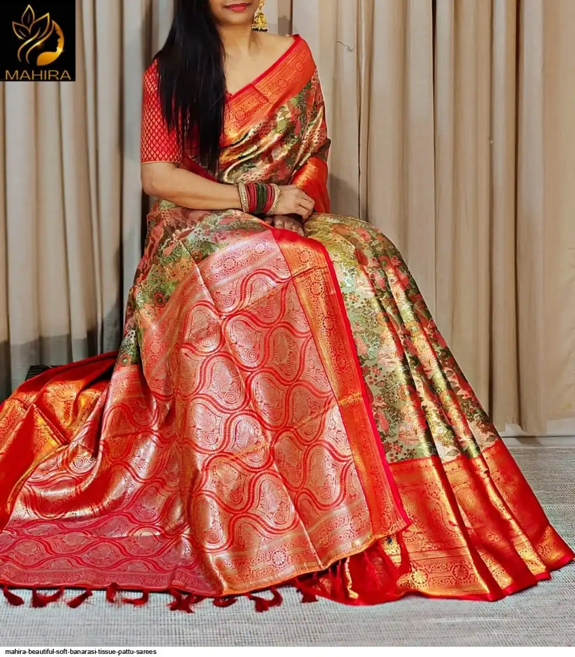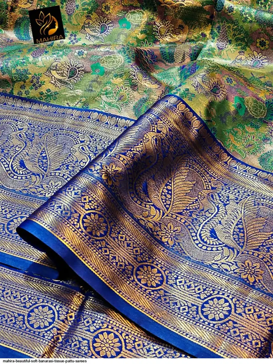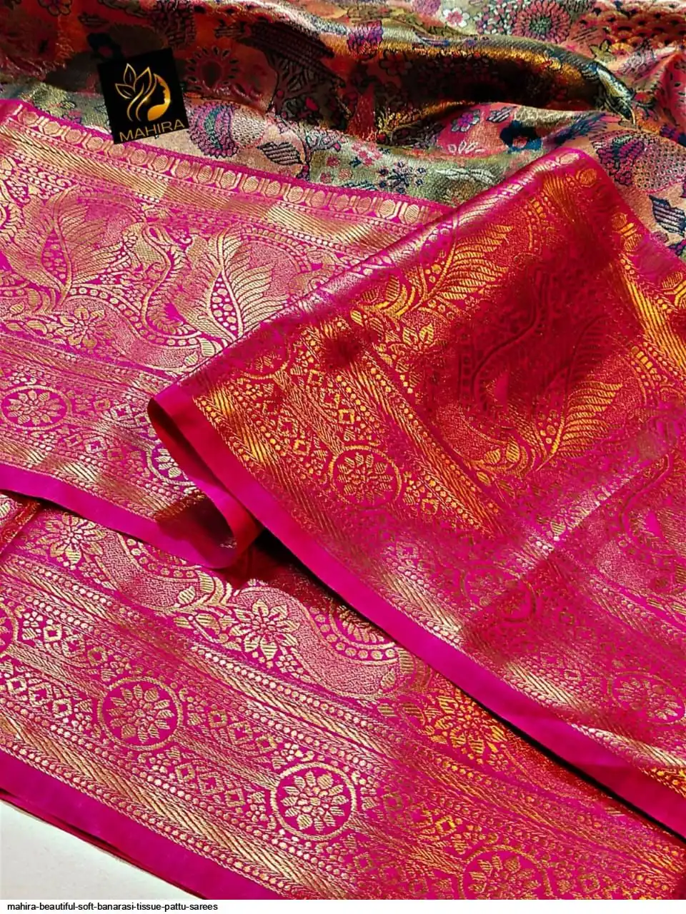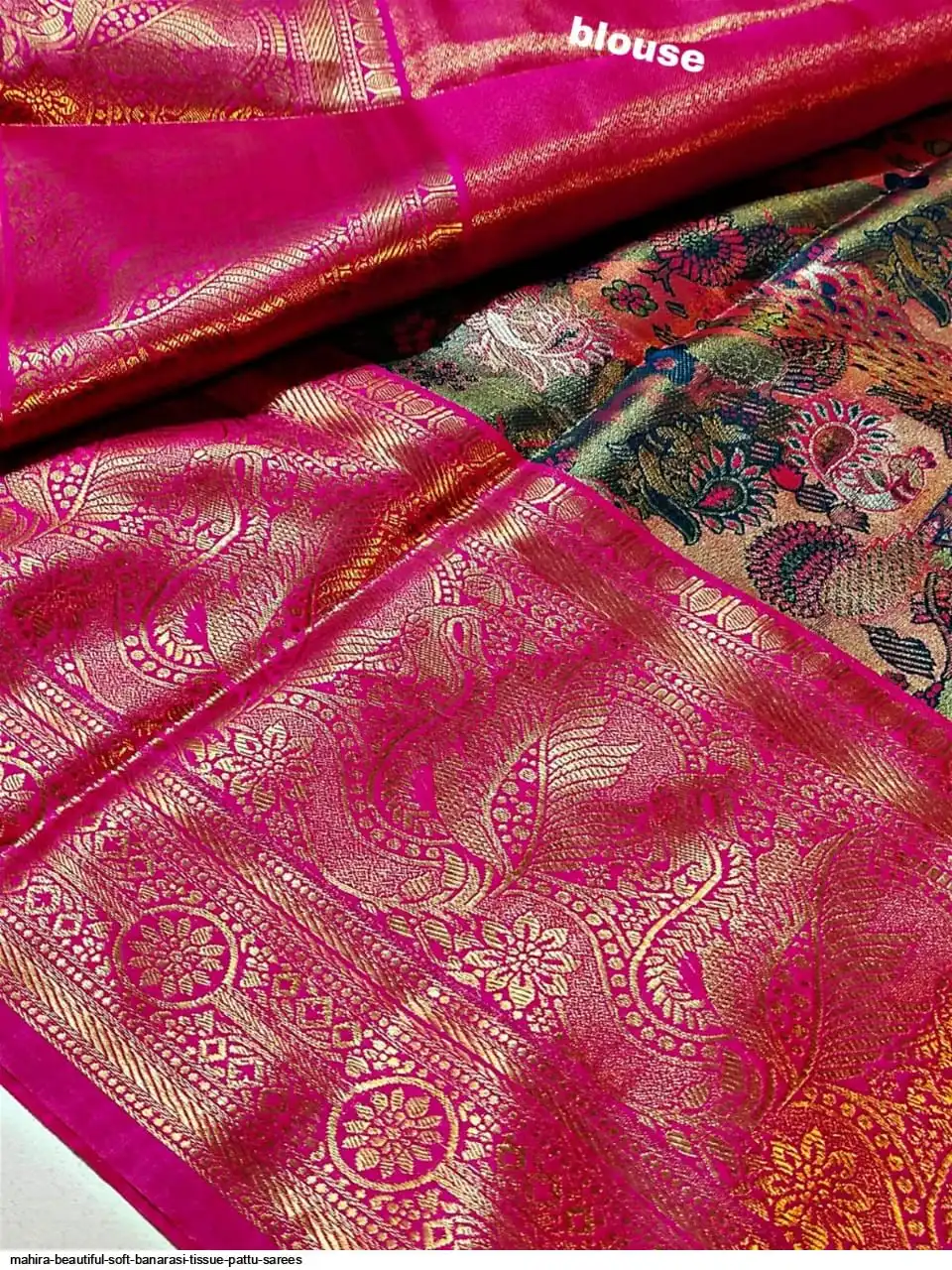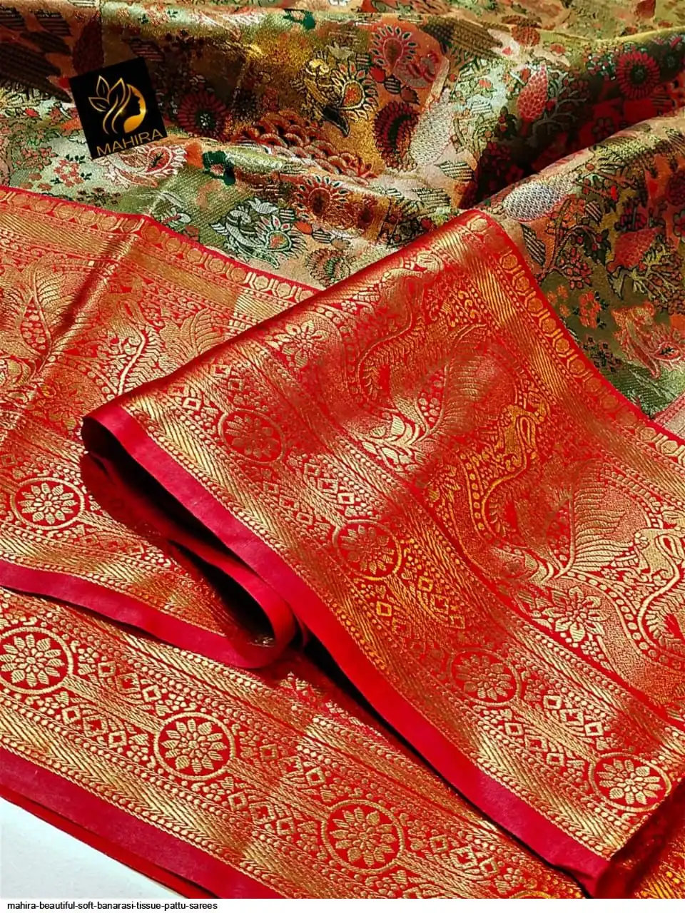 Beautiful soft banarasi tissue pattu sarees inspired by dharmavaram tissue pattu sarees with all over weaving along with contrast weaving border
