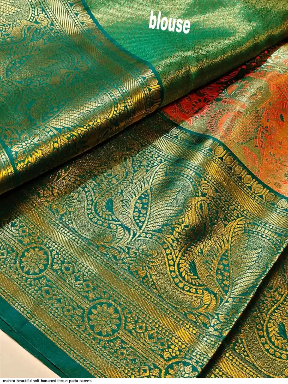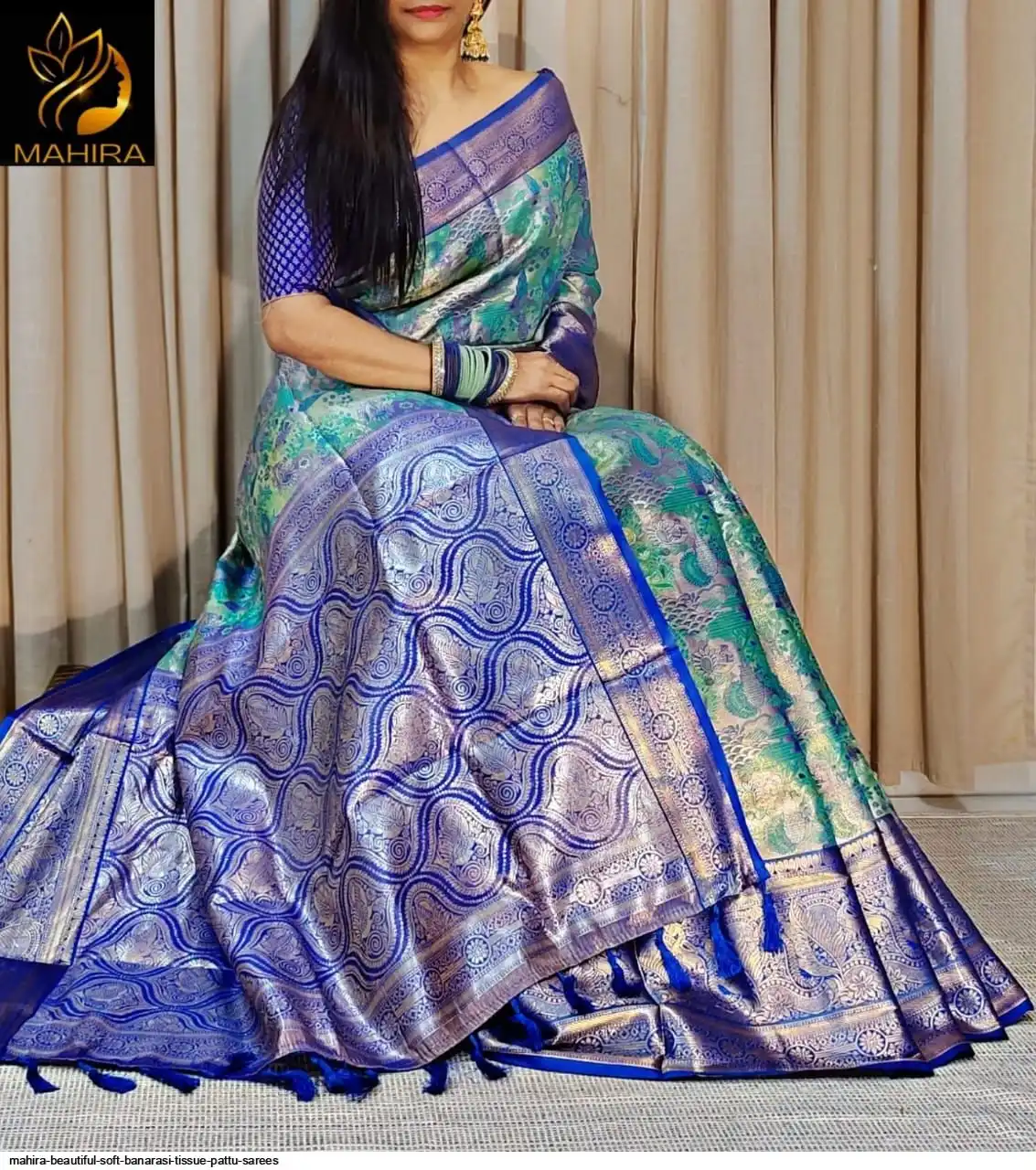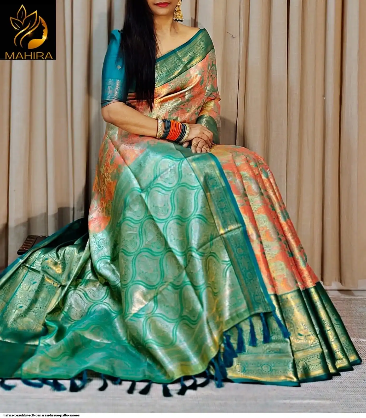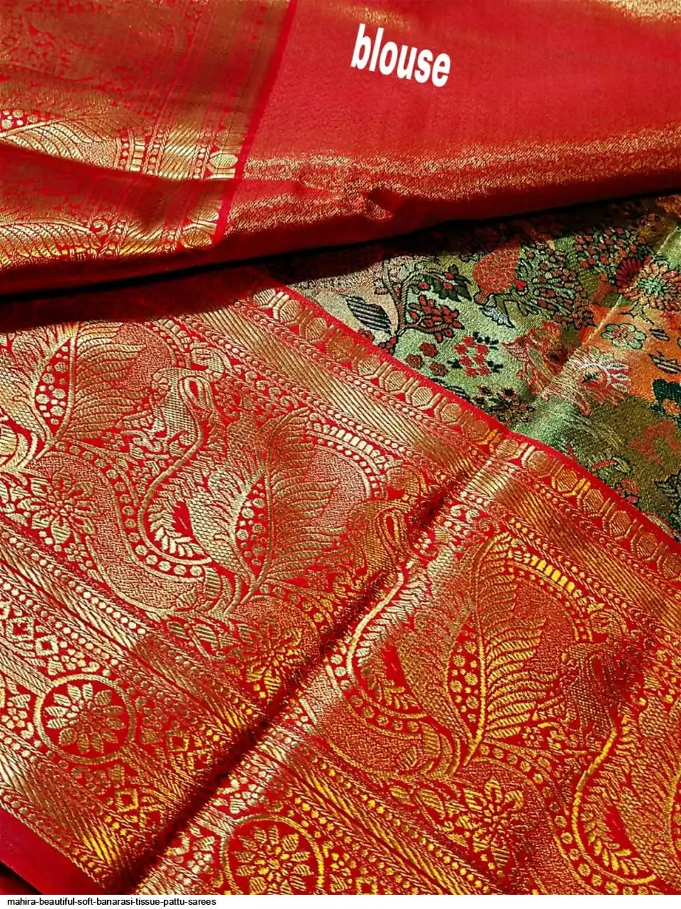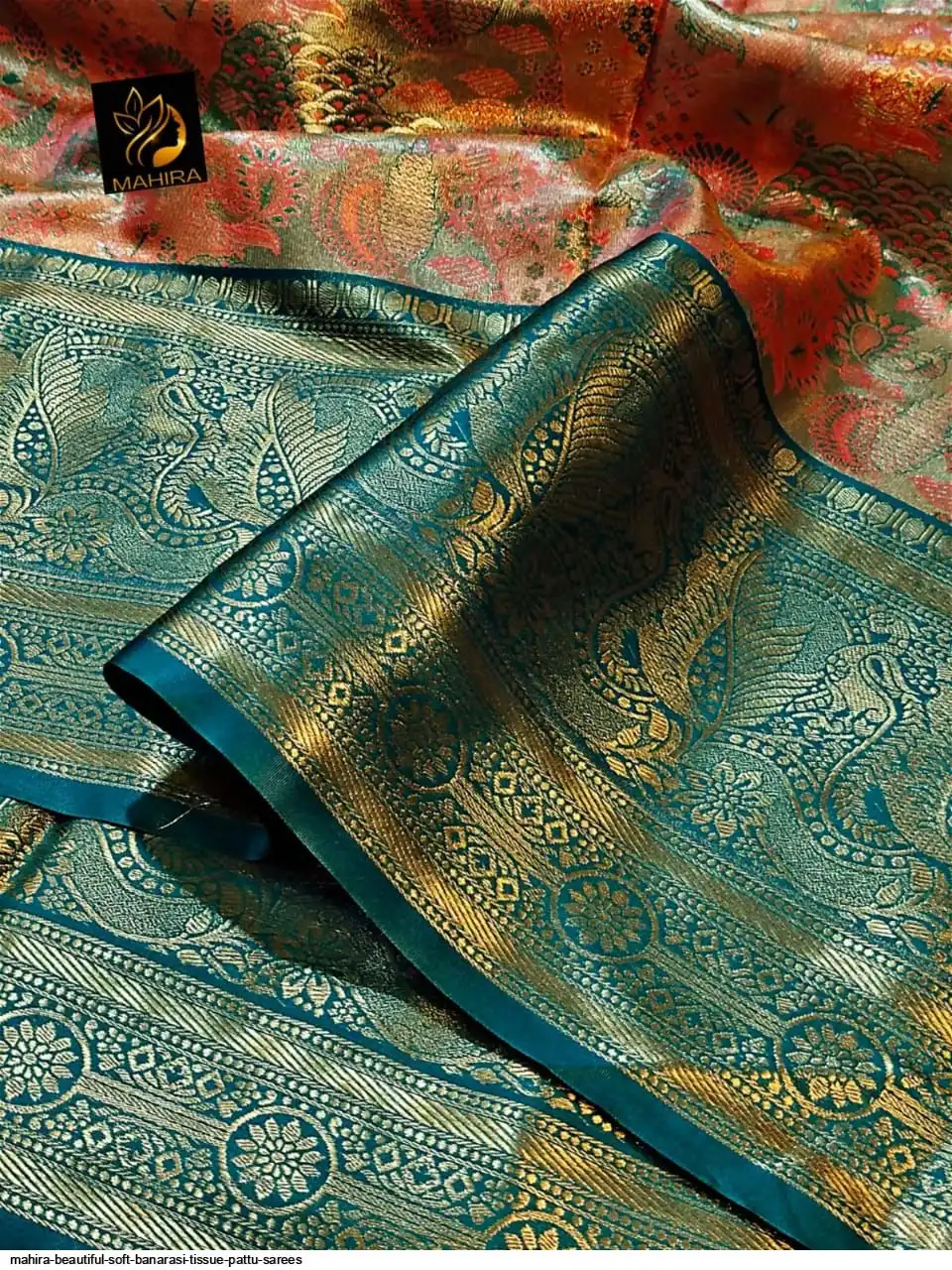 Beautiful soft banarasi tissue pattu sarees inspired by dharmavaram tissue pattu sarees with all over weaving along with contrast weaving border