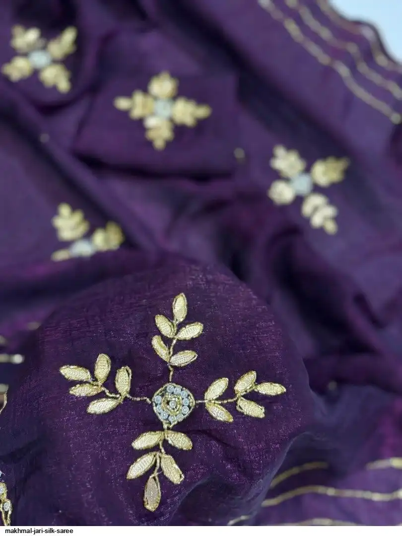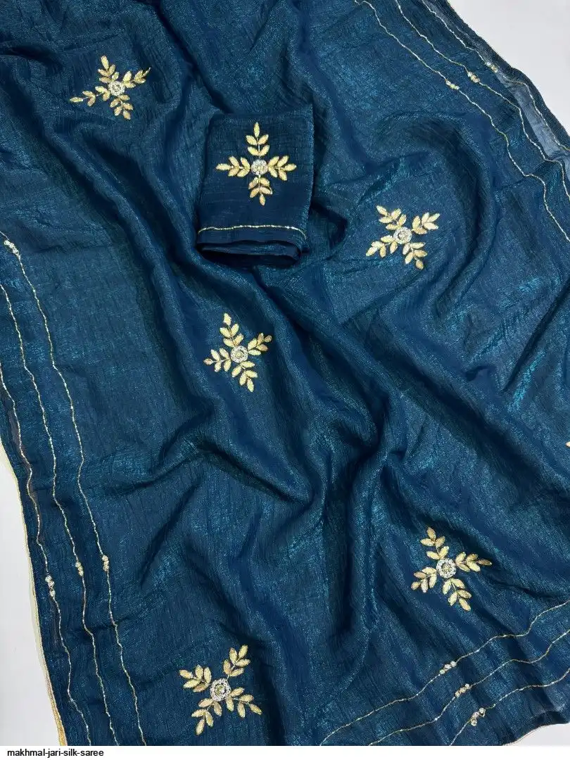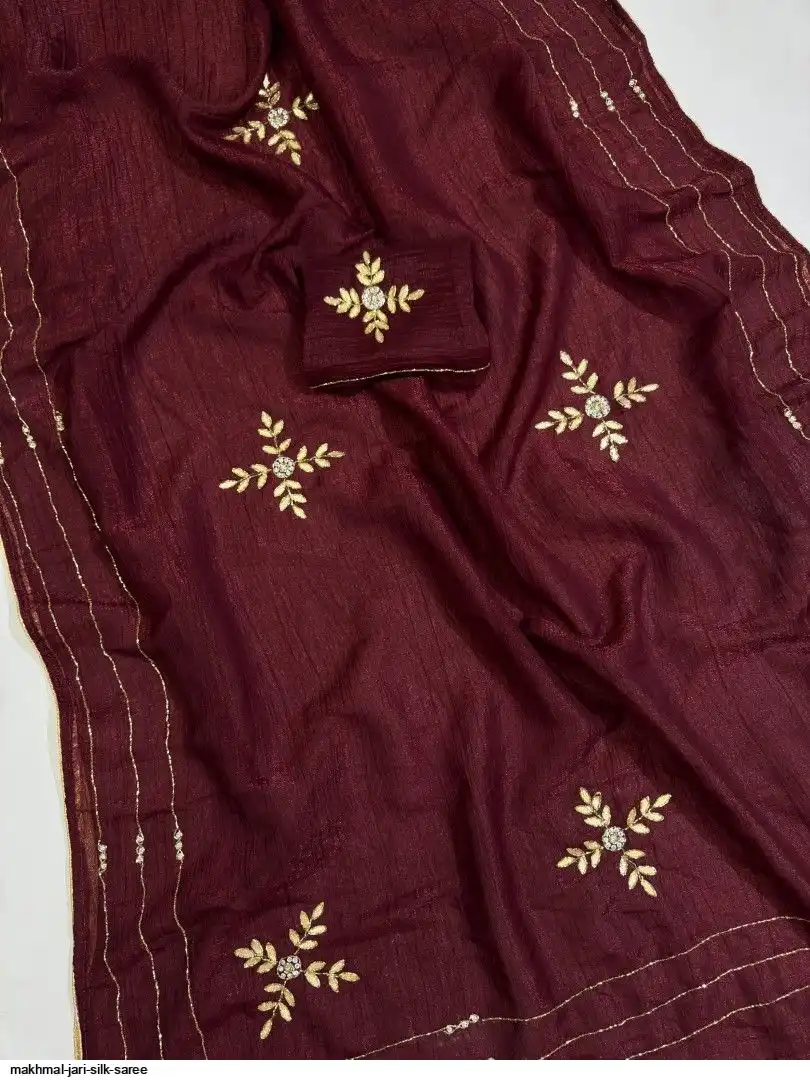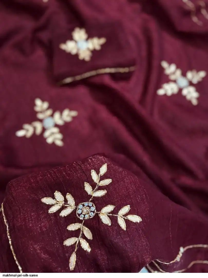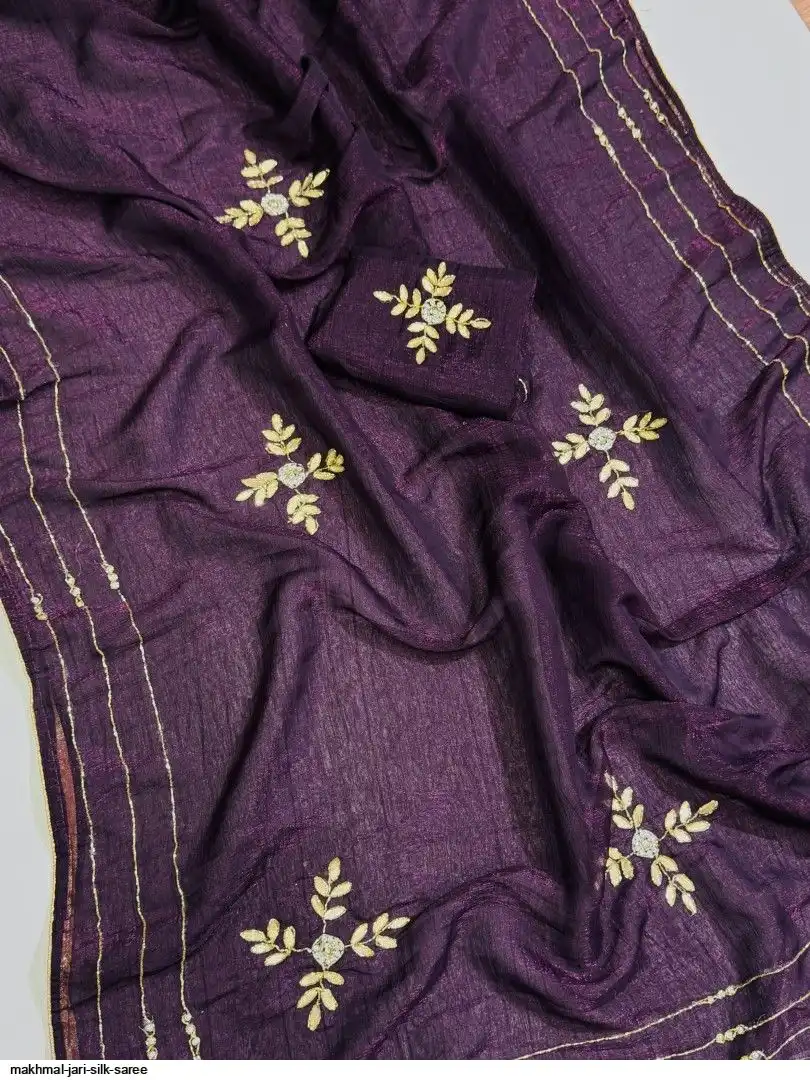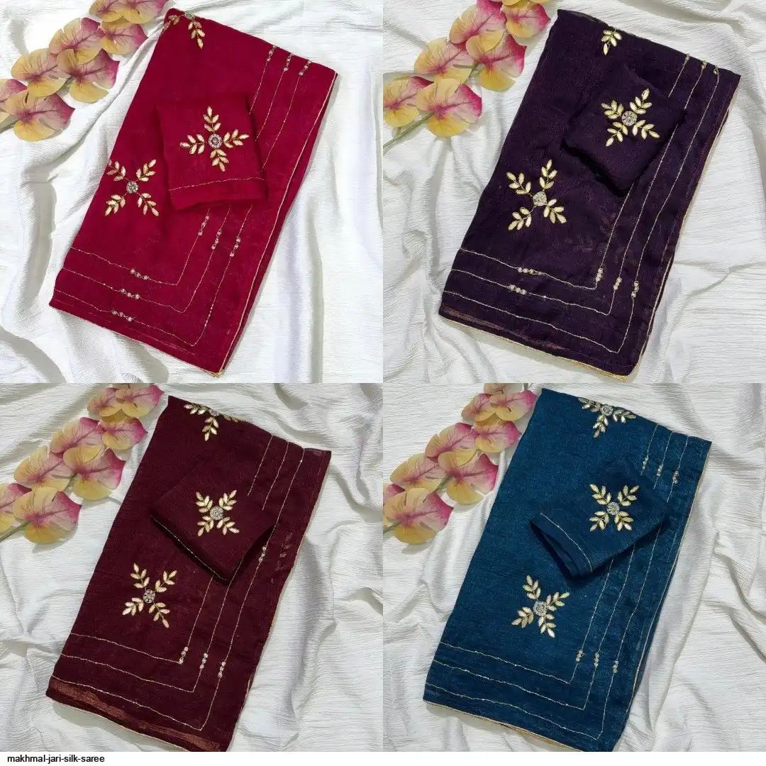 Makhmal jari silk saree with beautiful handwork all over with jari lace and running blouse with handwork