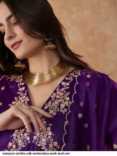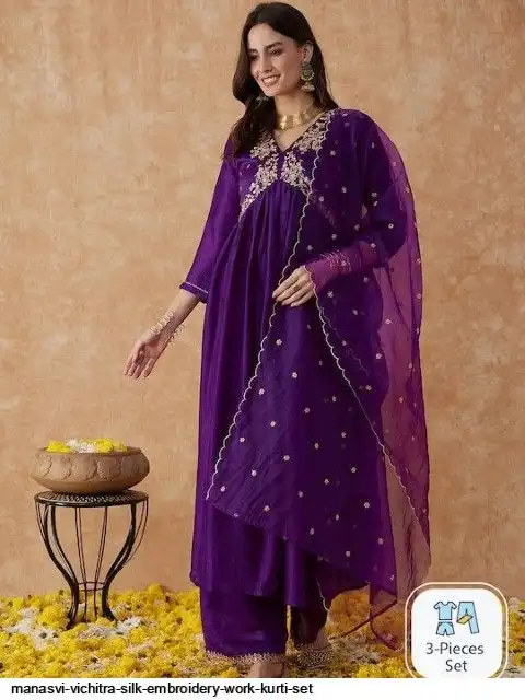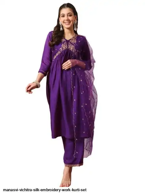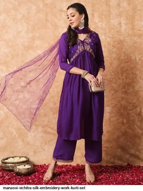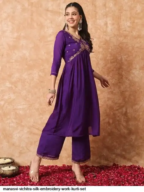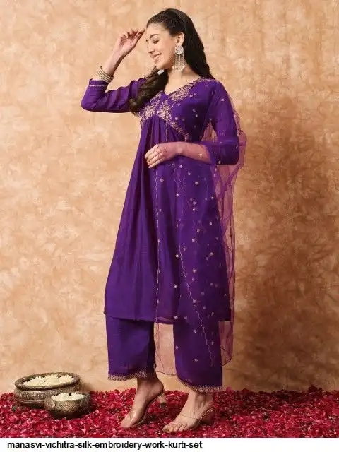 WOMEN EMBROIDEREY VICHITRA SILK KURTA SET
