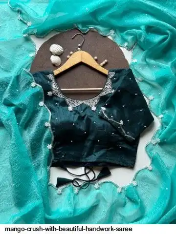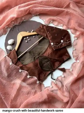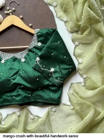 Mango crush saree with beautiful handwork all over saree and unstitch silk blouse with work