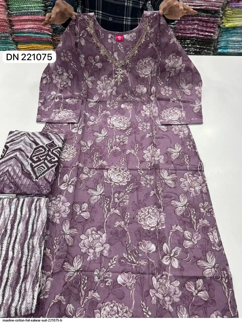 MASLINE COTTON FOIL SALWAR SUIT 221075 B