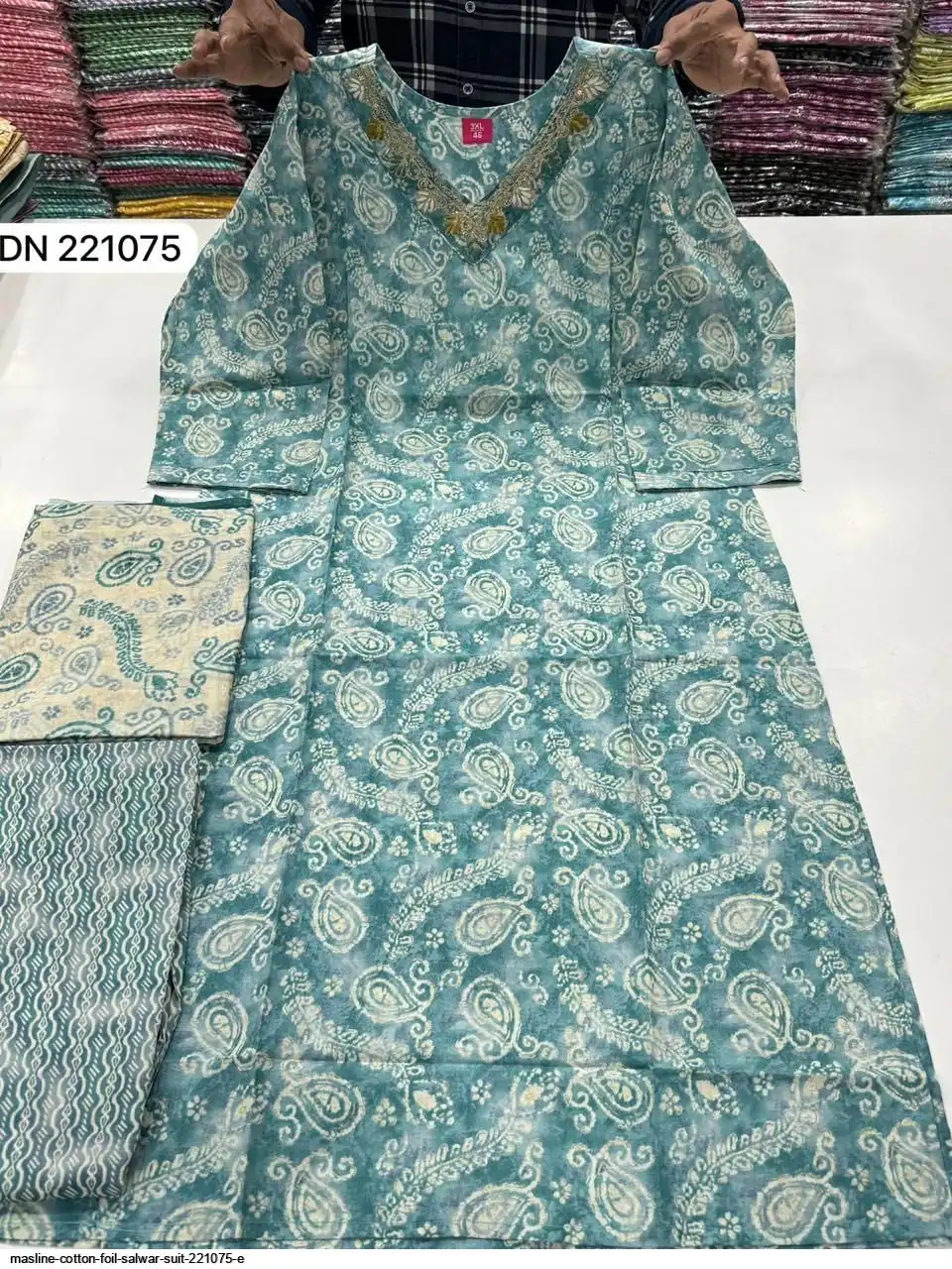 MASLINE COTTON FOIL SALWAR SUIT 221075 E