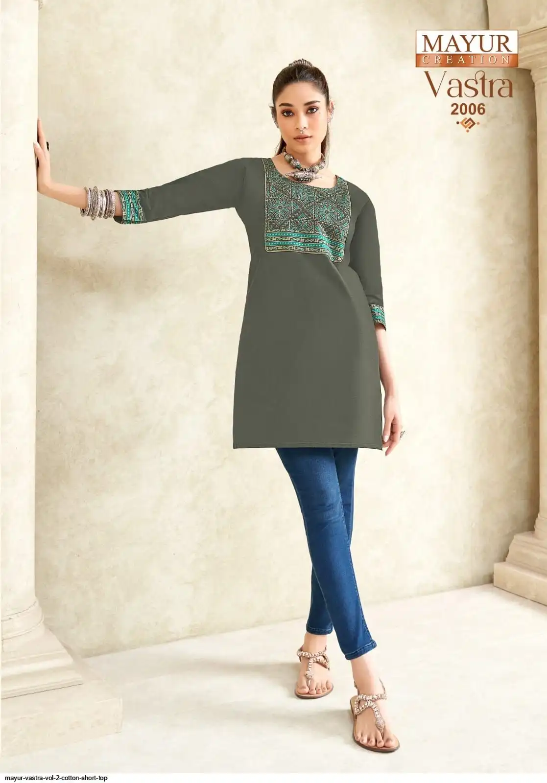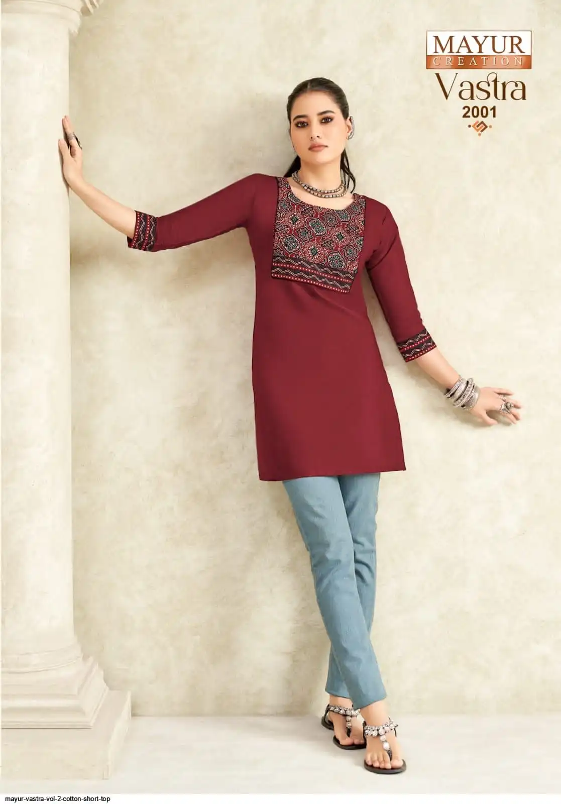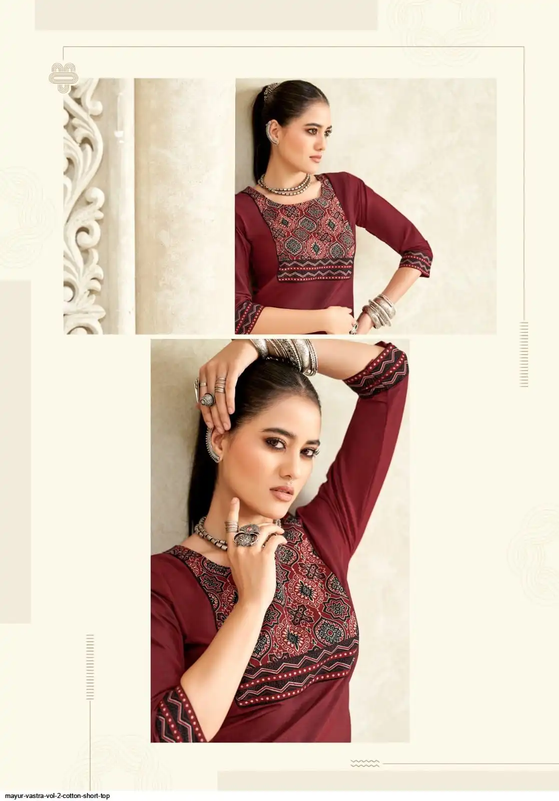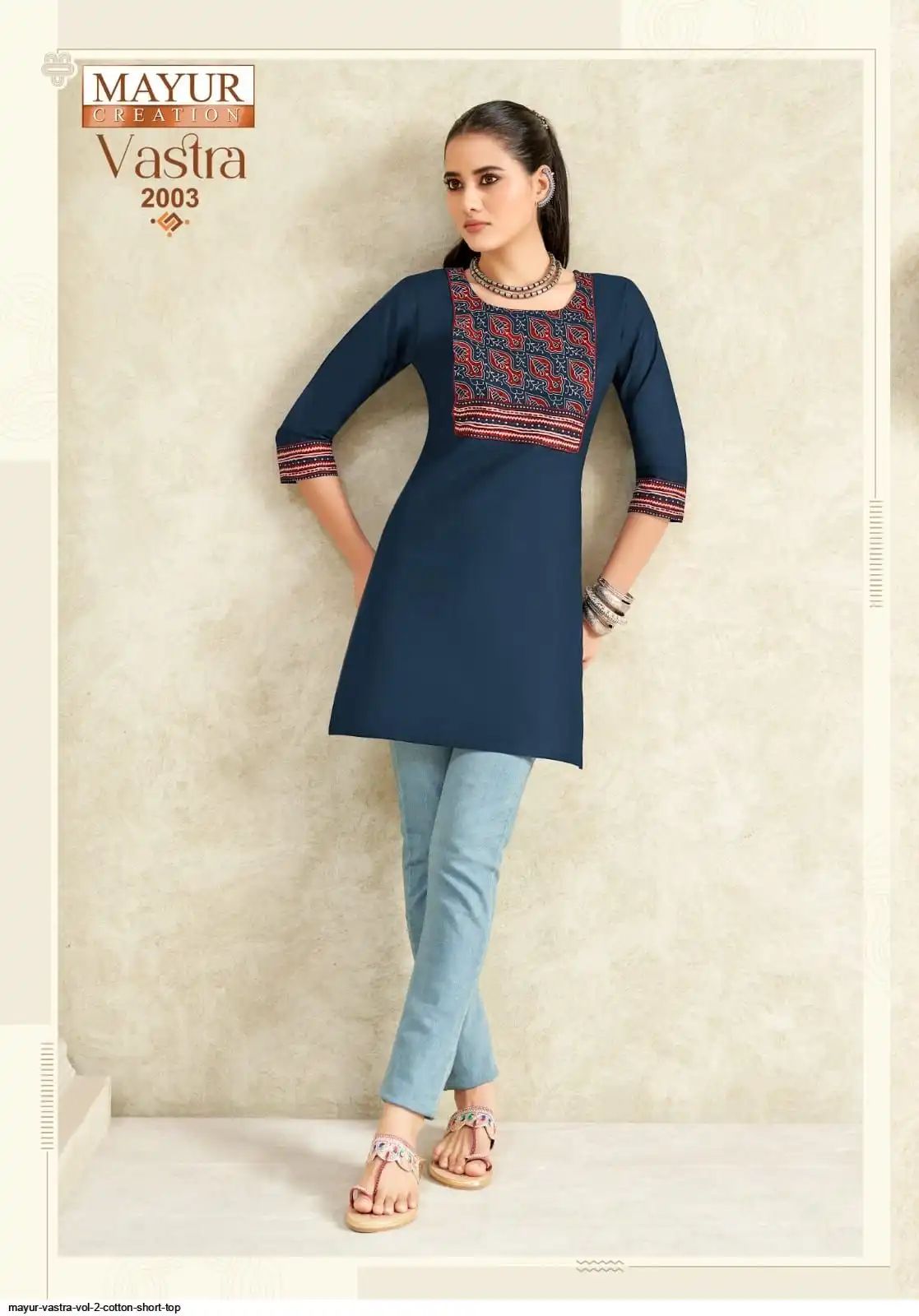 Top:- Pure Poplin Cotton Fabric With Printed Ajrakh Patch