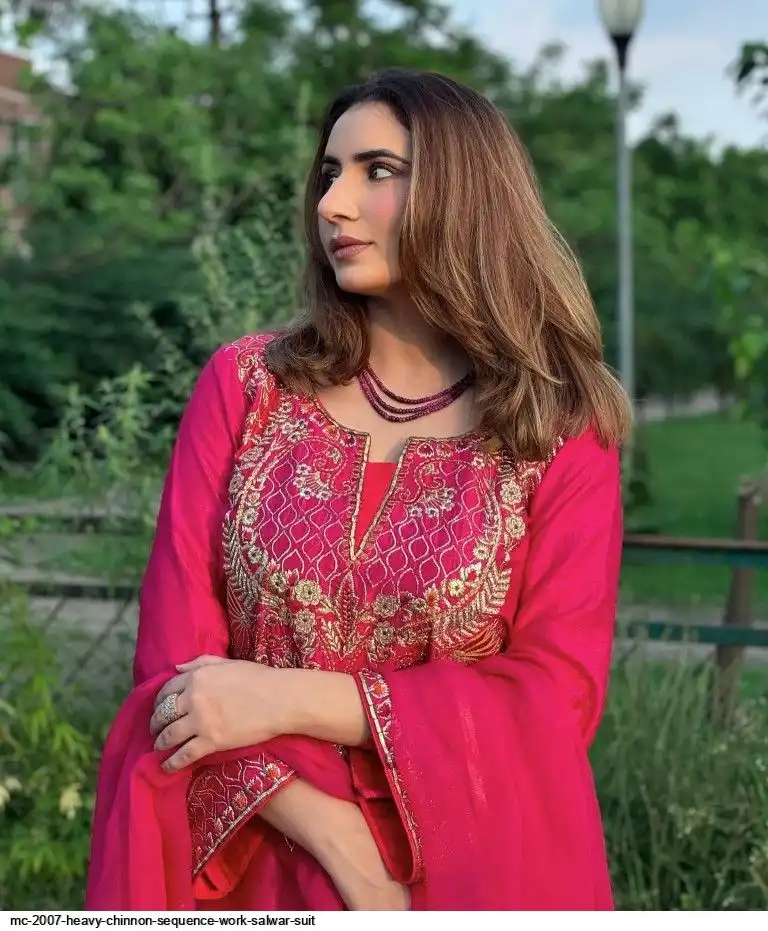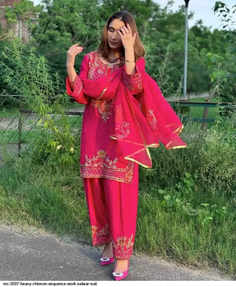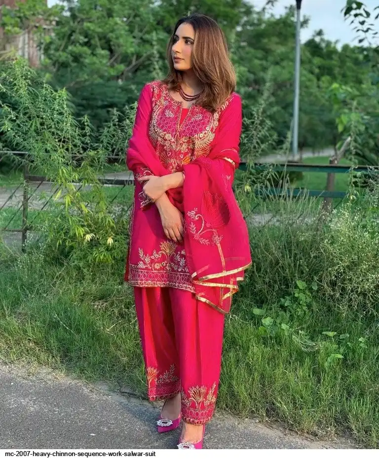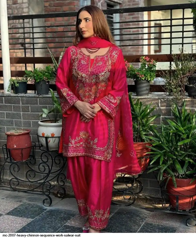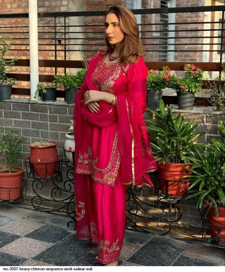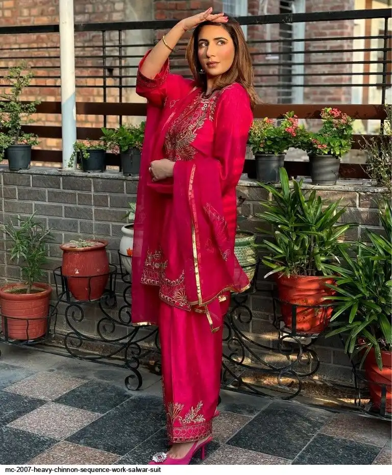 Pant fabric :Pure Heavy Chinnon Silk With Heavy Embroidery Sequence Work. (FullyStitched)