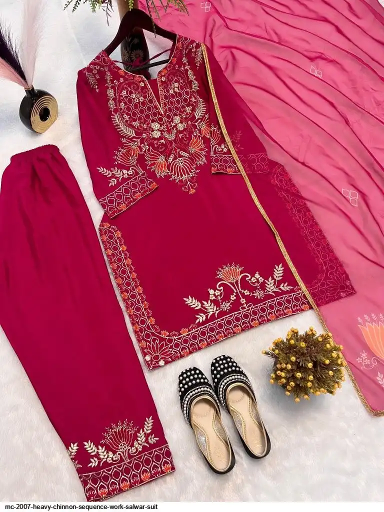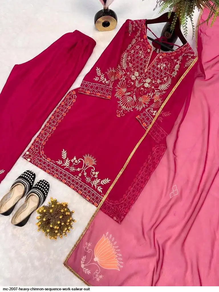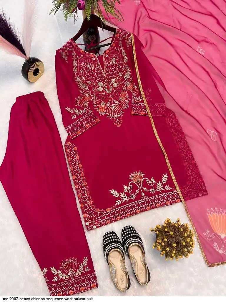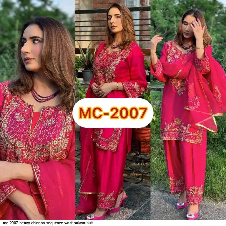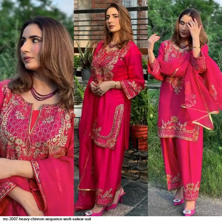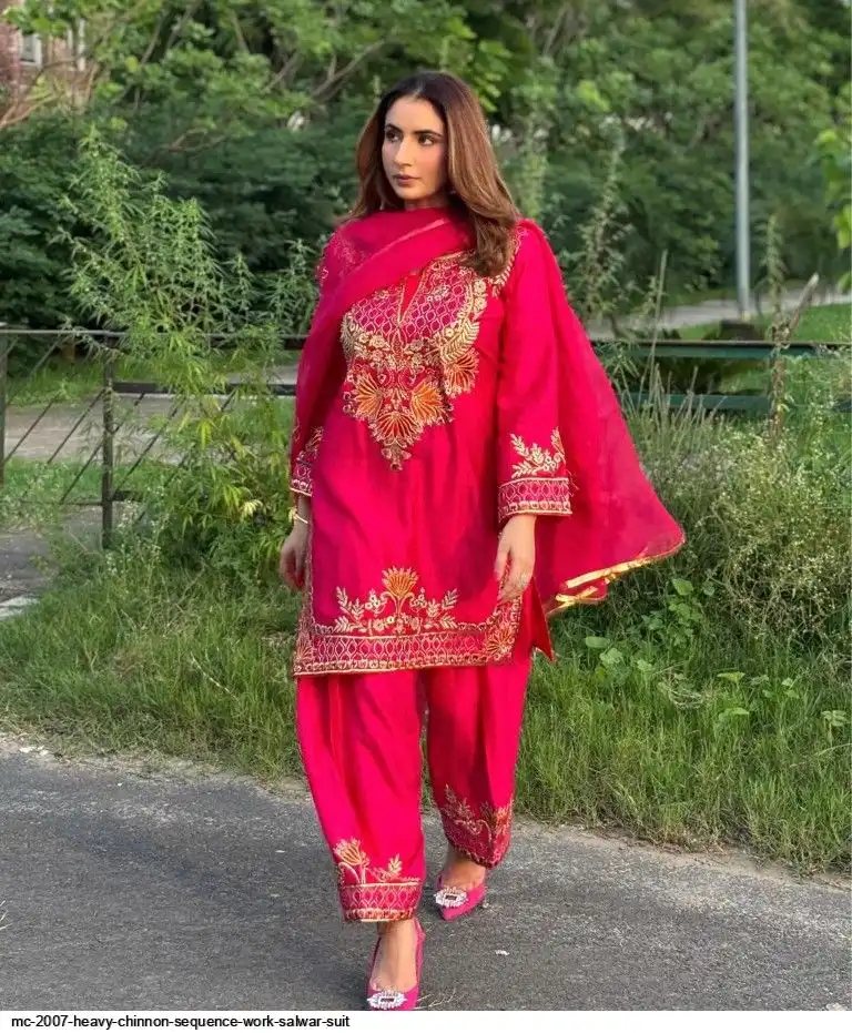 Pant fabric :Pure Heavy Chinnon Silk With Heavy Embroidery Sequence Work. (FullyStitched)