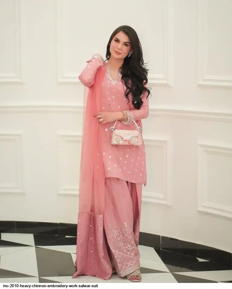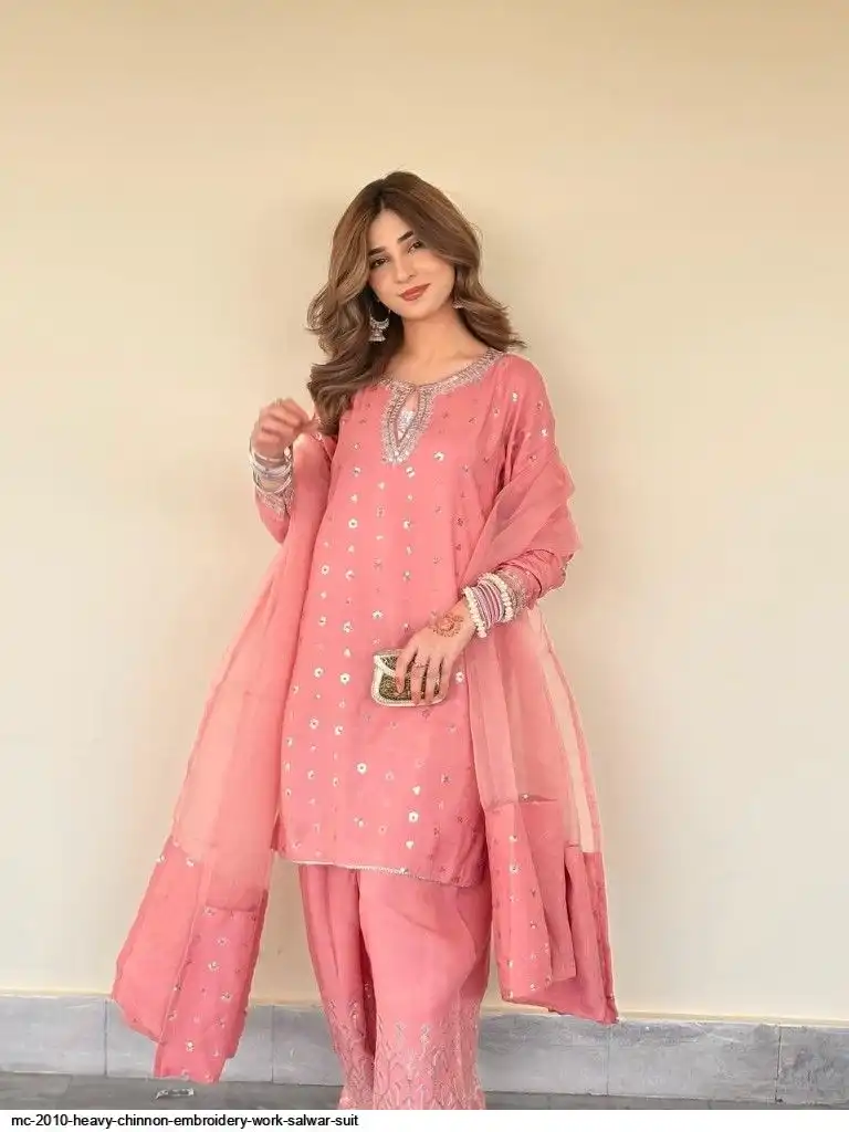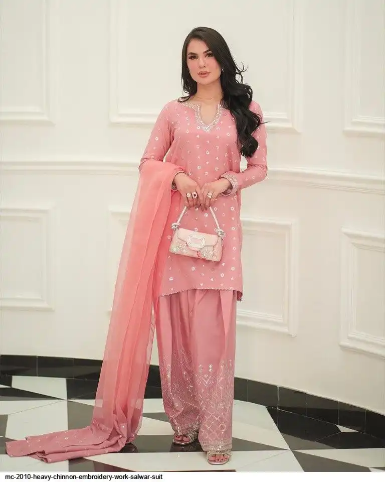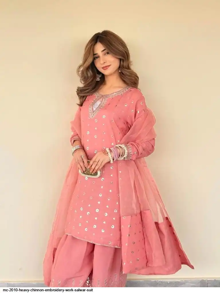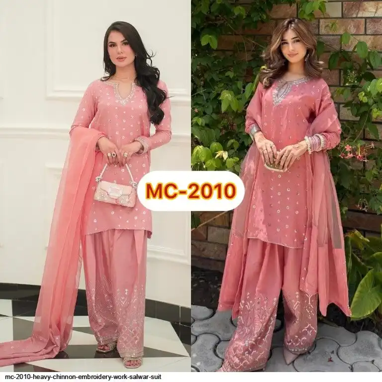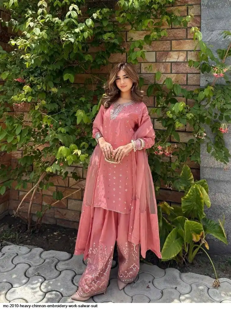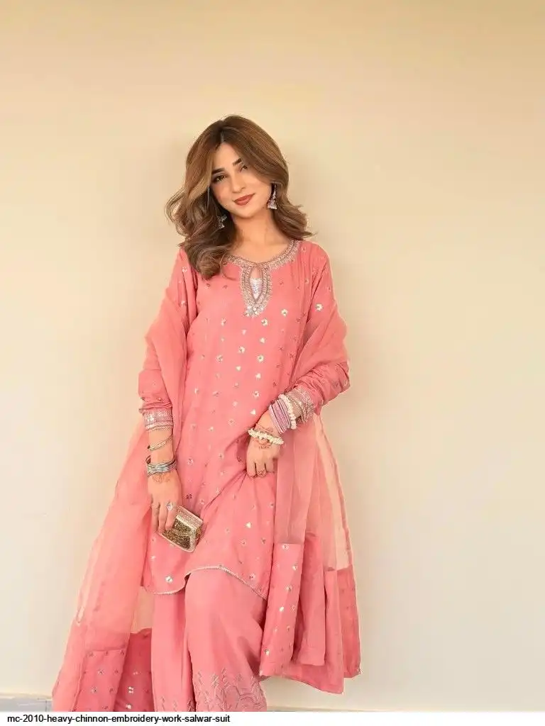 Farshi salwar Fabric: Heavy Heavy Chinnon Silk and Multi Needle Work, Sequence 5mm Work, Embroidery Work, Zari Work.