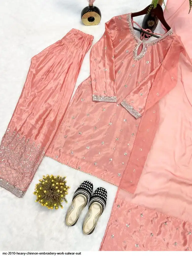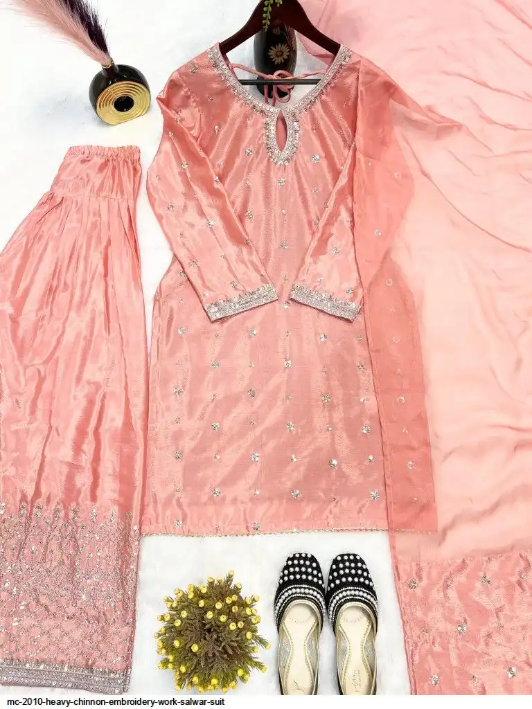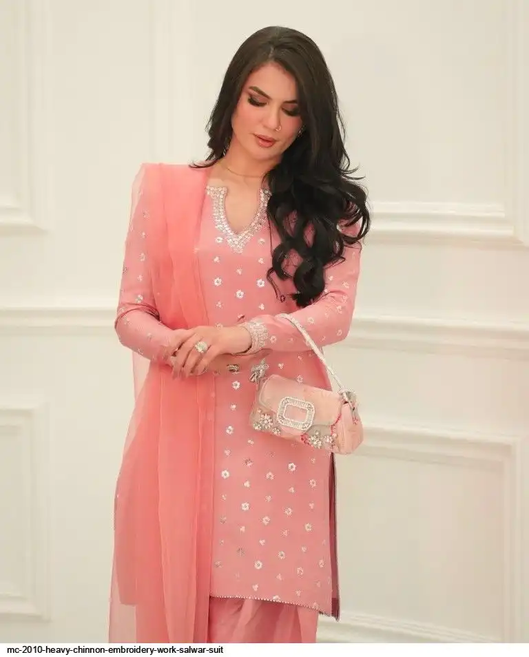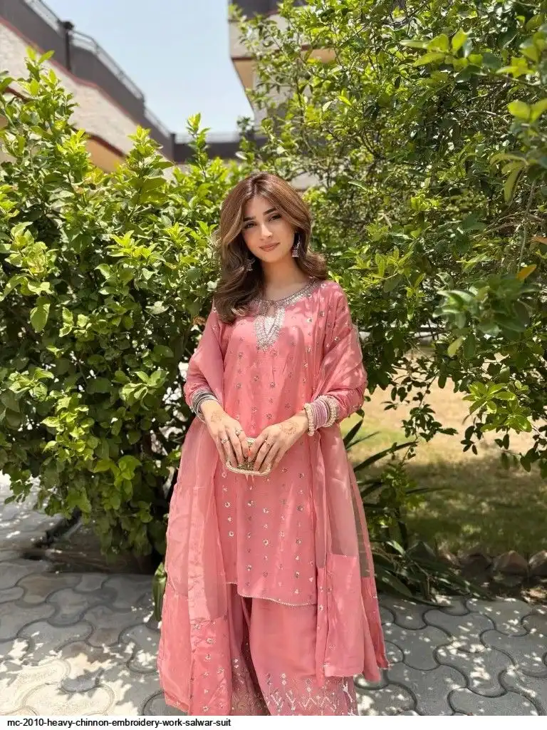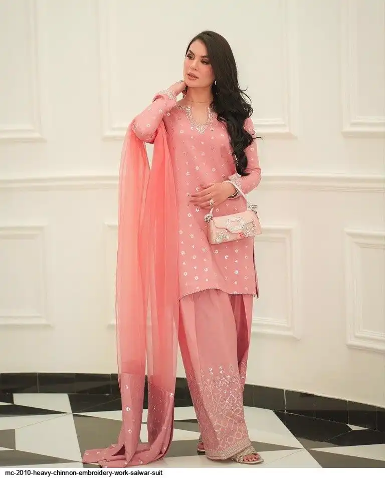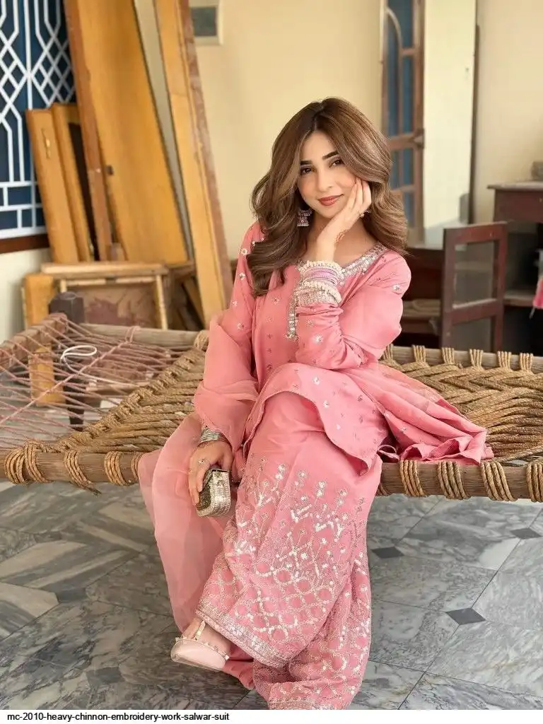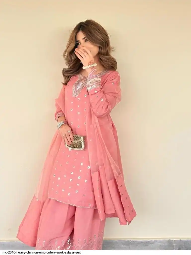 Farshi salwar Fabric: Heavy Heavy Chinnon Silk and Multi Needle Work, Sequence 5mm Work, Embroidery Work, Zari Work.