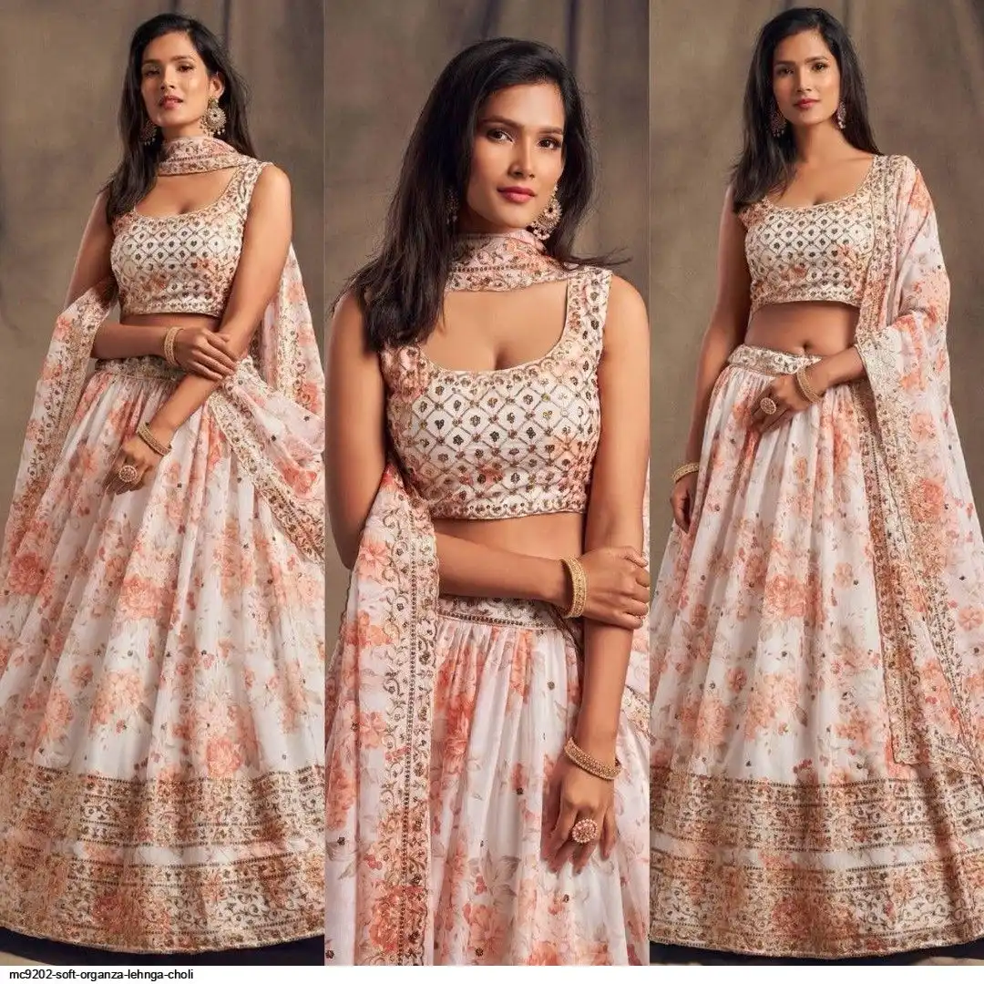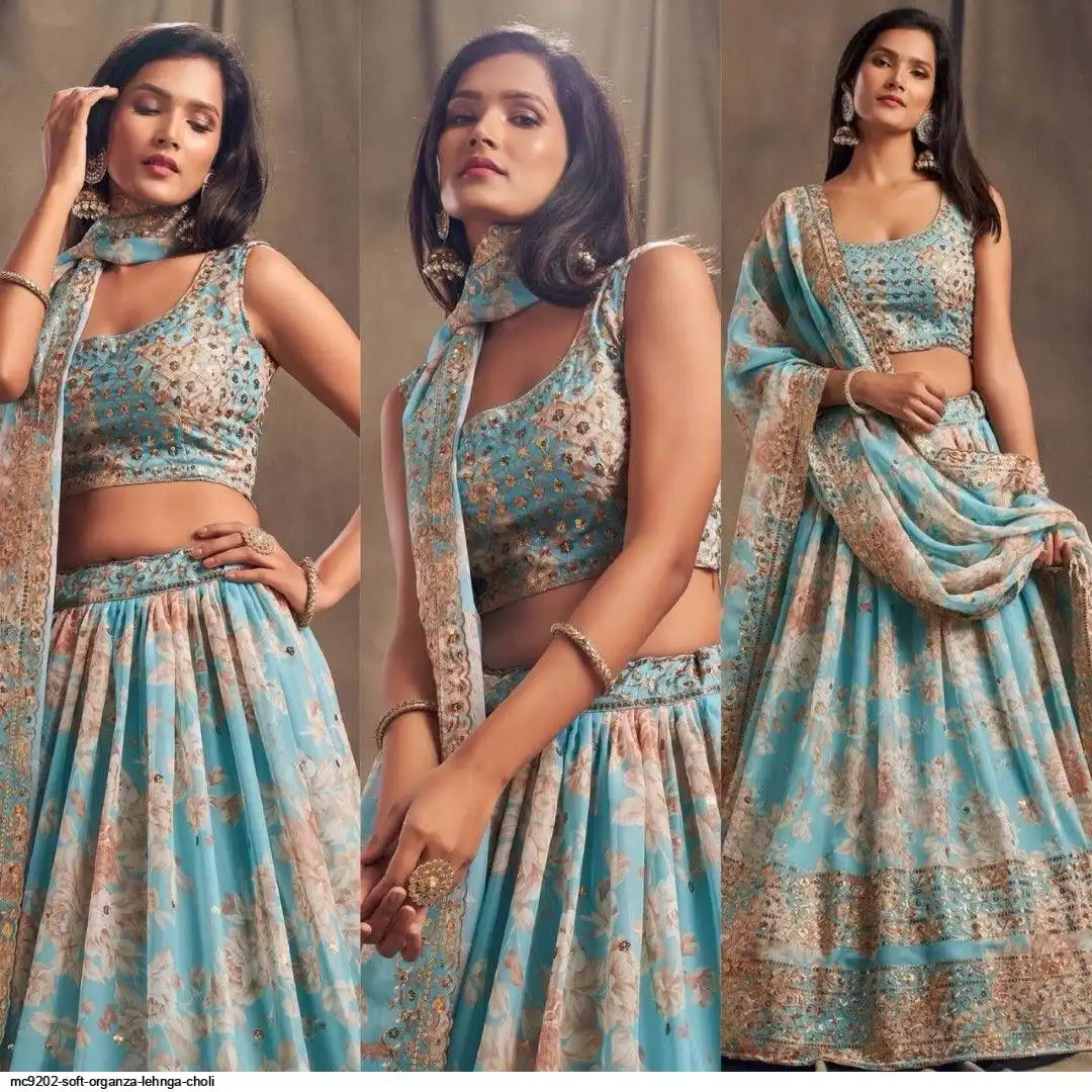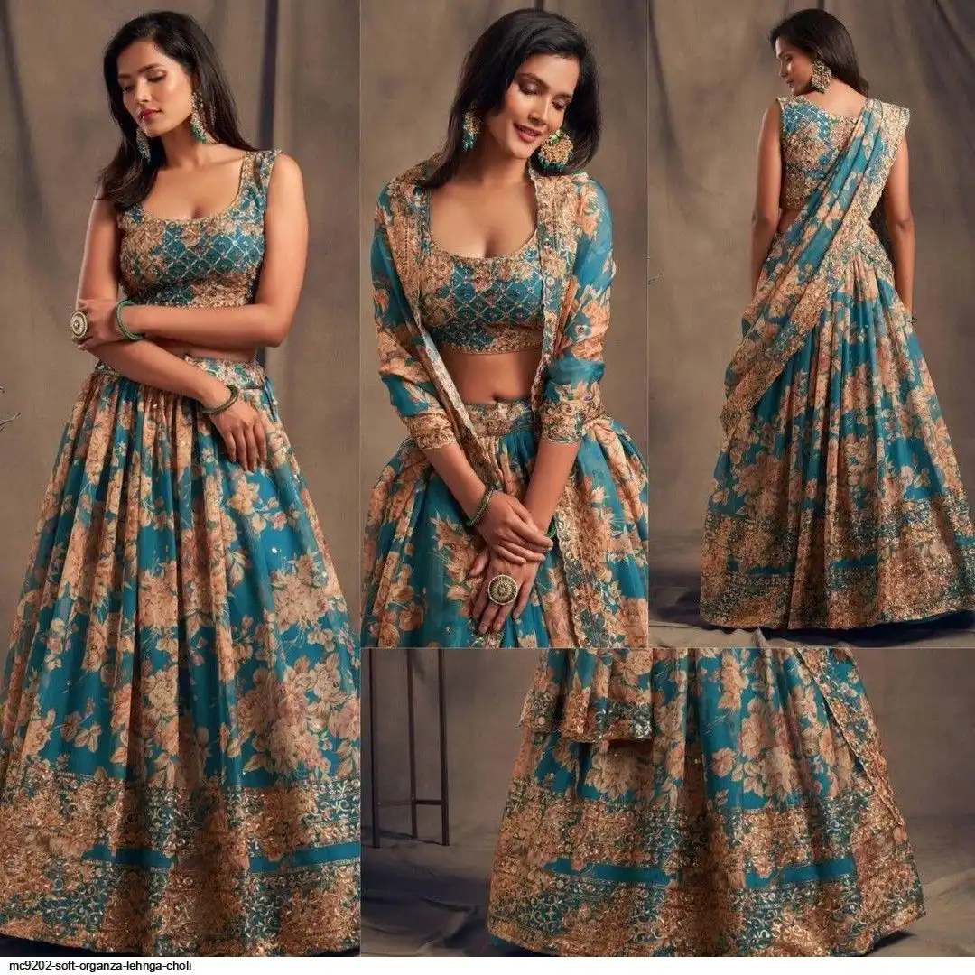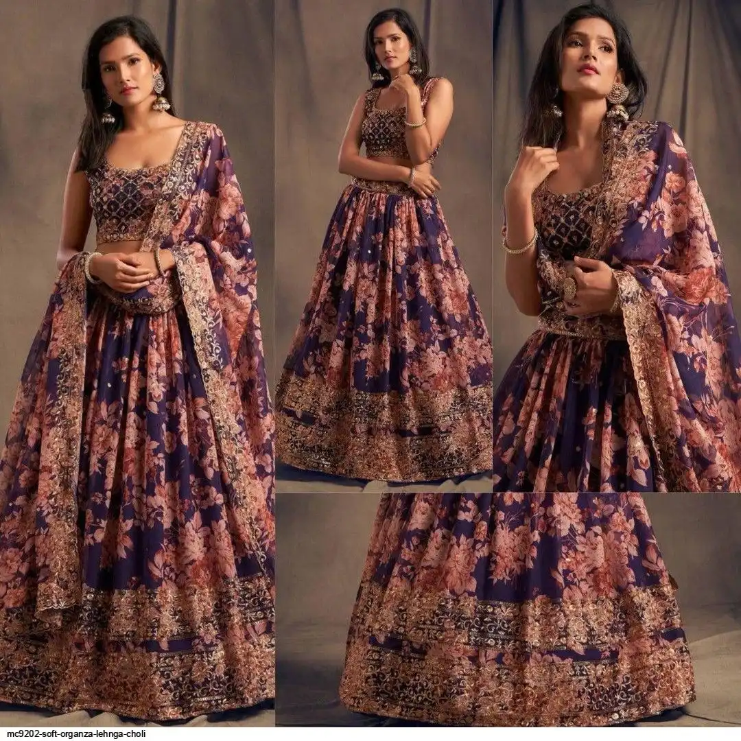 LEHNGA:SOFT ORGENZA WITH DIGITAL PRINT WITH EMBROIDERY JARI SEQUENCE DESIGNE WORK