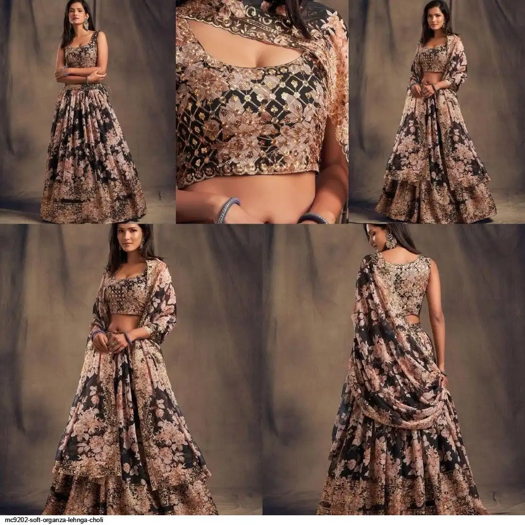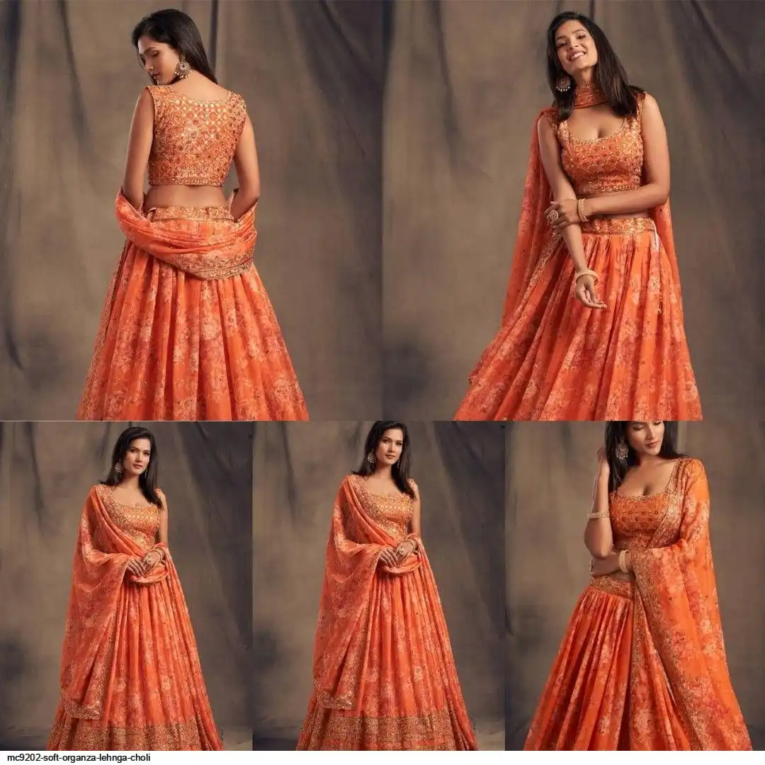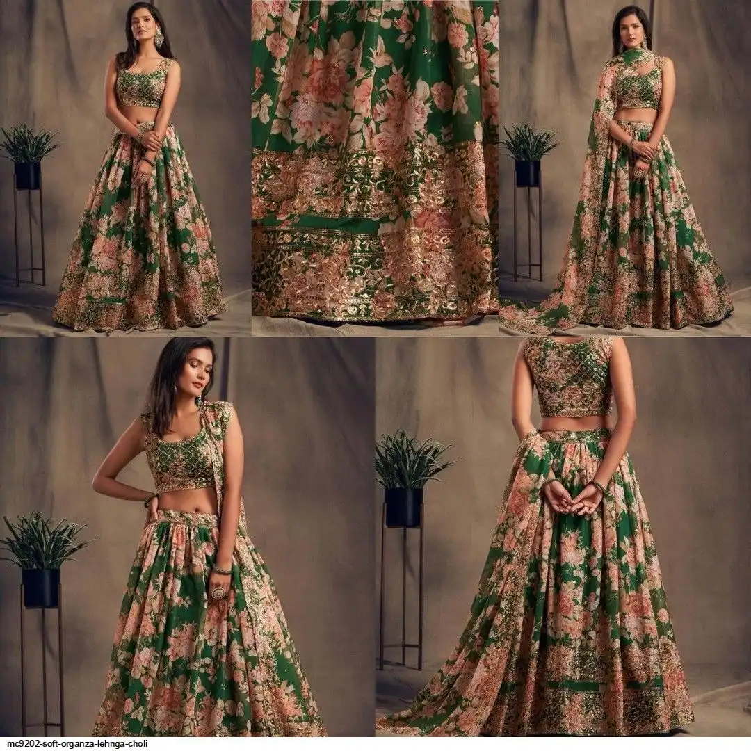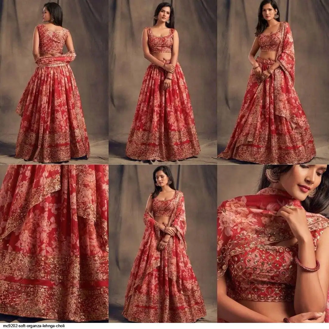 LEHNGA:SOFT ORGENZA WITH DIGITAL PRINT WITH EMBROIDERY JARI SEQUENCE DESIGNE WORK