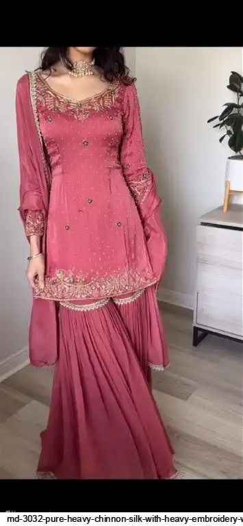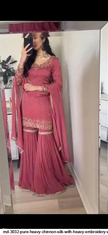 Top Fabric :- Pure Heavy Chinnon Silk With Heavy Embroidery Work With Moti Handwork Fancy Borders Less Work Sleeve With Fancy Latkan Dori.