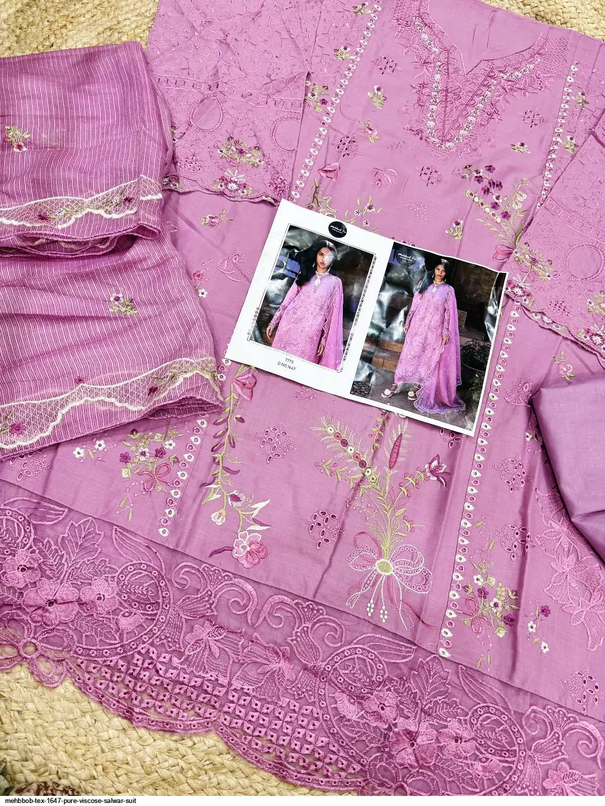 Top - Pure visocse lawn with heavy self embroidery attached with laces