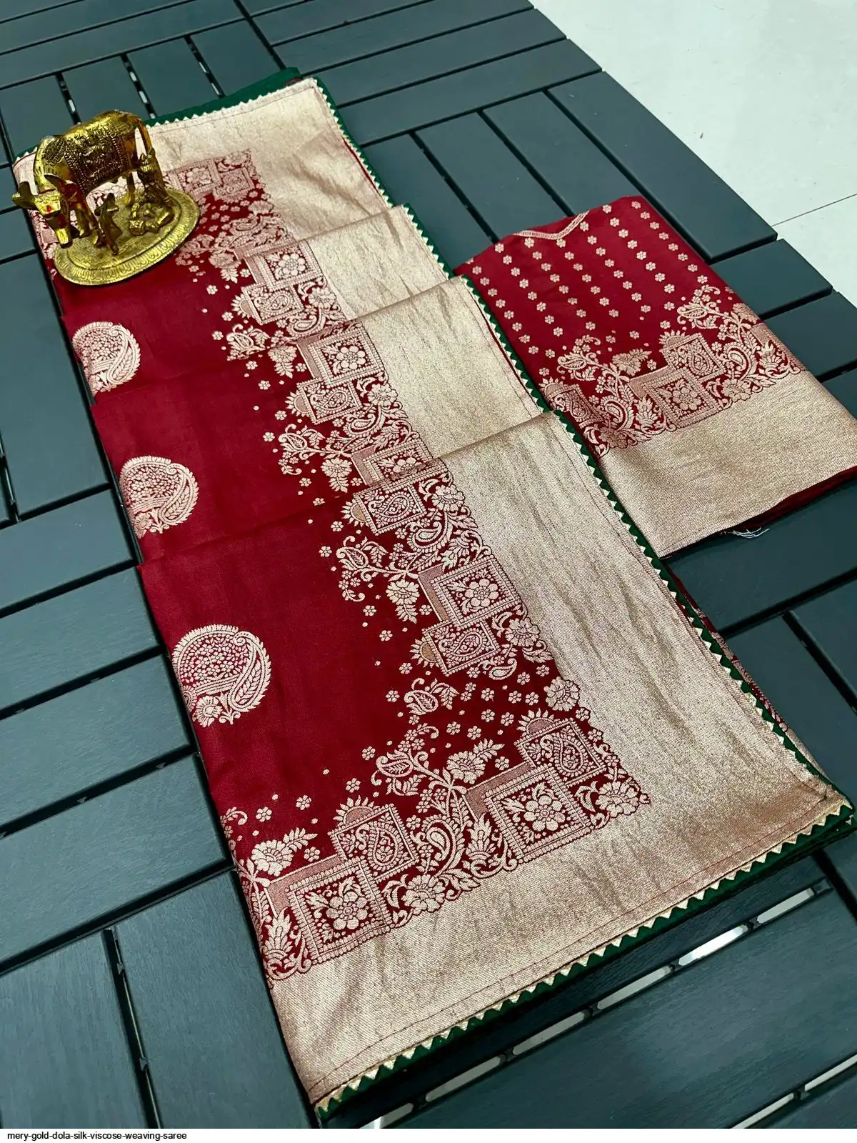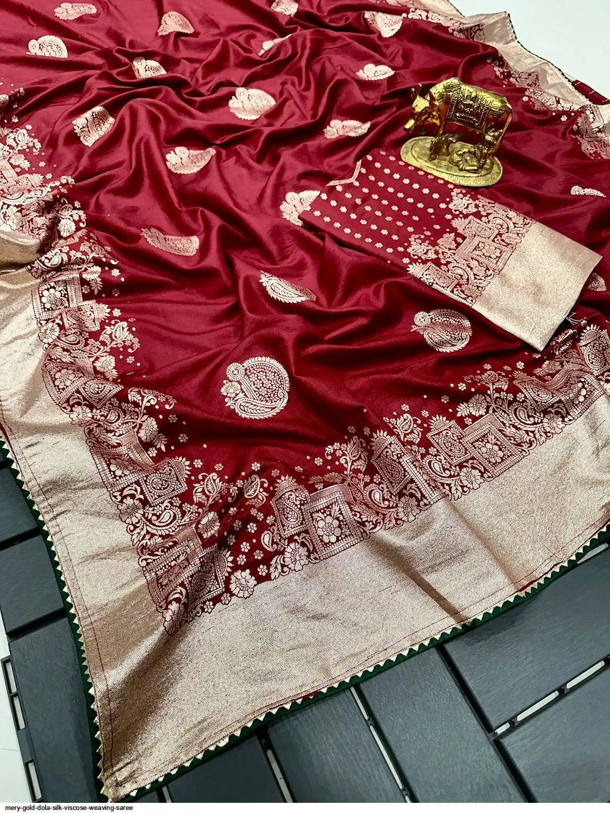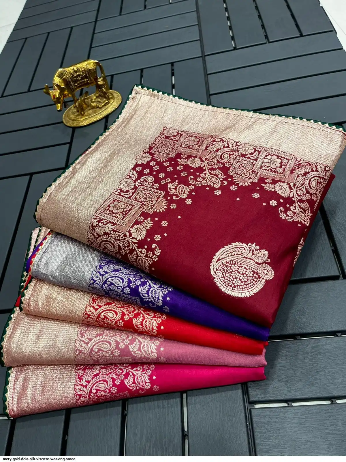 SAREE :~ Luxury Pure Dola Silk Viscose Weaving Beautiful Viscose Zari Weaving in Soft Saree