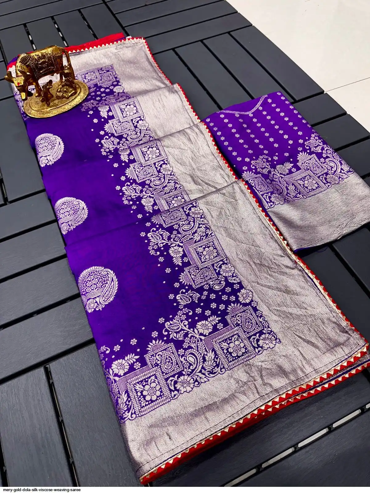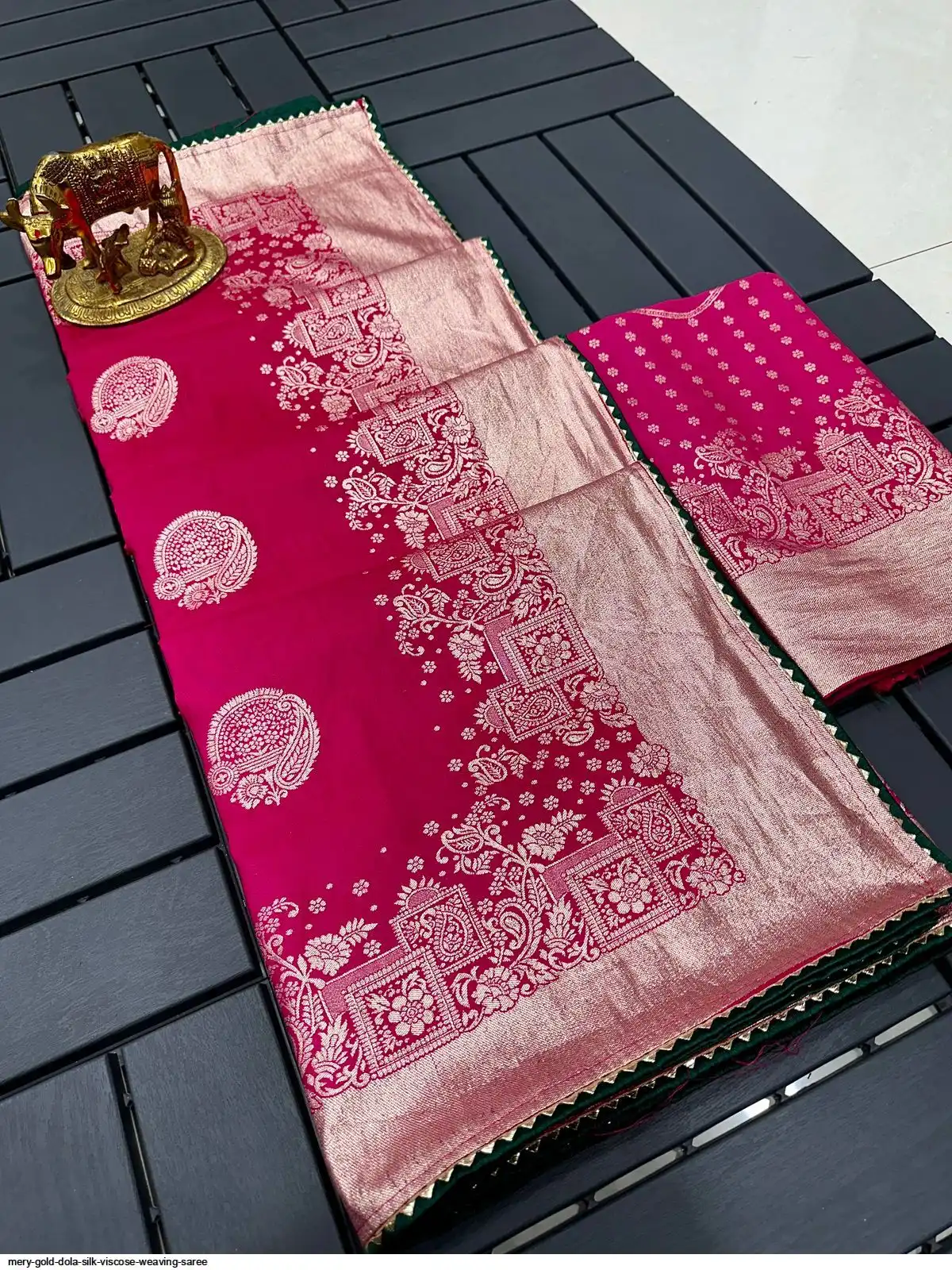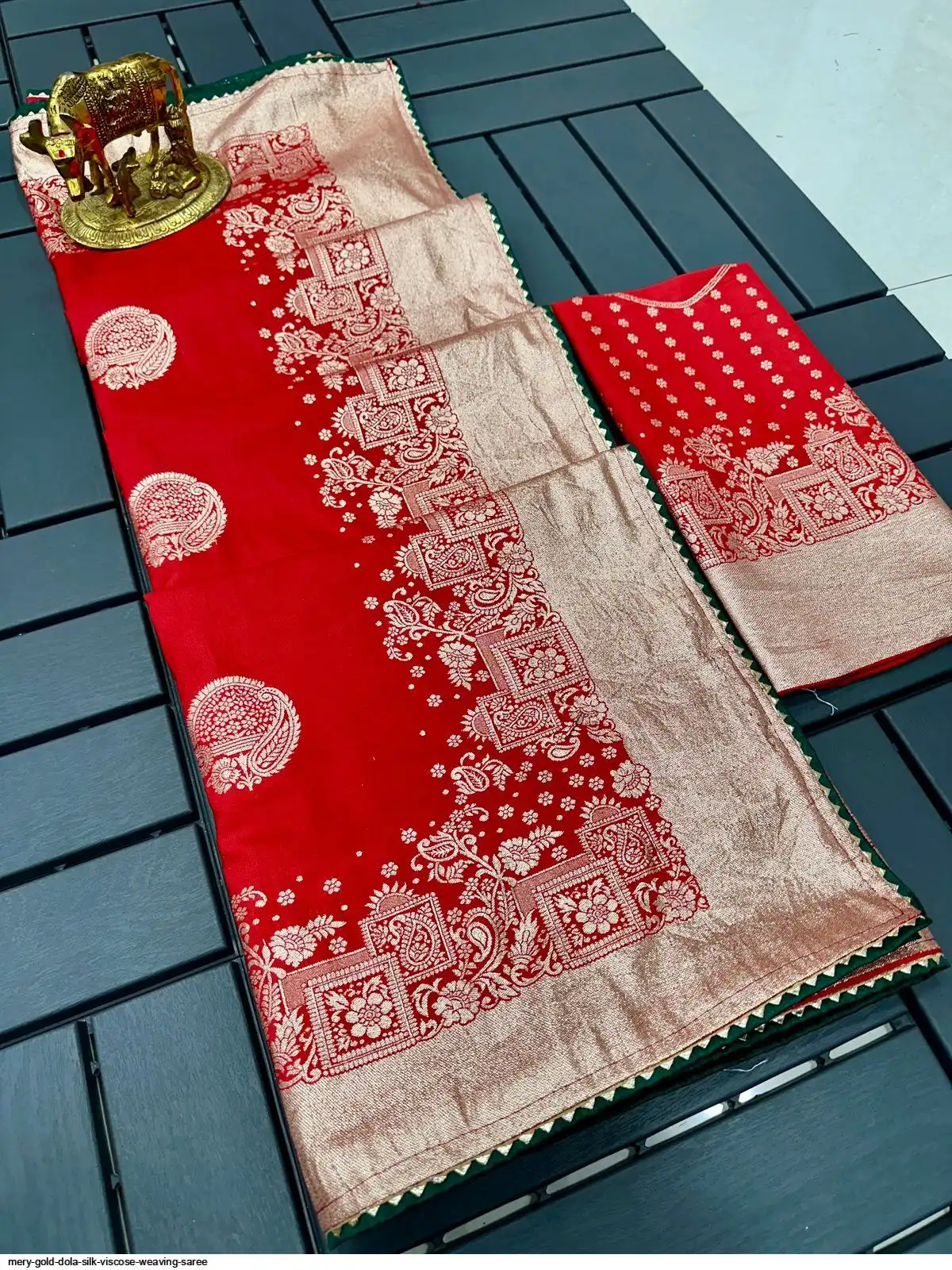 SAREE :~ Luxury Pure Dola Silk Viscose Weaving Beautiful Viscose Zari Weaving in Soft Saree