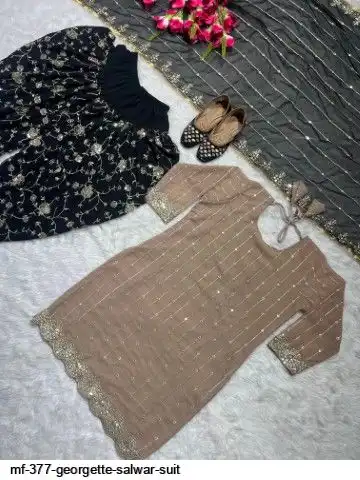 Top Fabric :Faux Georgette With Heavy Embroidery 5mm Sequence Work With Sleeve