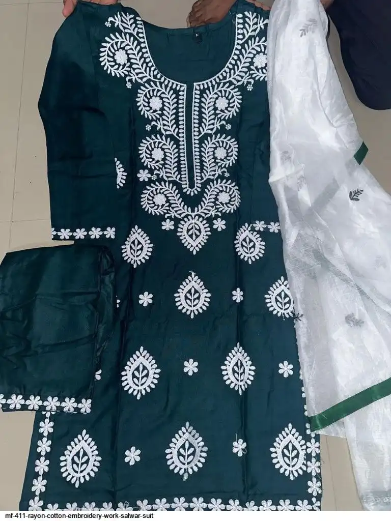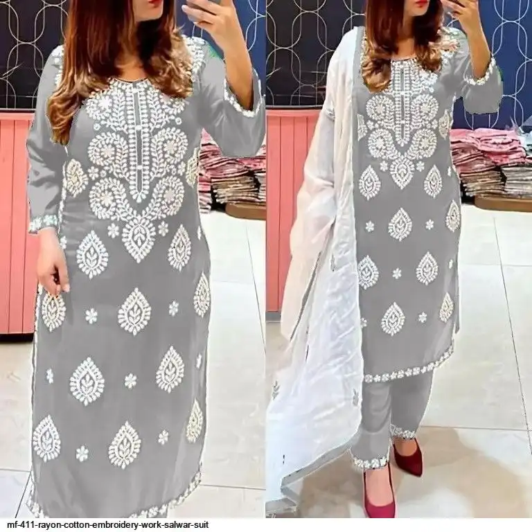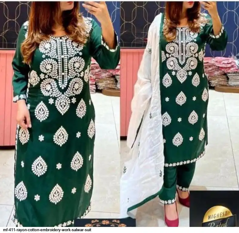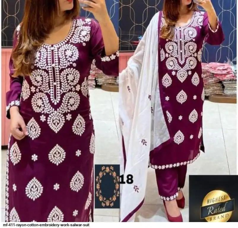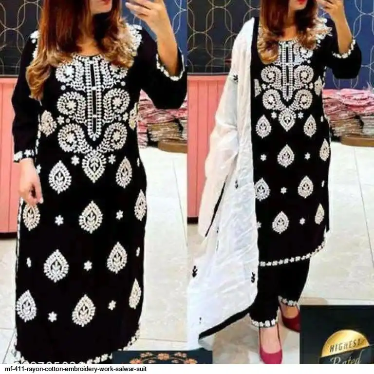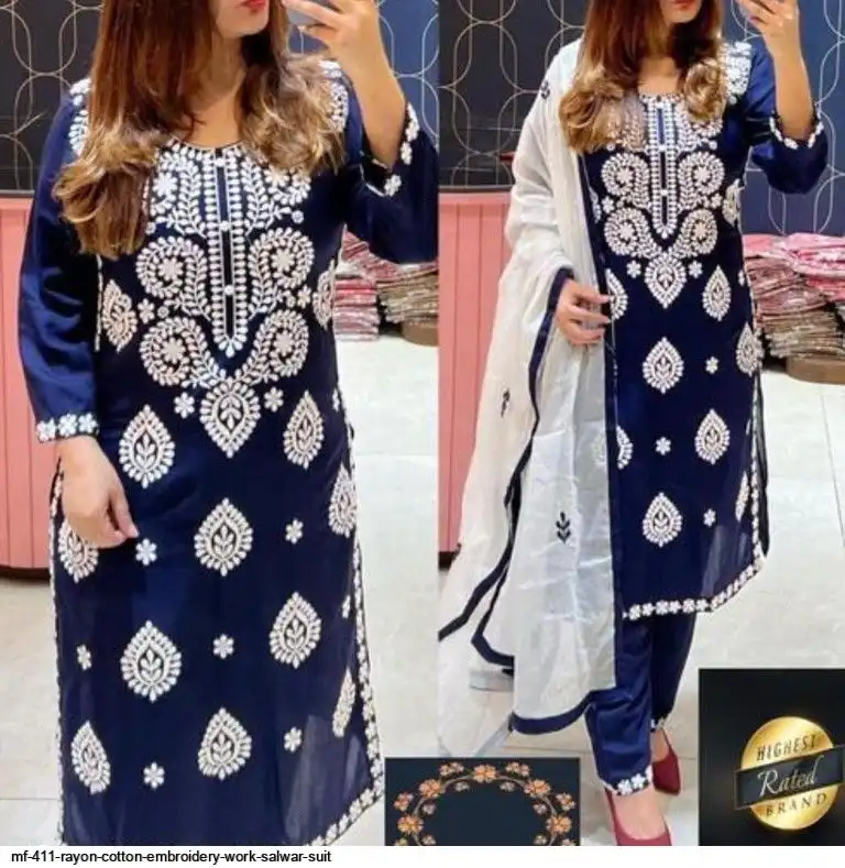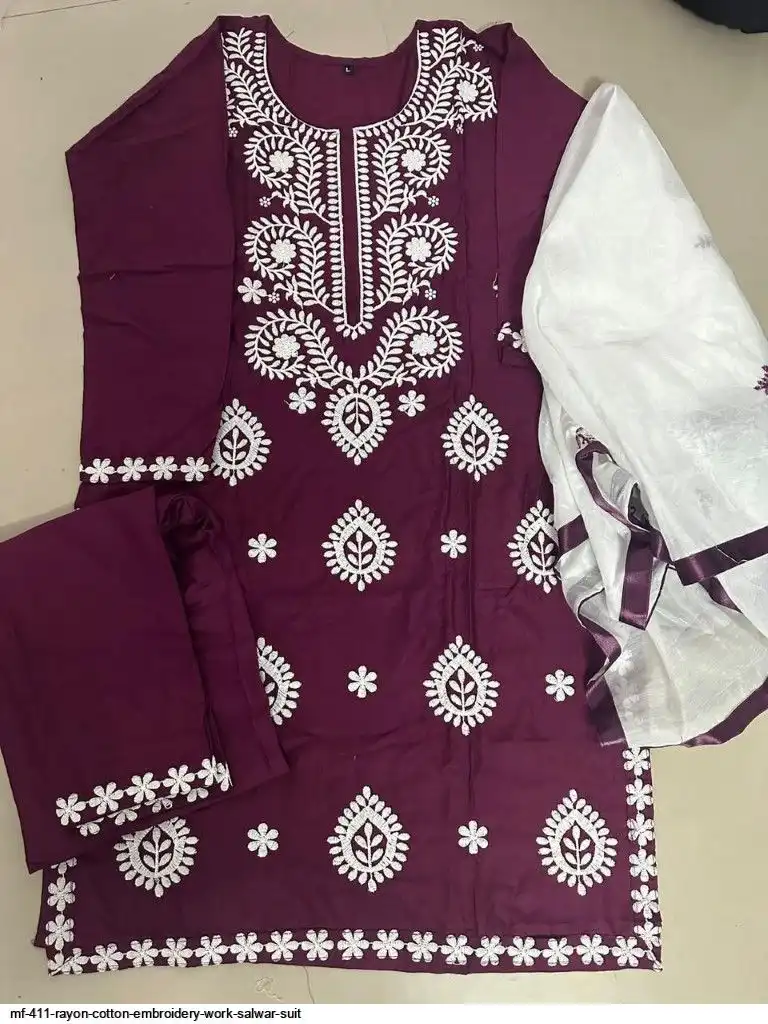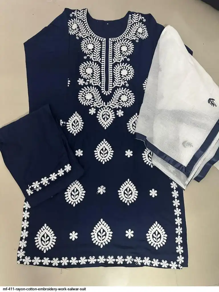 KURTI HEAVY RAYON COTTON FABRIC WID CHICKEN KARI STYLE EMBROIDERY WORK