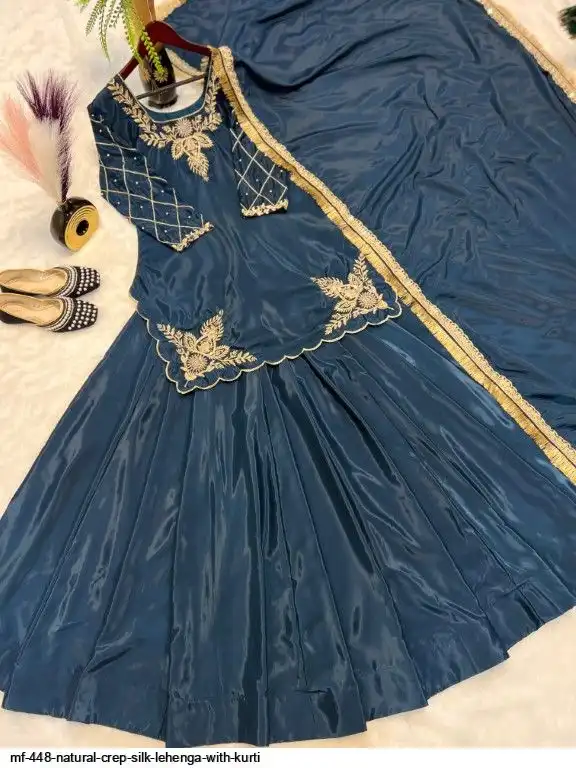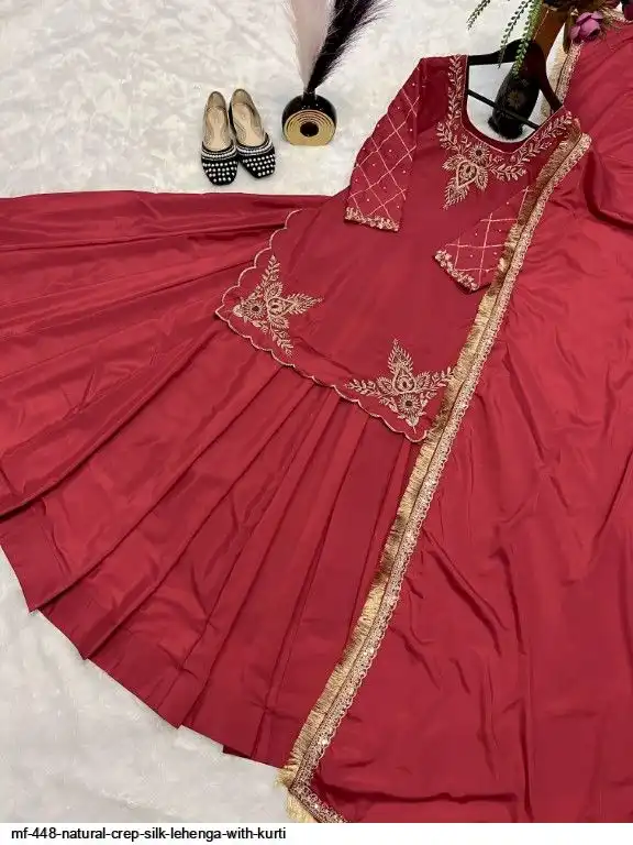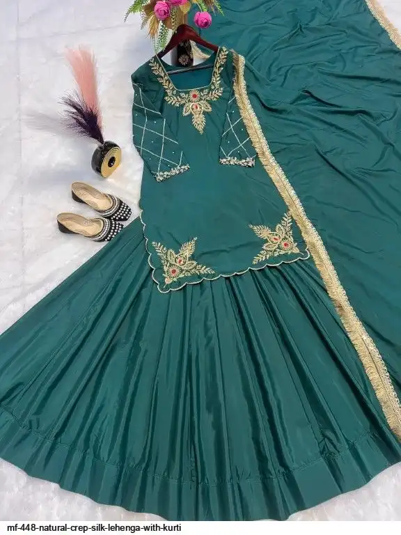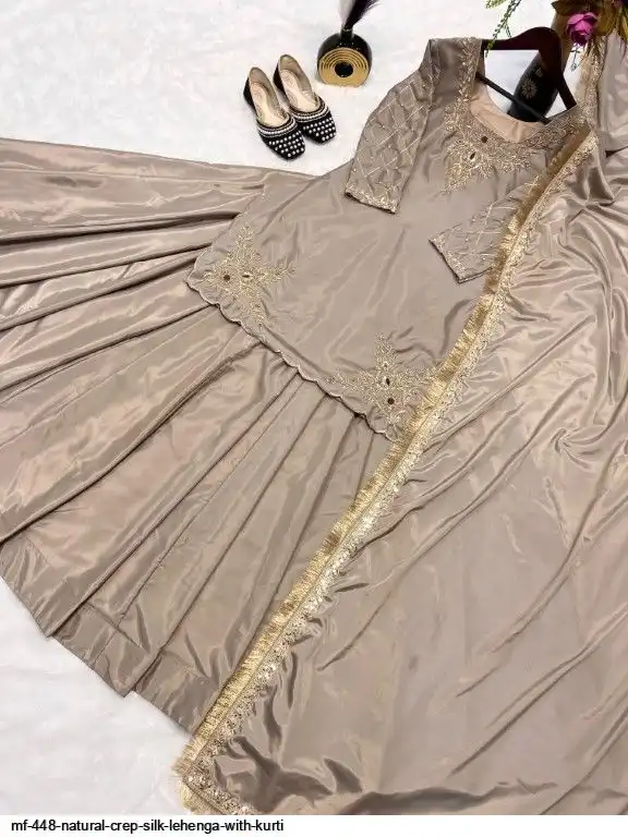 Dupatta Fabric :- Natural Crep Silk With 5mm Sequence Fancy Less Border Work (dupatta size 2.30 meter)