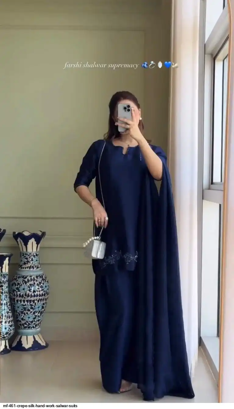 Farshi salwar Fabric:Heavy Heavy Natural Crep Silk.