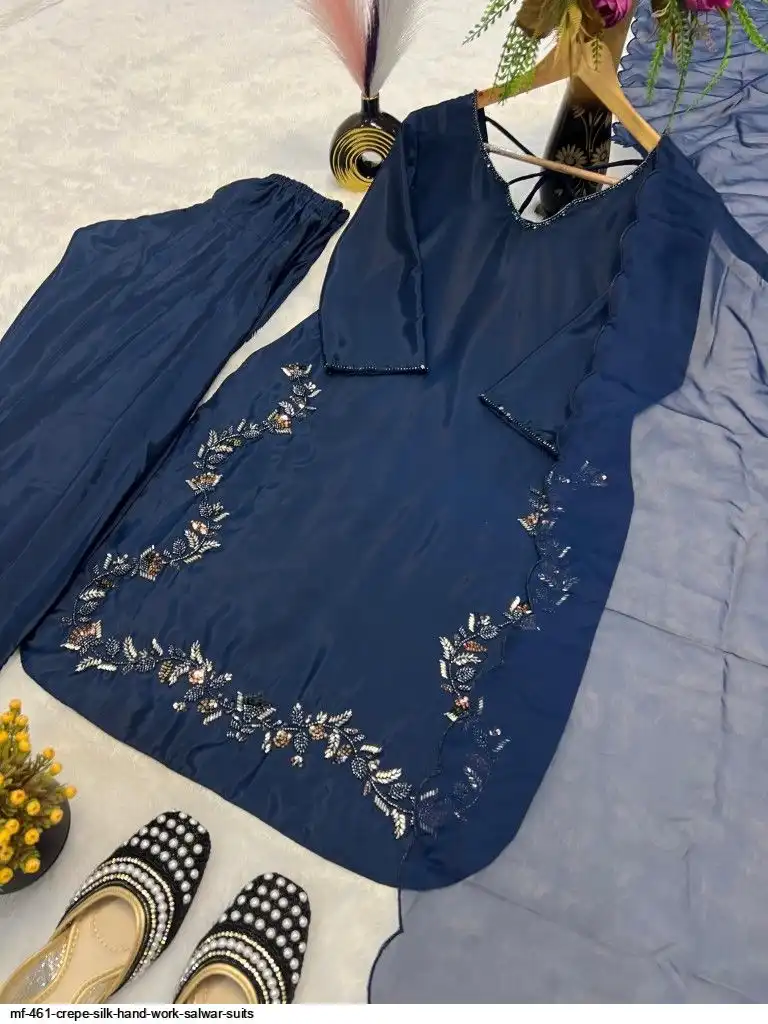 Top Fabric :Heavy Natural Crep Silk With Bids Hand Work Full Hand Work With Sleeve.