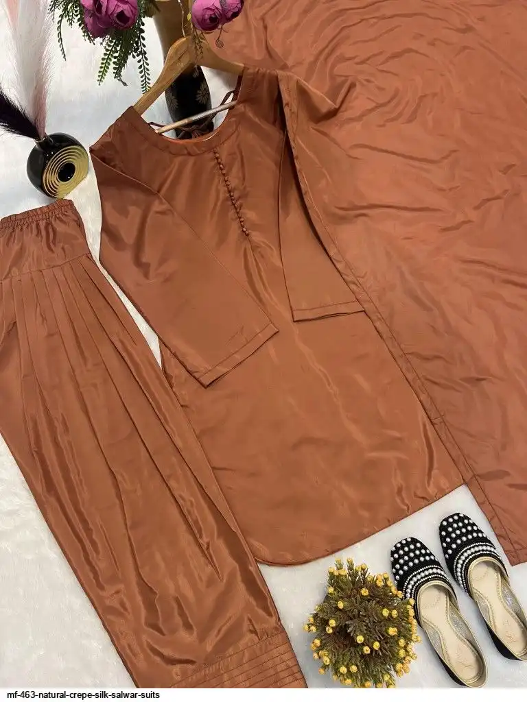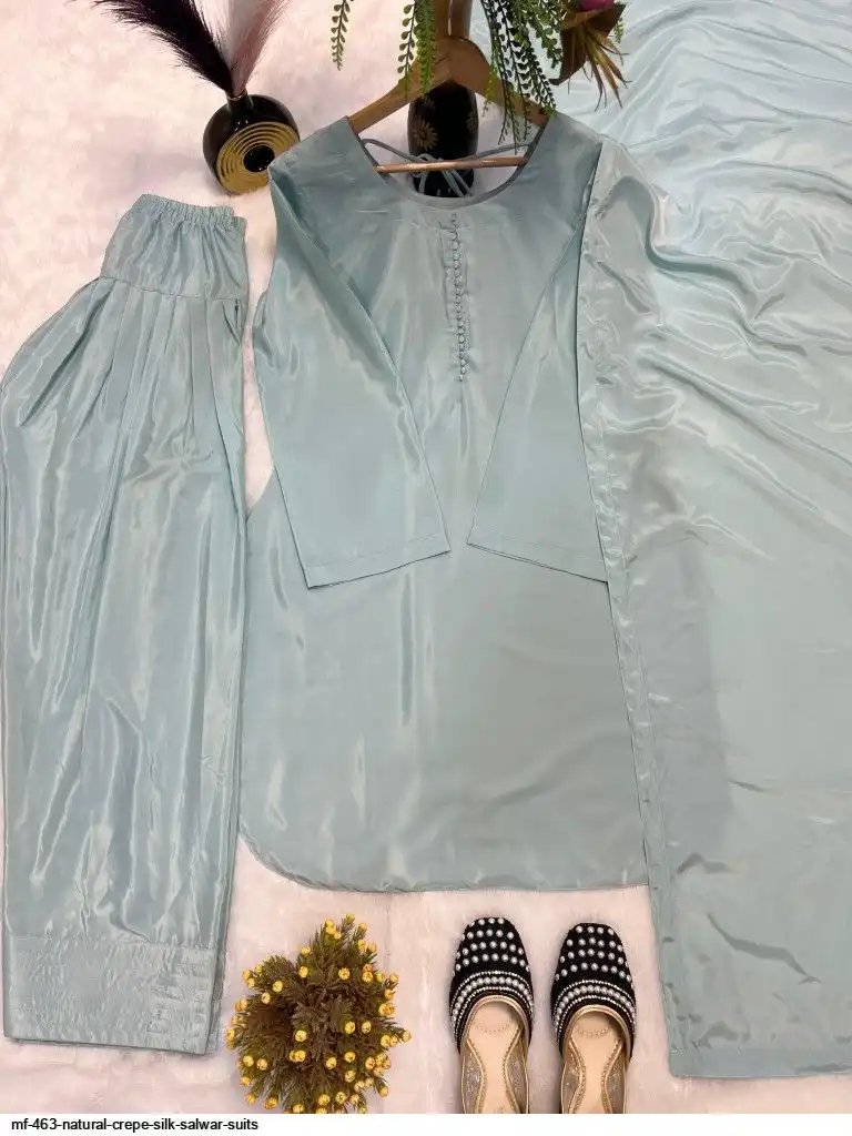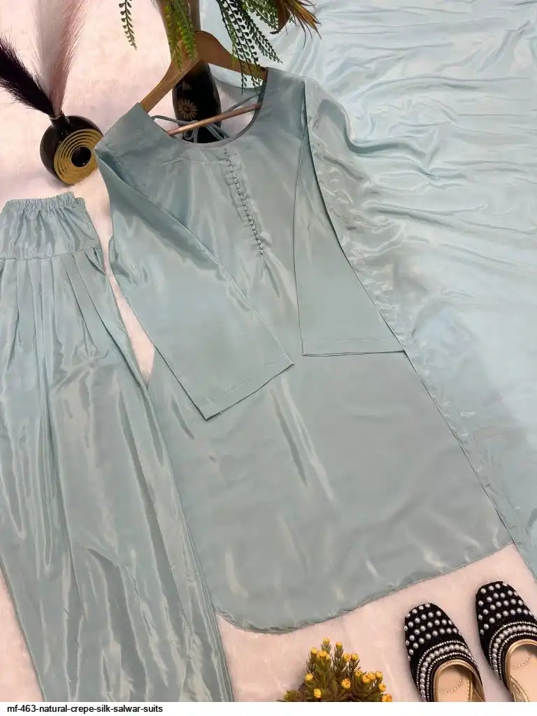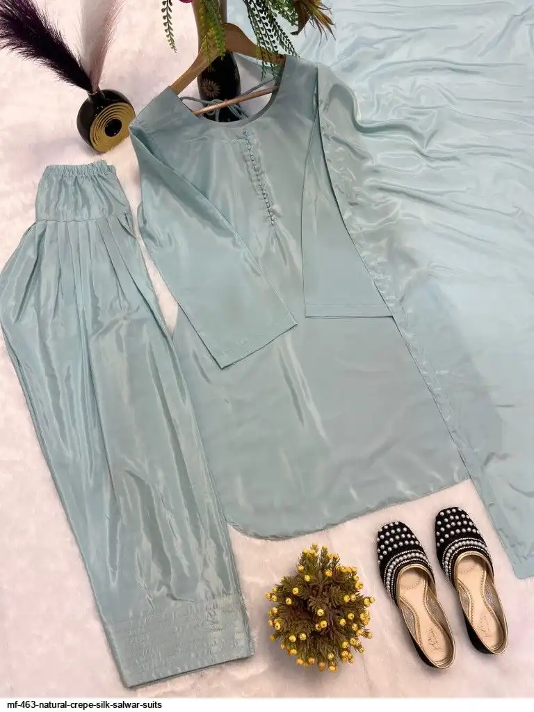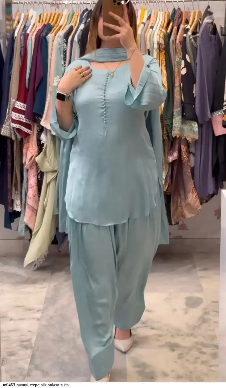 Top Fabric :Heavy Natural Crep Silk Fancy button With Full Sleeve.