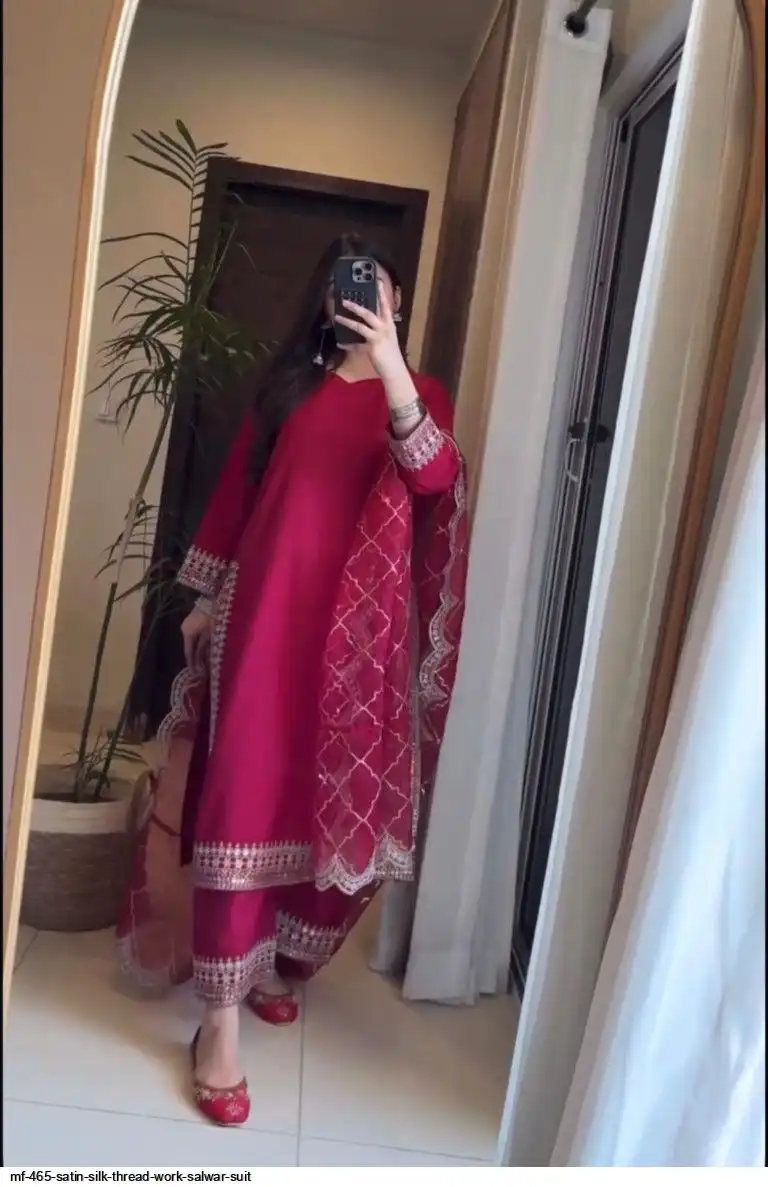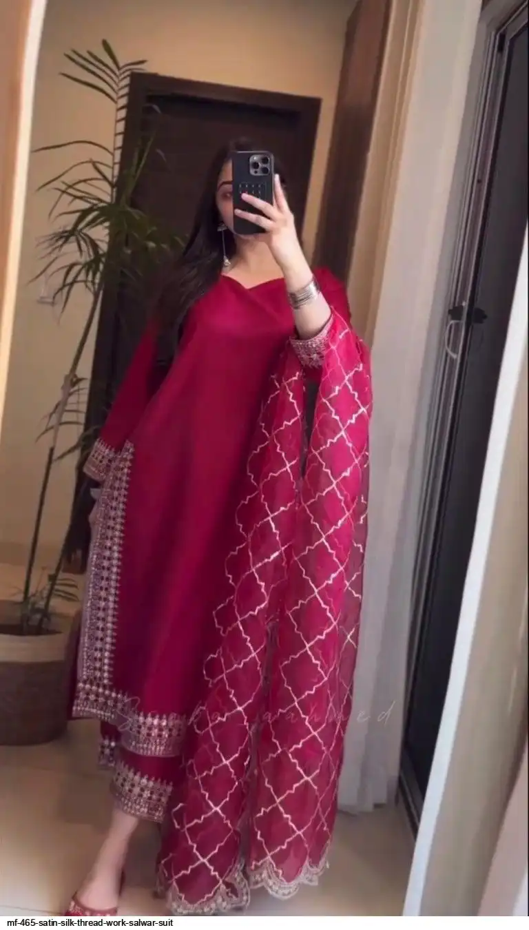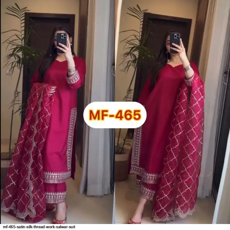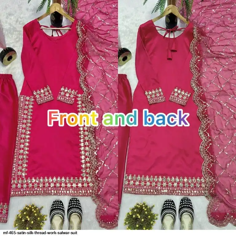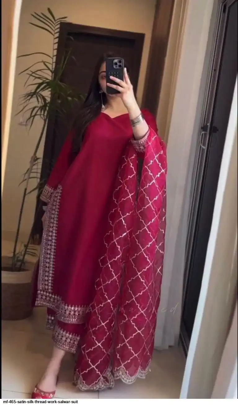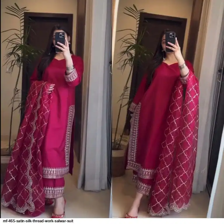 Pant Fabric :- Malay Satin Silk With Heavy Embroidery Thread Work With Ready-Made Less Border.