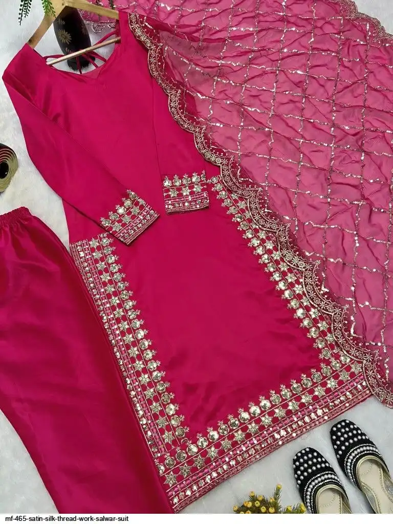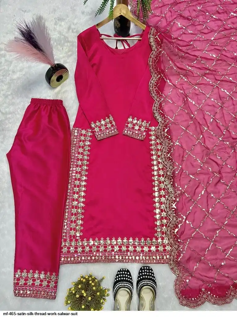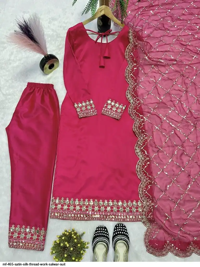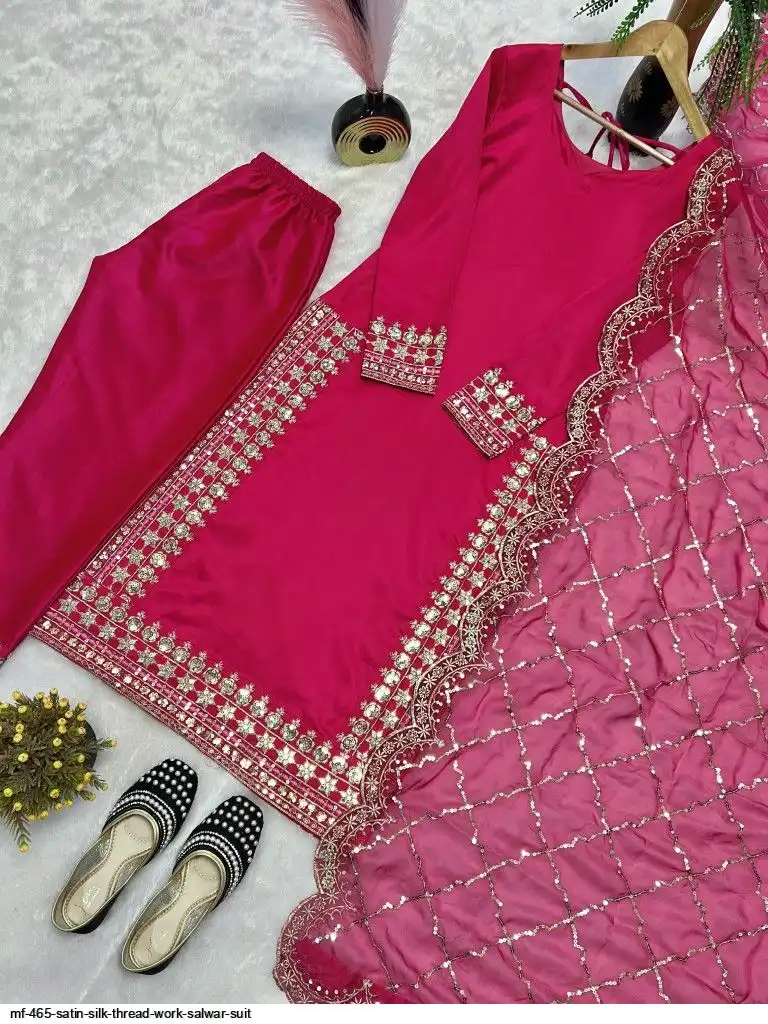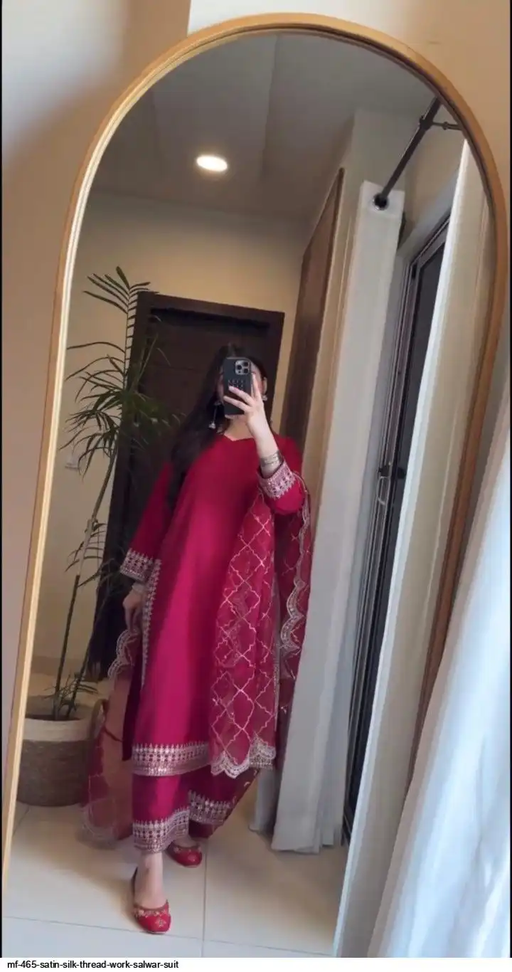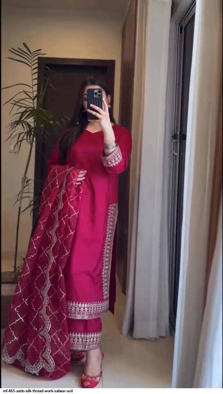 Pant Fabric :- Malay Satin Silk With Heavy Embroidery Thread Work With Ready-Made Less Border.